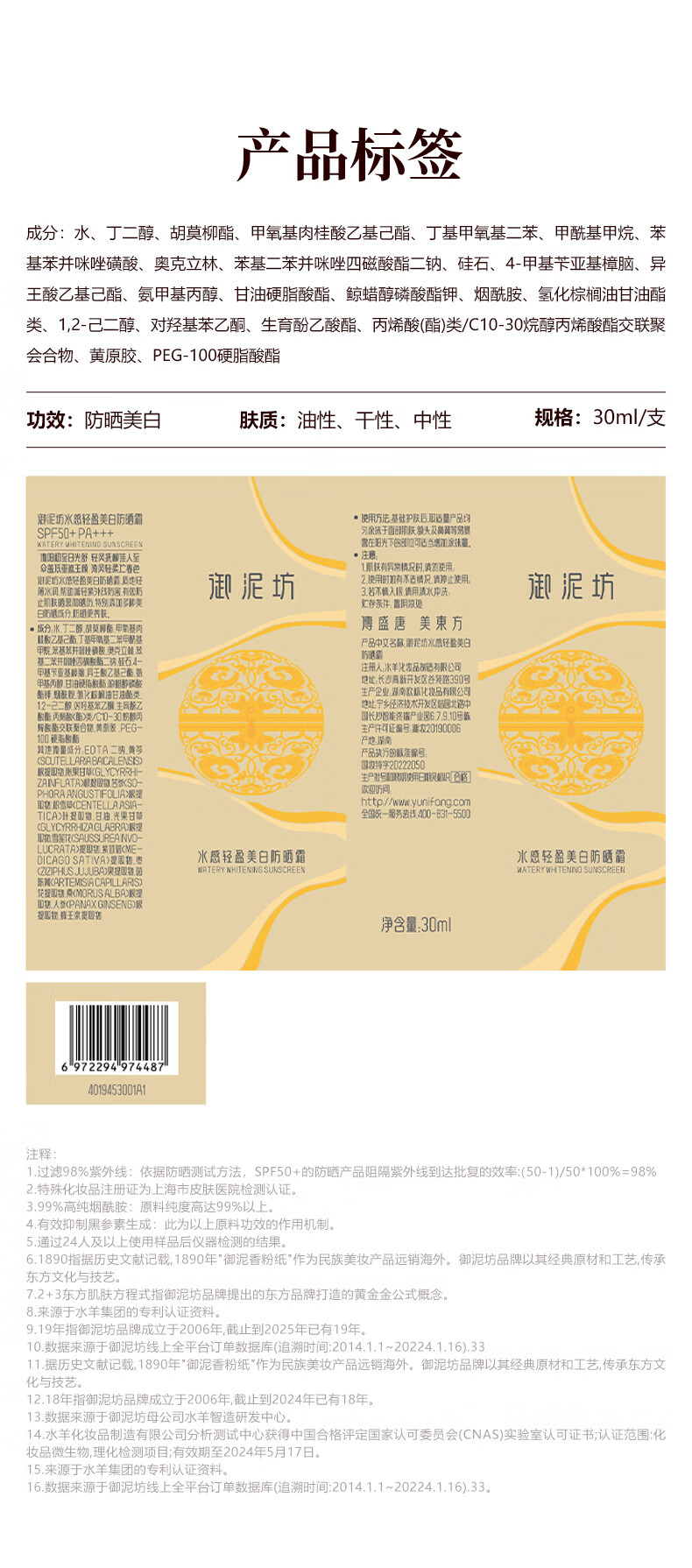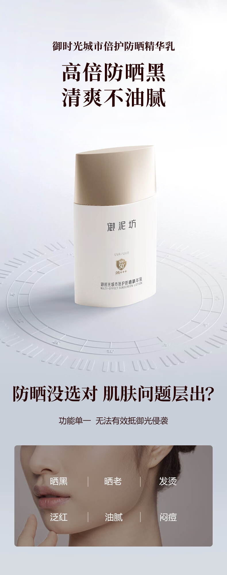 御泥坊 御时光城市倍护防晒精华乳防晒霜隔离霜女小金盾 生日礼物 水感轻盈美白防晒霜30ml