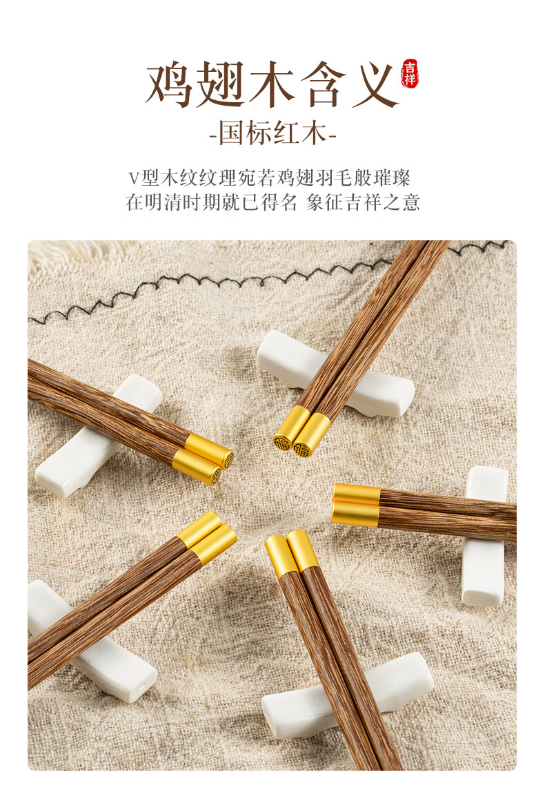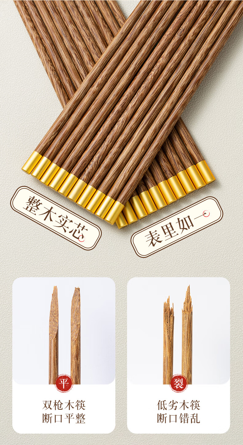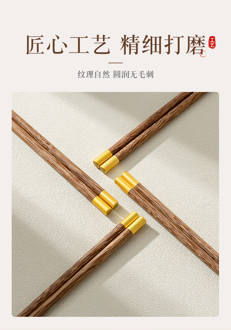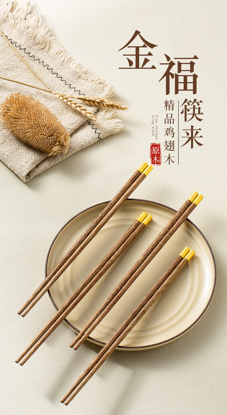 双枪筷子家用实木筷福字精细打磨防滑木质筷 10双花梨木筷