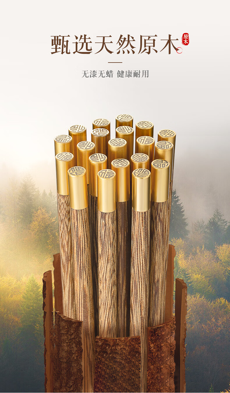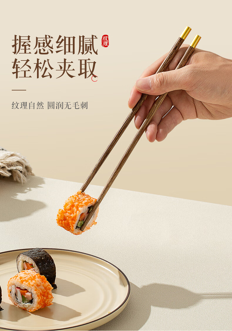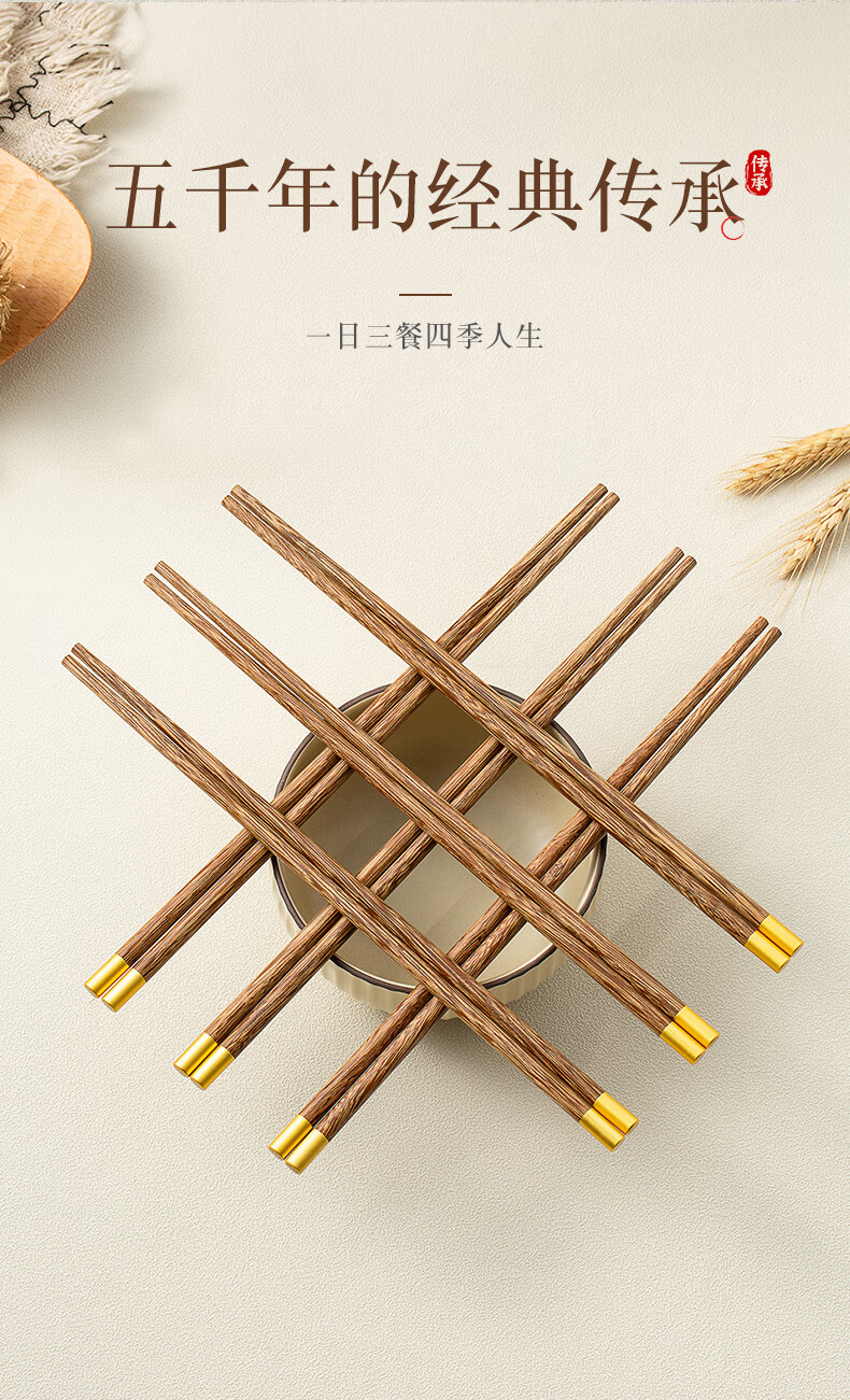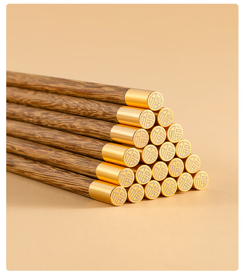 双枪筷子家用实木筷福字精细打磨防滑木质筷 10双花梨木筷