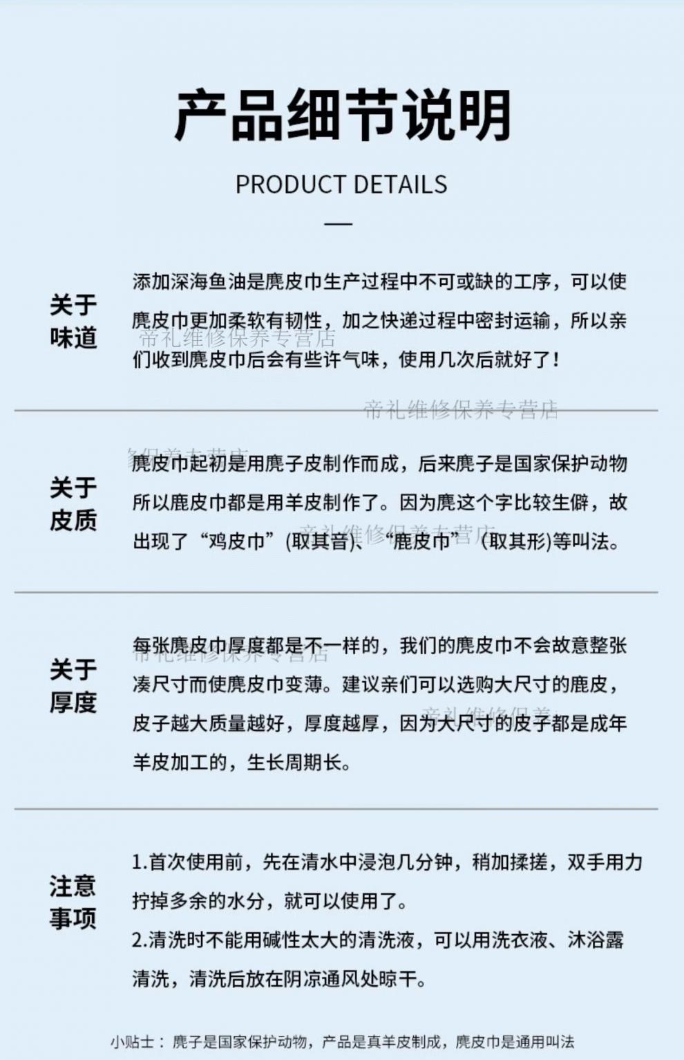 CLCEY鹿皮巾抹布洗车毛巾擦车布专用擦车巾水不掉毛车玻璃鸡皮麂皮1 20*20cm买1送1共2