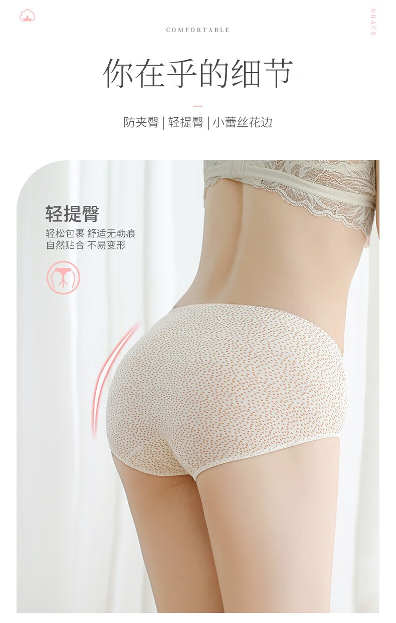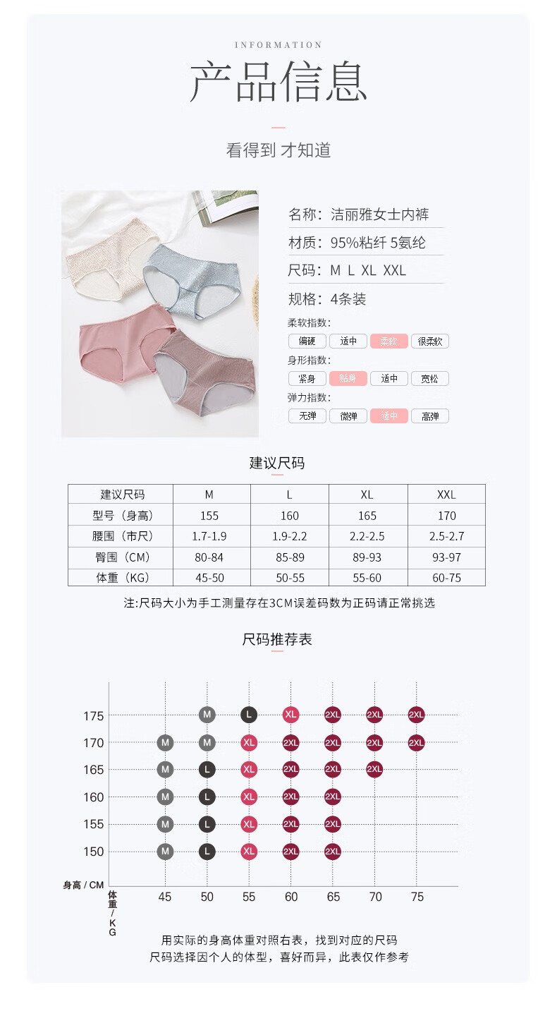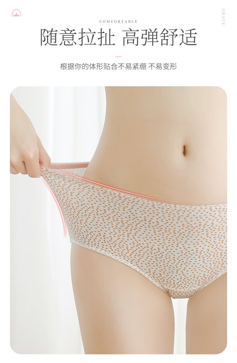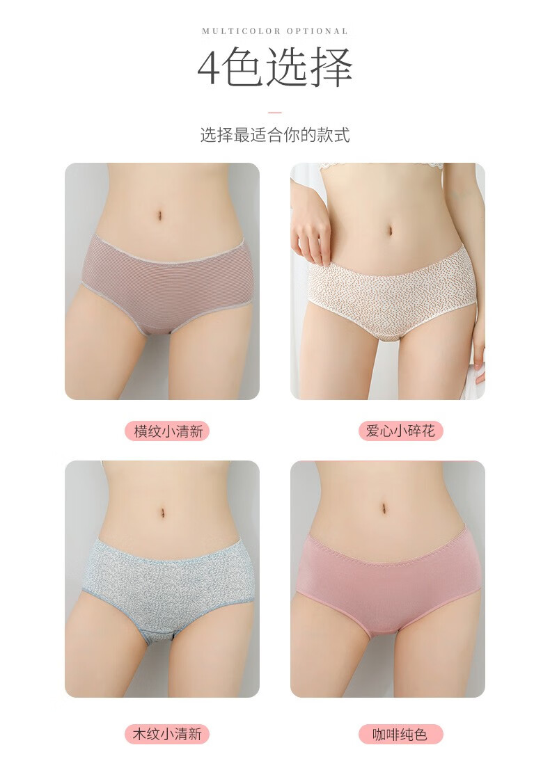 洁丽雅4条礼盒装女士内裤透气舒适亲肤中腰简约高弹纯色三角短裤内裤女 EU89001 M