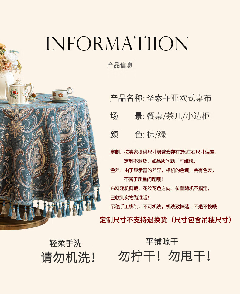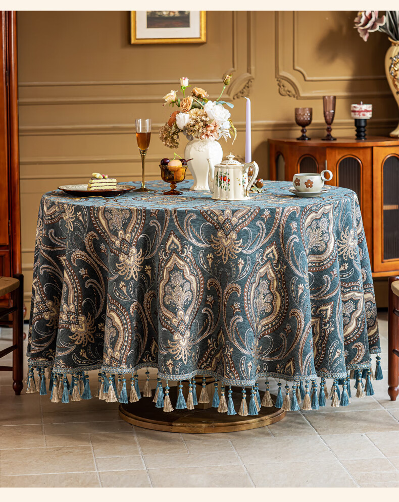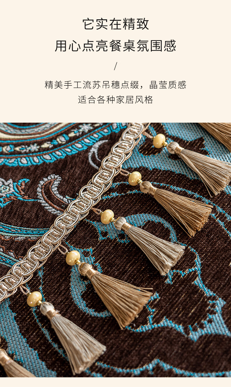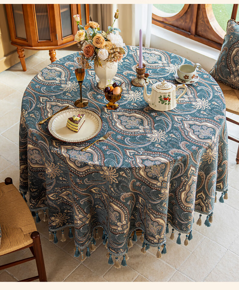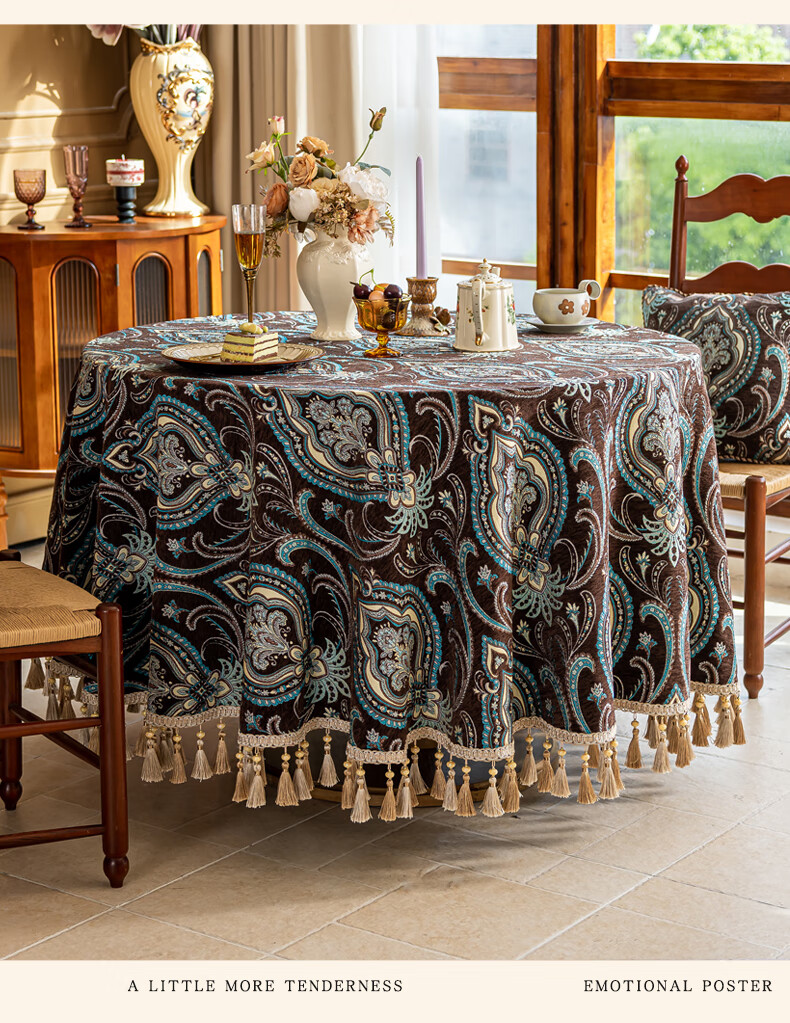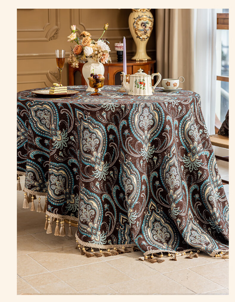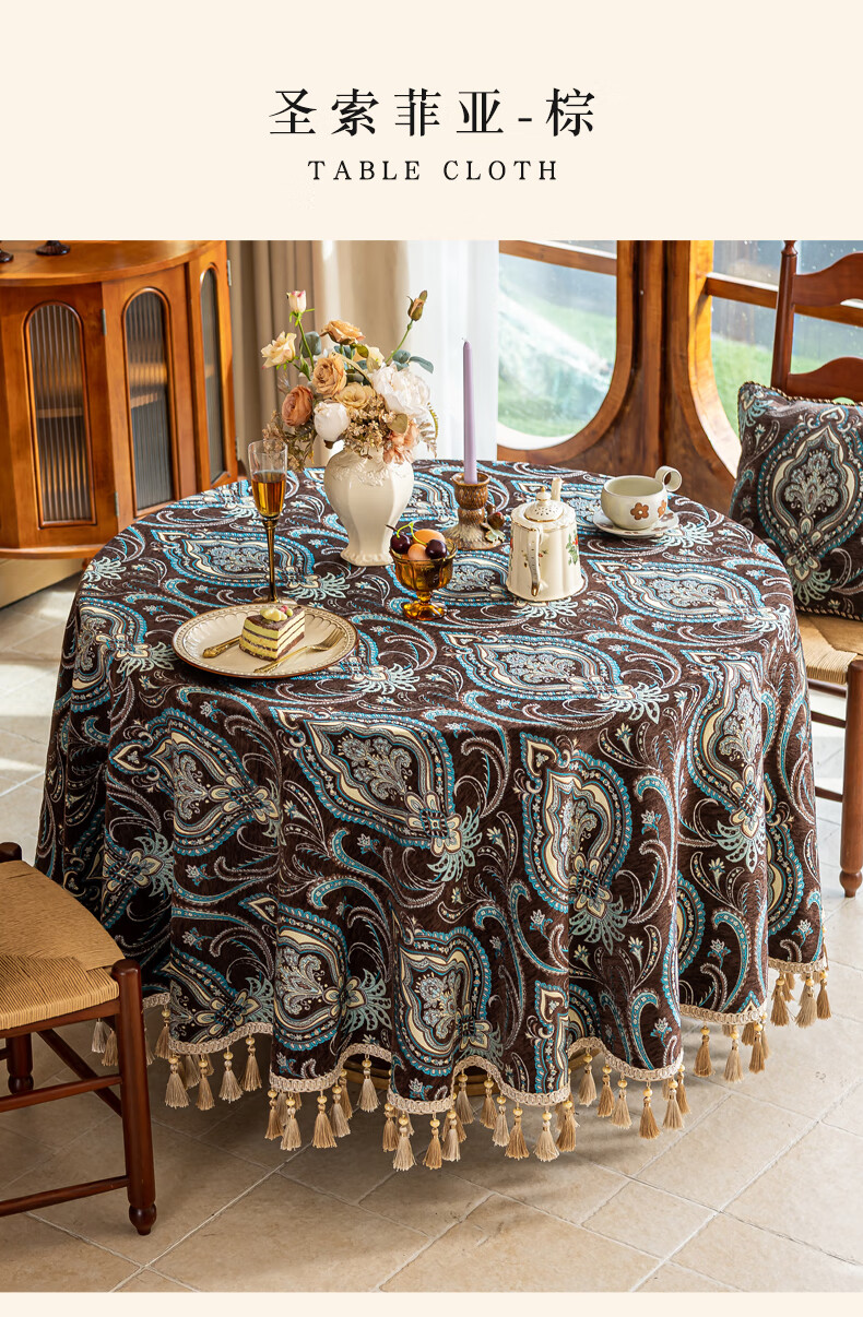 美妠斯欧式圆桌餐桌桌布2025新款轻奢高级感美式绿色客厅圆形茶几布家用 圣索菲亚-棕(吊穗款) 280cm直径适合直径200-220cm圆桌