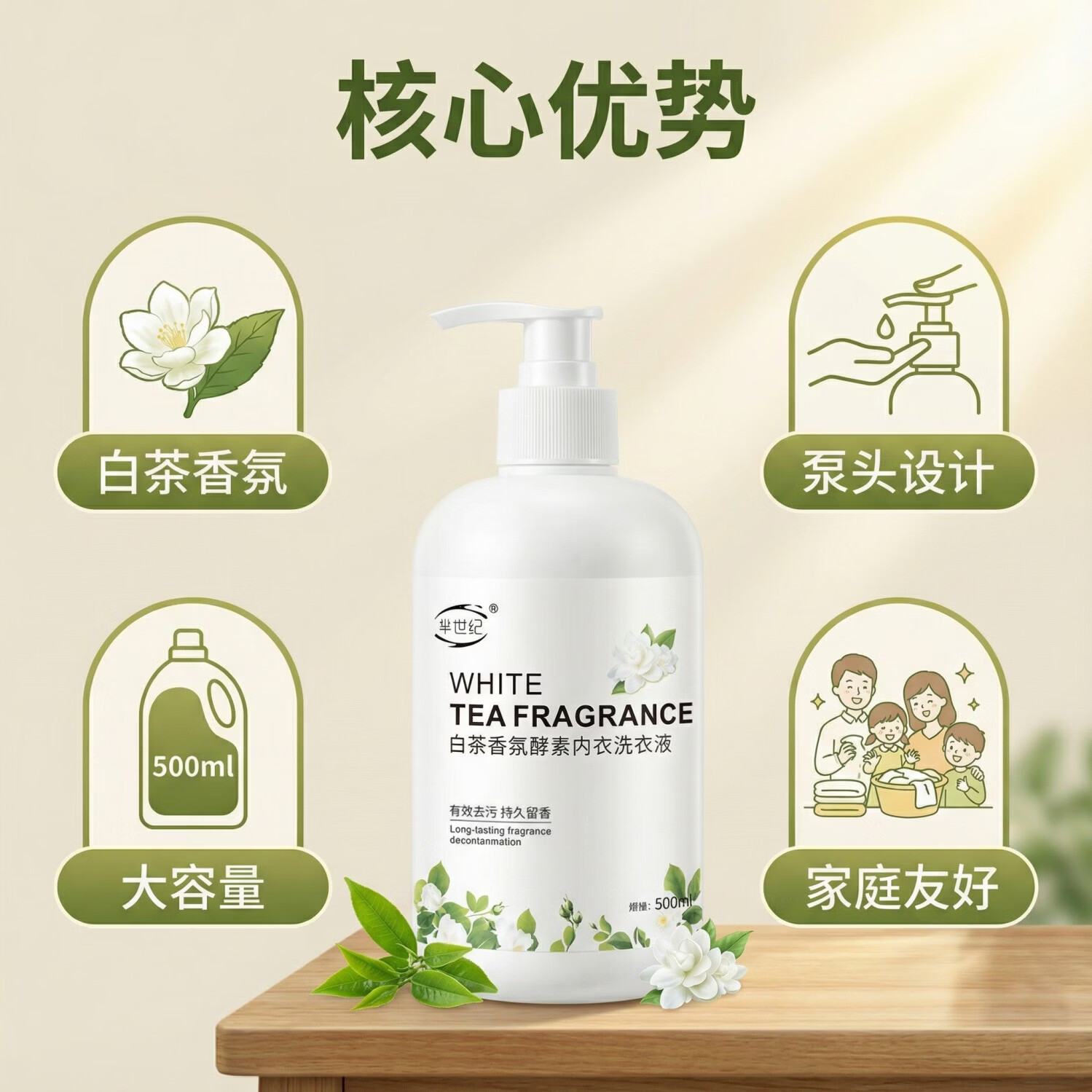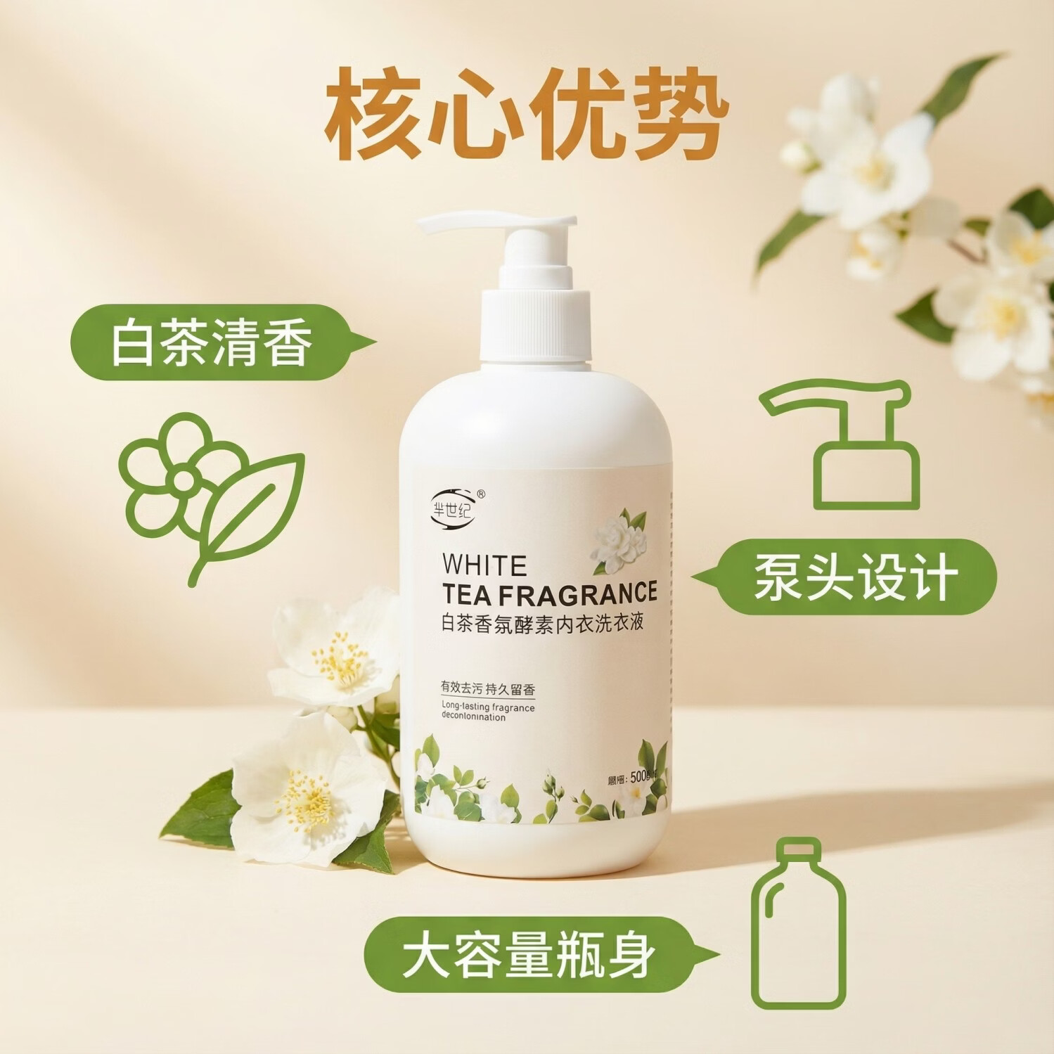 芈世纪【白茶香氛】酵素内衣洗衣液泵头便捷女士内衣专用去污留香清洗液 芈世纪 白茶香氛酵素内衣洗衣液5瓶*500ML