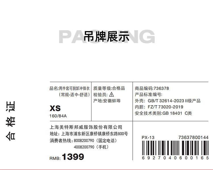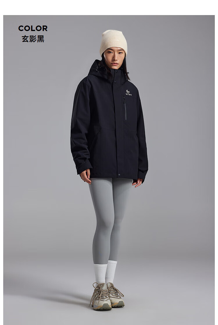 美特斯邦威男士夹克二合一防风外套秋冬潮流可拆分两穿衣百搭休闲上衣 玄影黑 L 175