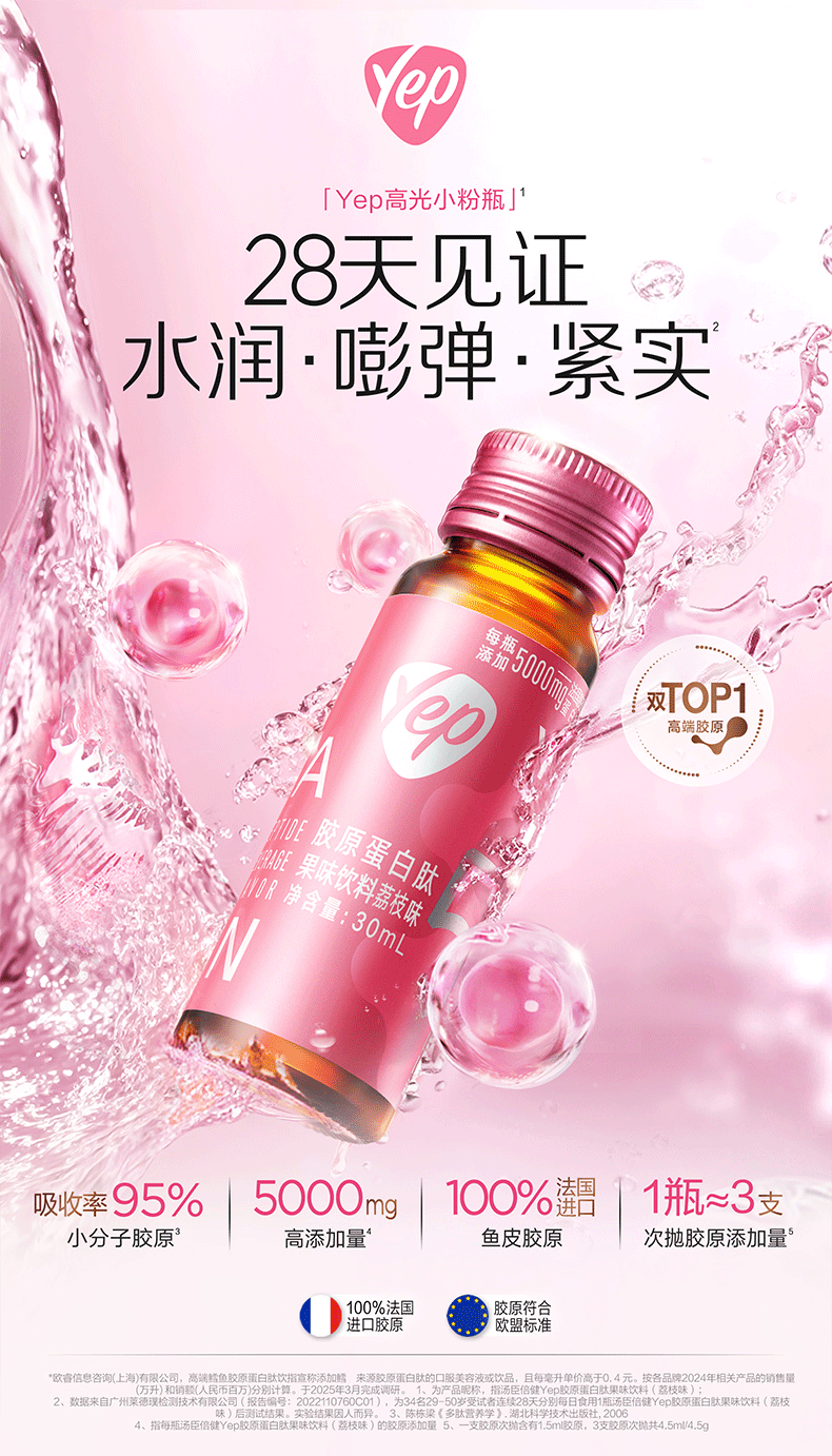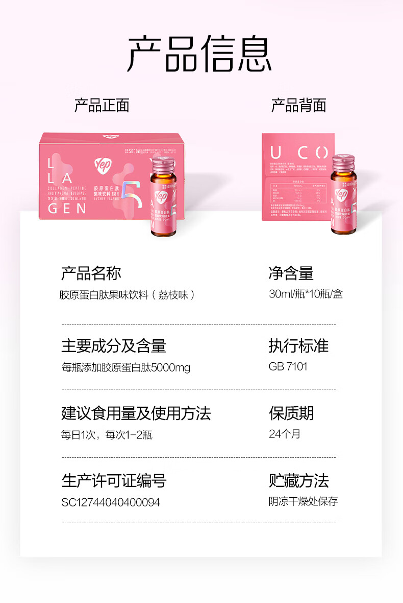汤臣倍健胶原蛋白肽口服液蛋白肽小分子肽液态饮yep小粉瓶胶原饮送女友 胶原蛋白肽 5g*1盒 共10瓶10天量