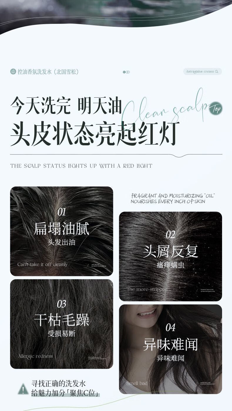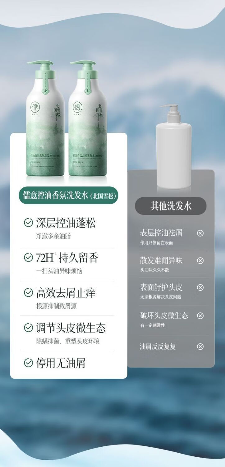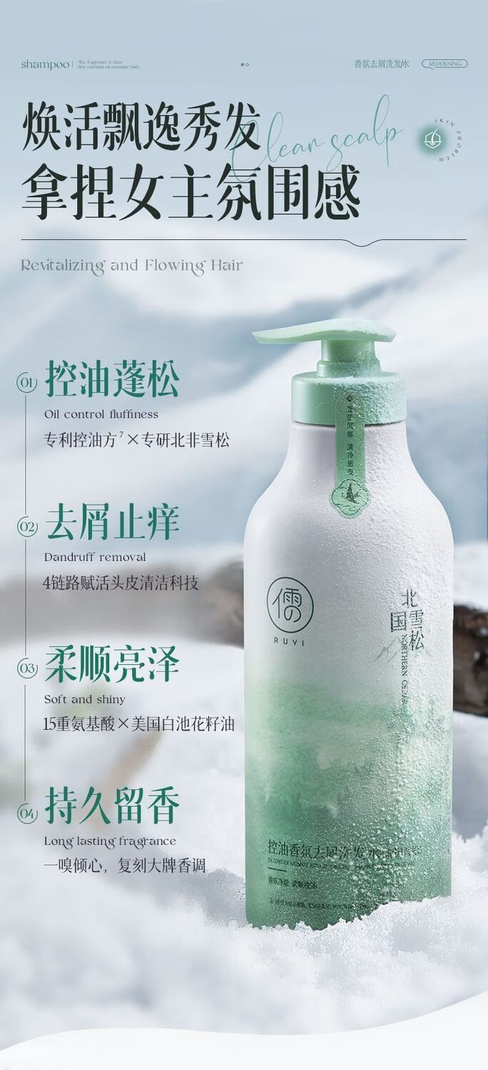 儒意氨基酸控油蓬松洗发水去屑止痒深层清洁柔顺留香新年礼物 【水杨酸控油蓬松】北国雪松洗发水800ml