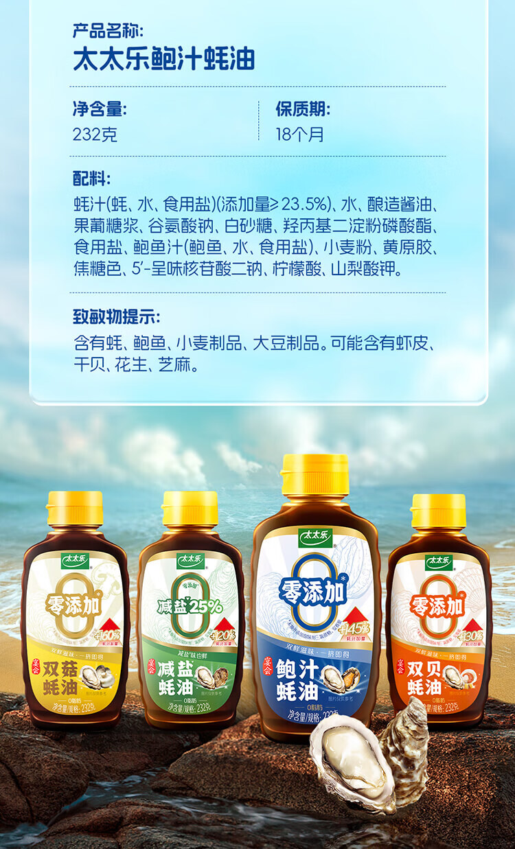 太太乐鲍汁蚝油 烧烤火锅炒菜蘸料调味料 鲍汁蚝油232g*1瓶+鸡精40g*2