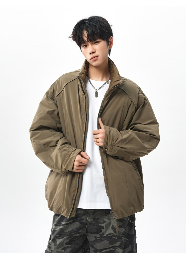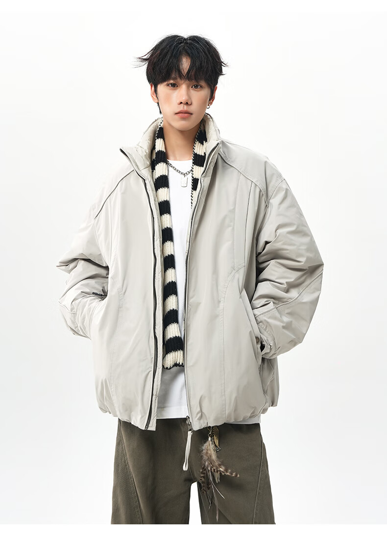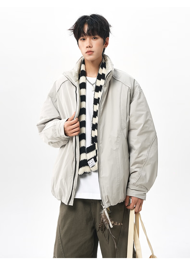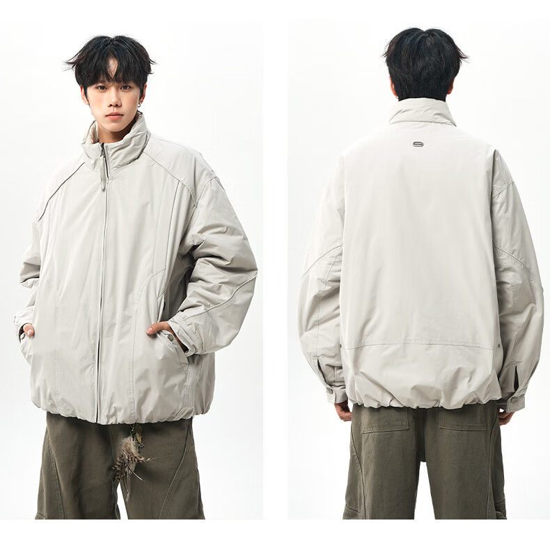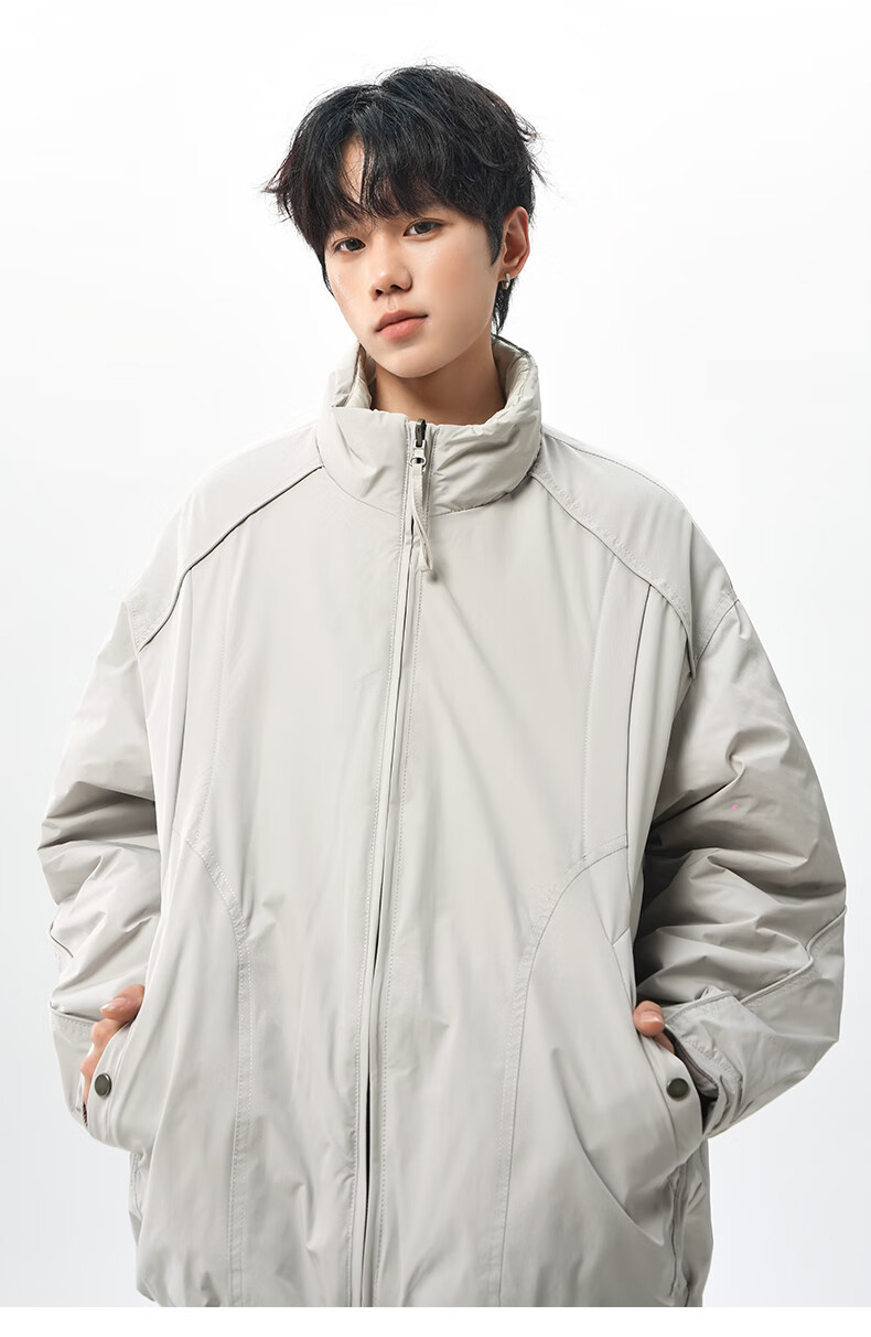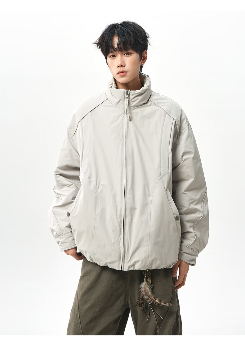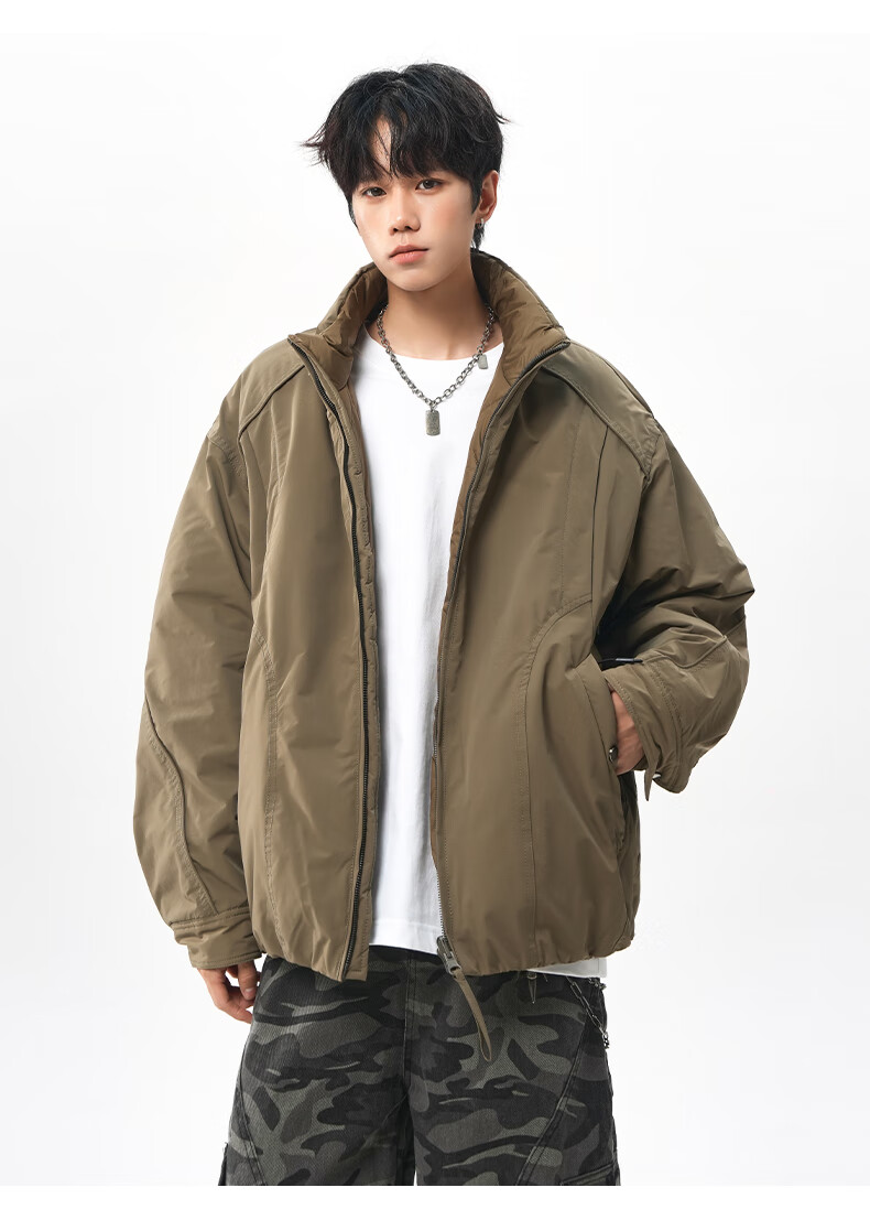 NEW OR MODE美式拼接双面穿立领棉服男女冬季新款保暖宽松休闲情侣夹克外套男 灰色 M 【建议90-110斤】