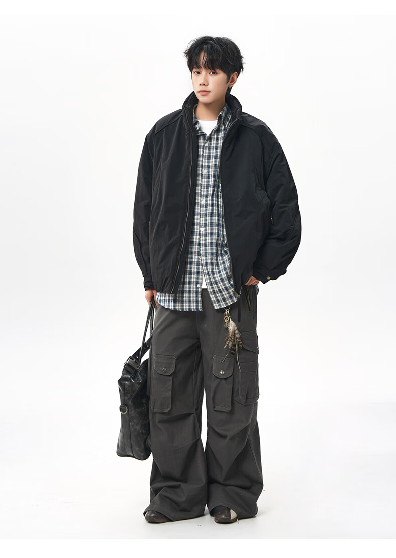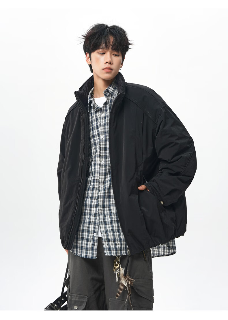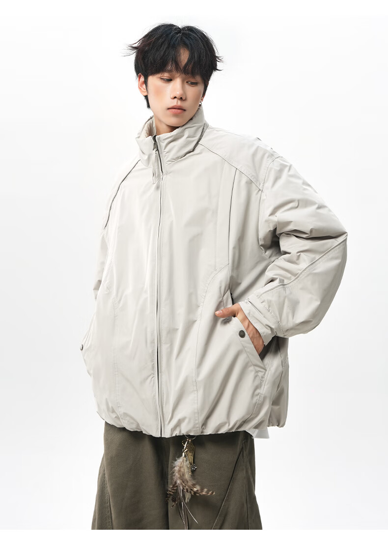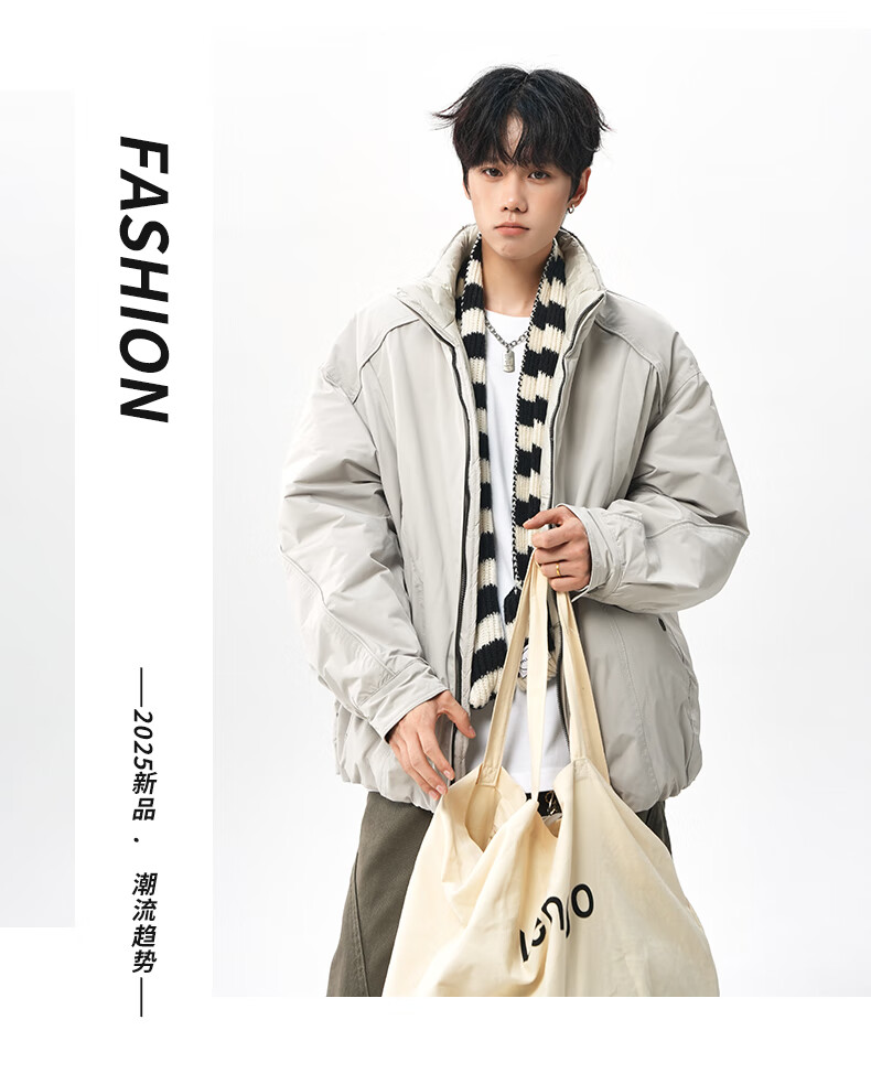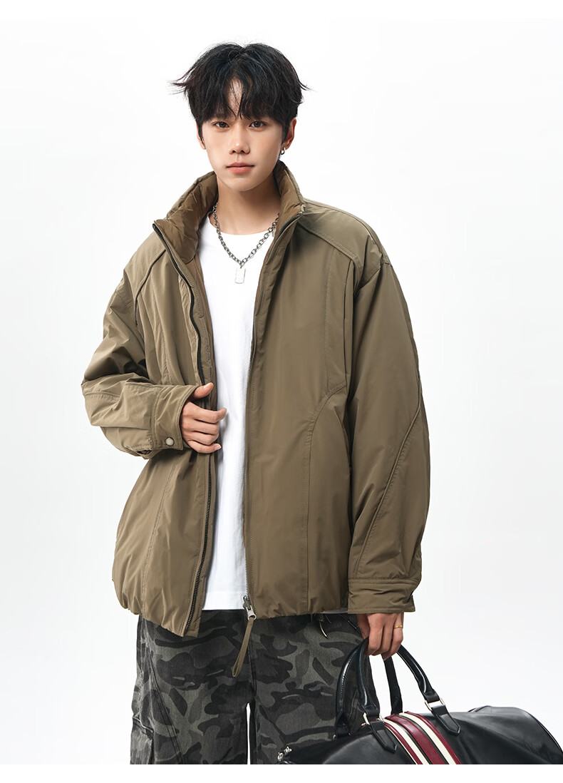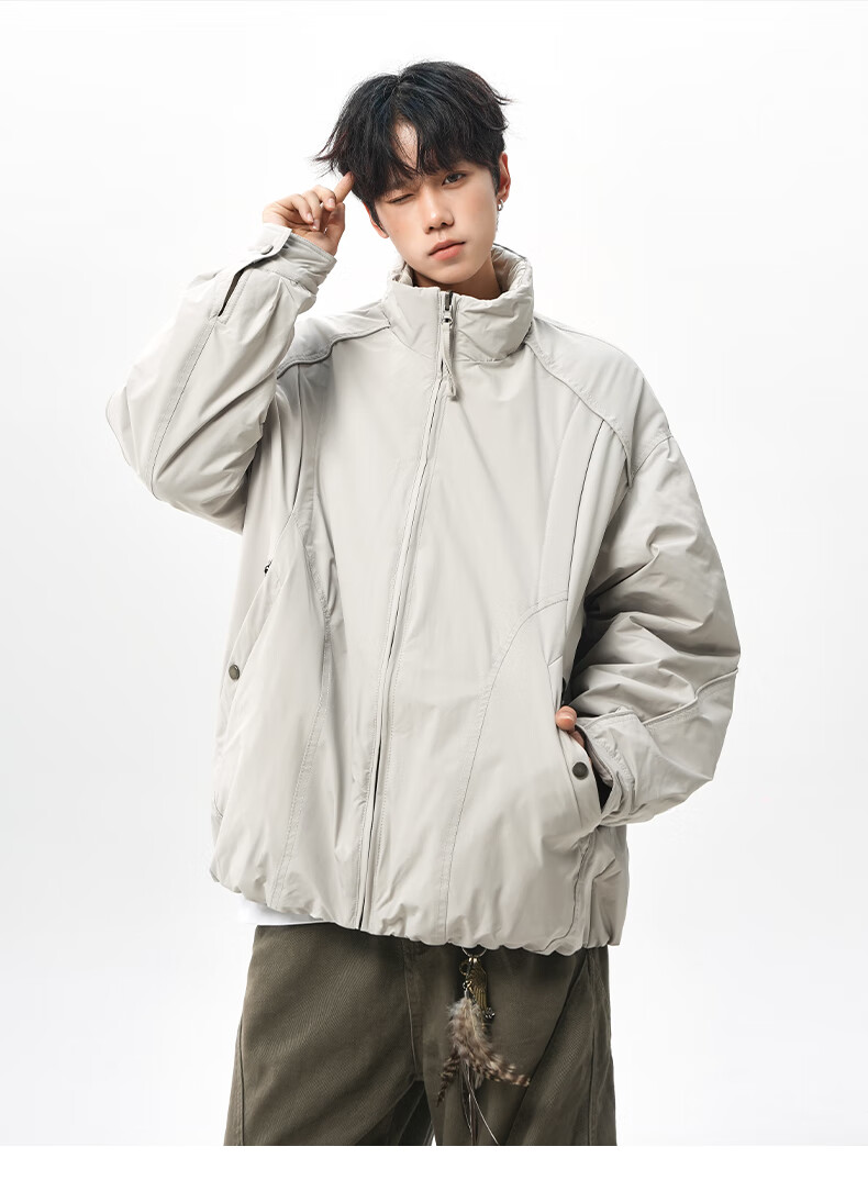 NEW OR MODE美式拼接双面穿立领棉服男女冬季新款保暖宽松休闲情侣夹克外套男 灰色 M 【建议90-110斤】