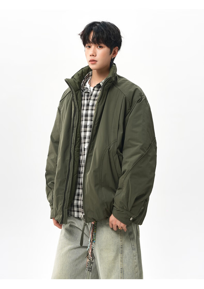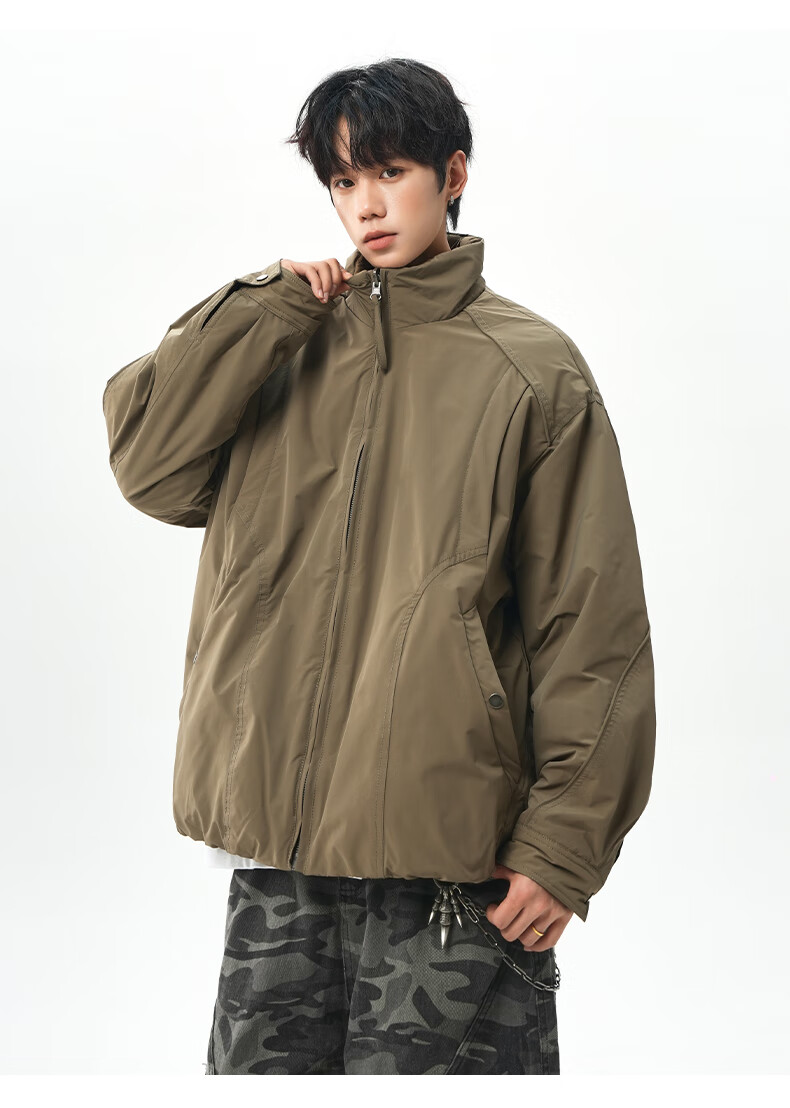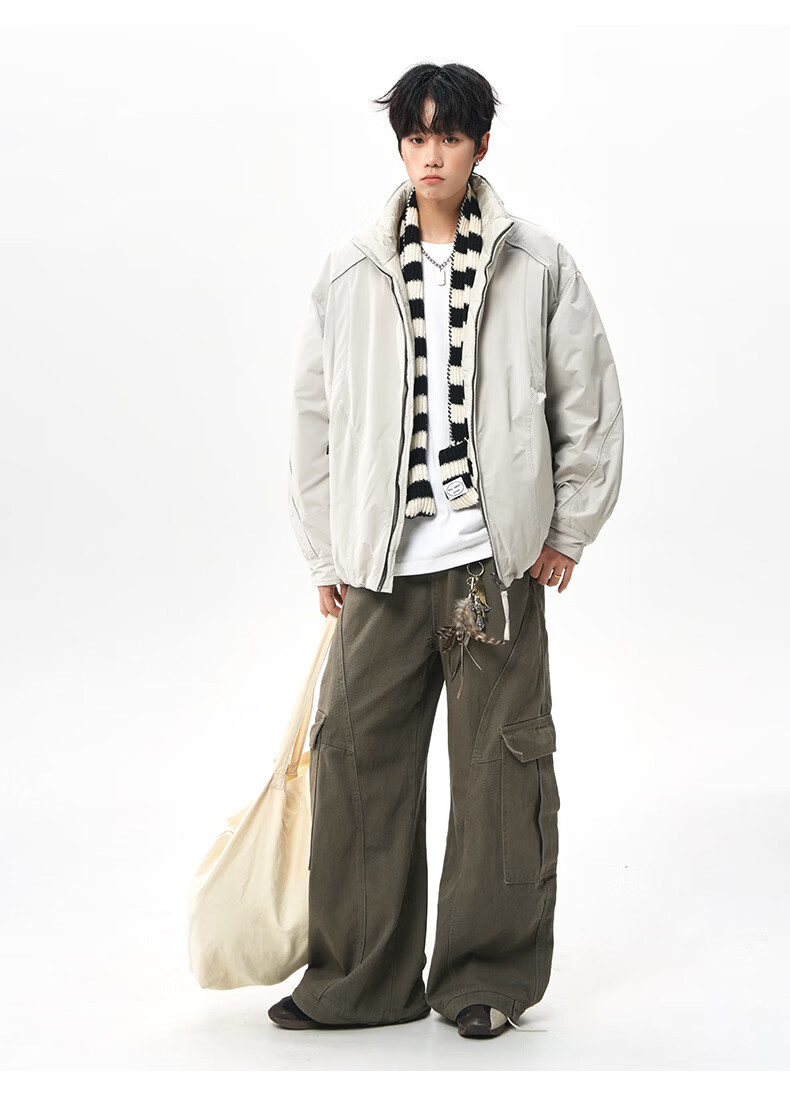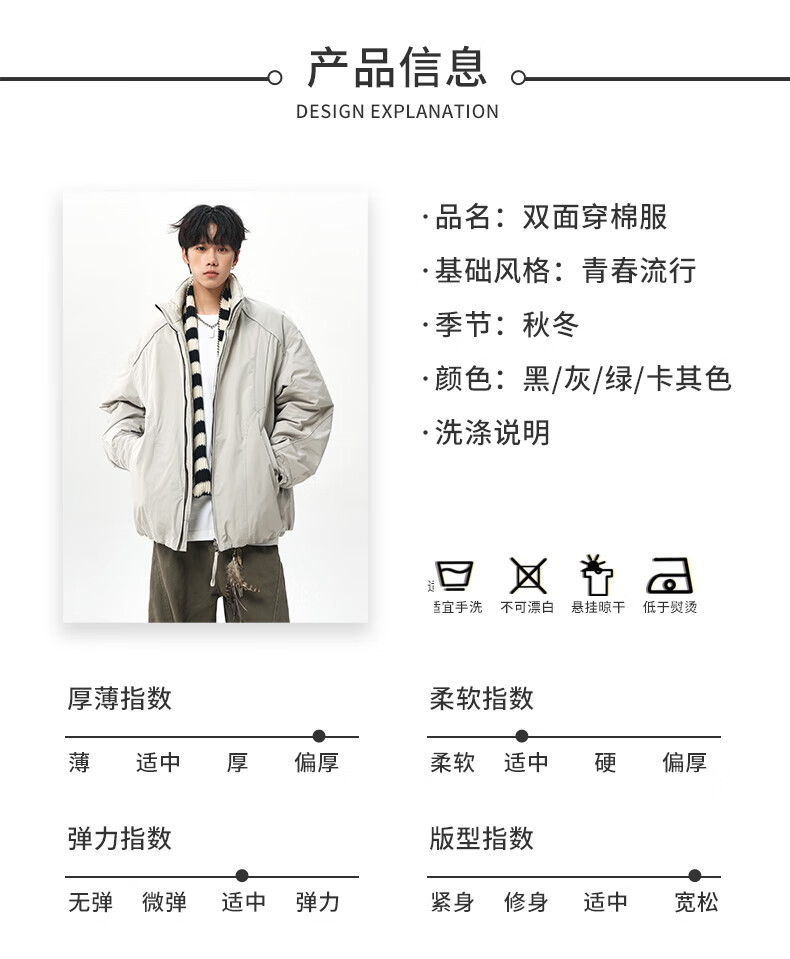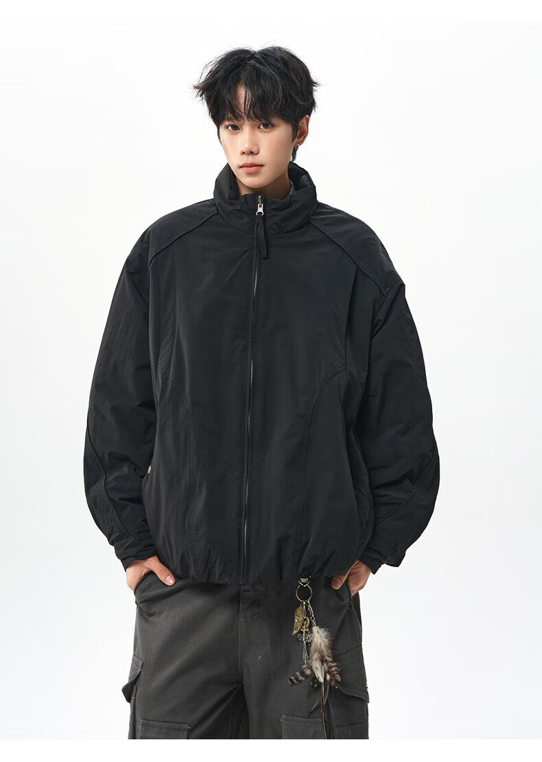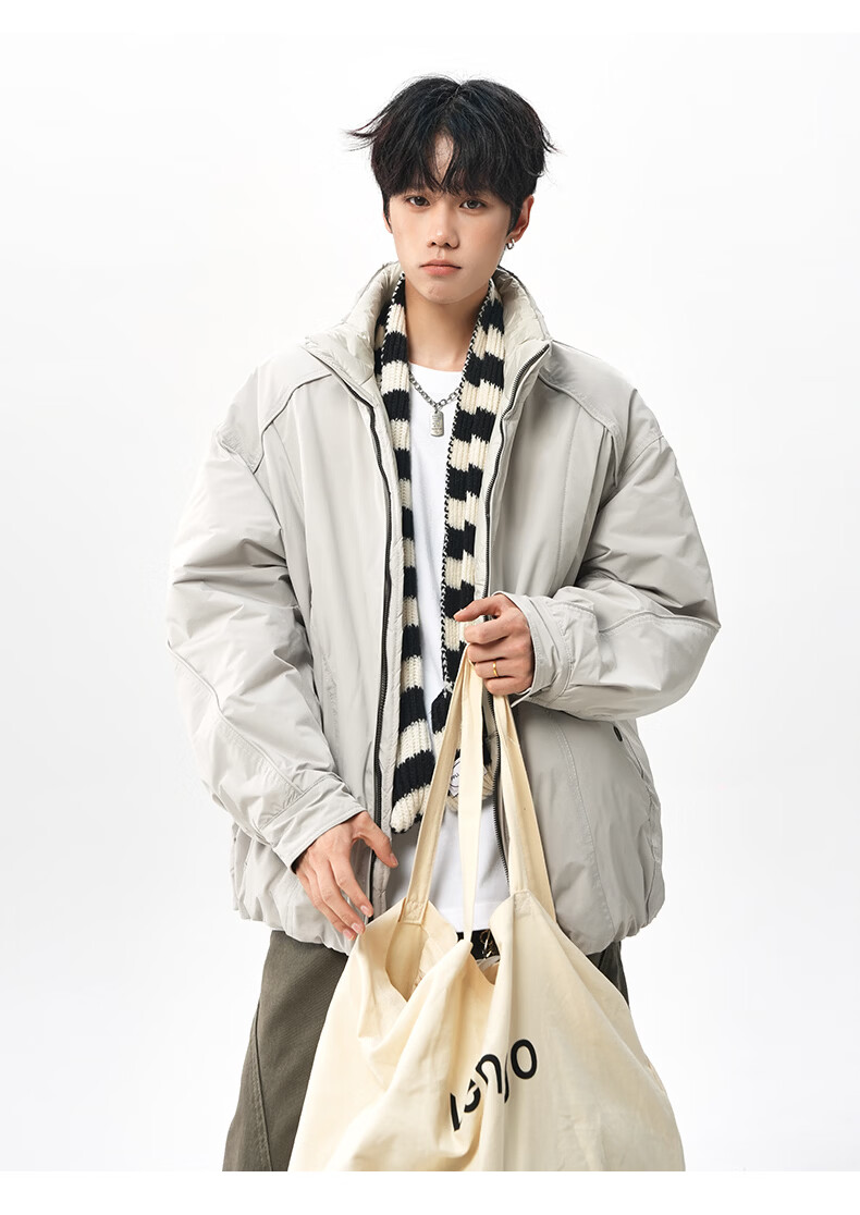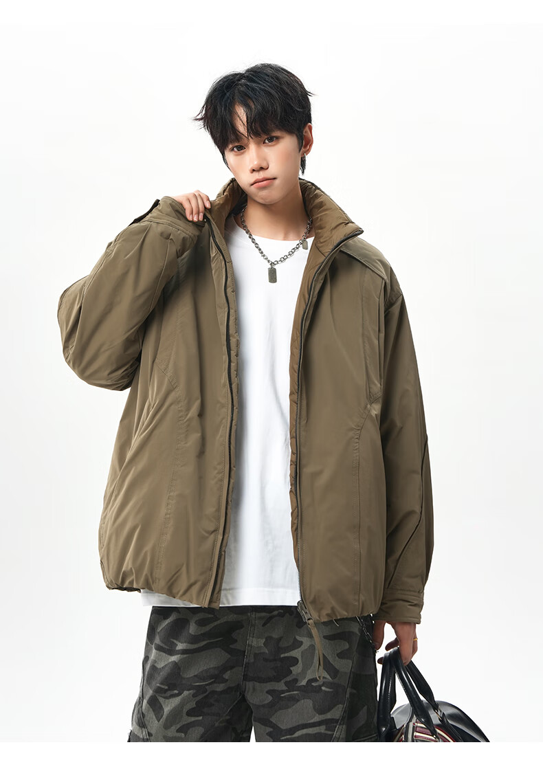 NEW OR MODE美式拼接双面穿立领棉服男女冬季新款保暖宽松休闲情侣夹克外套男 灰色 M 【建议90-110斤】