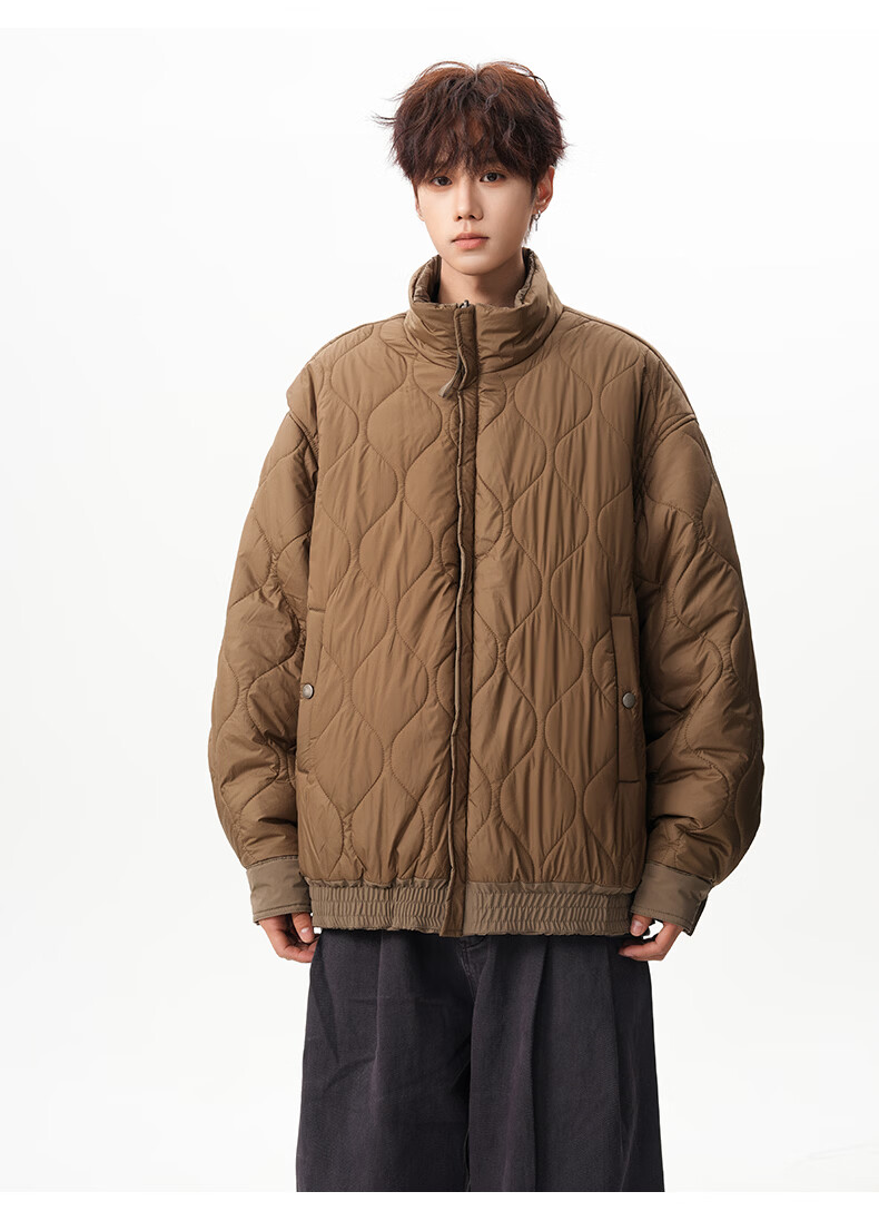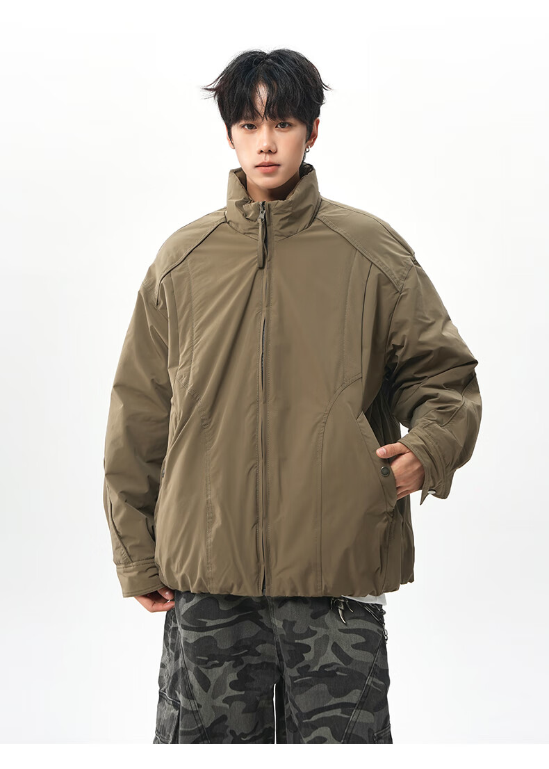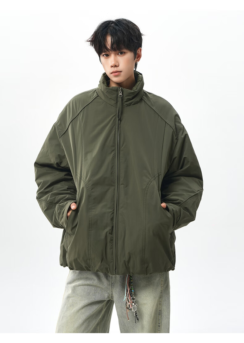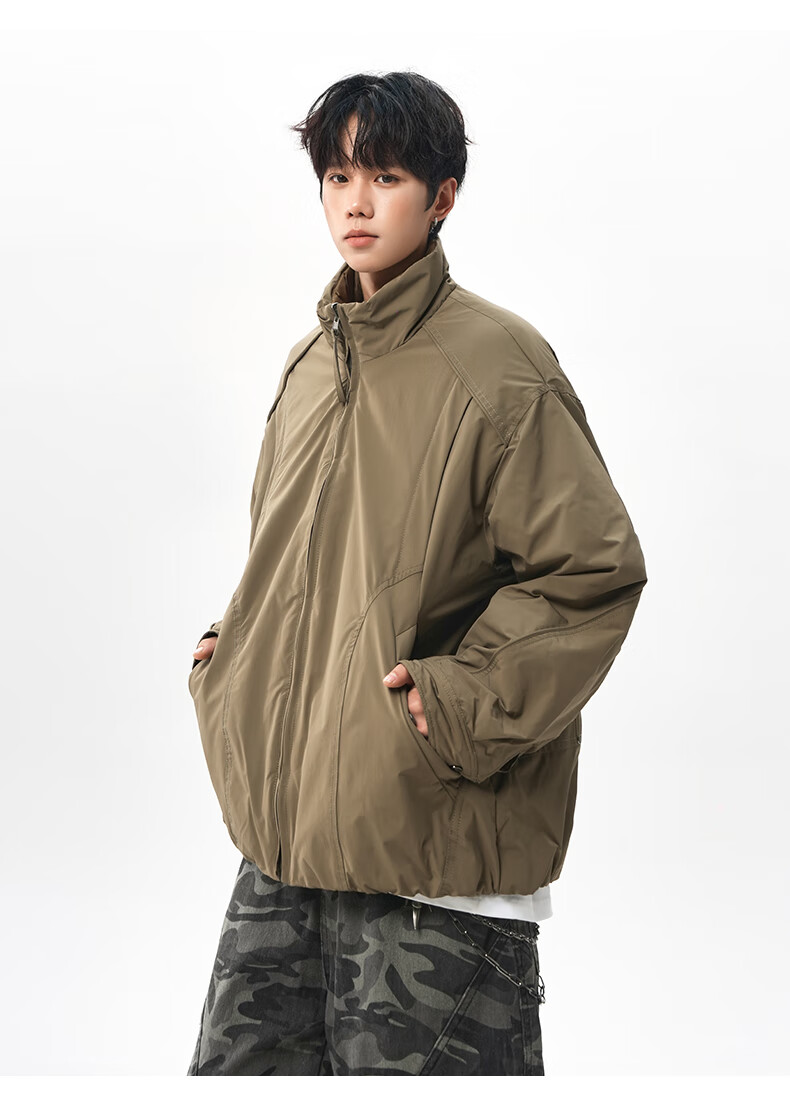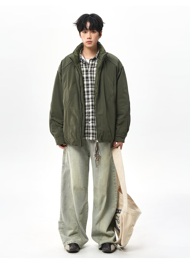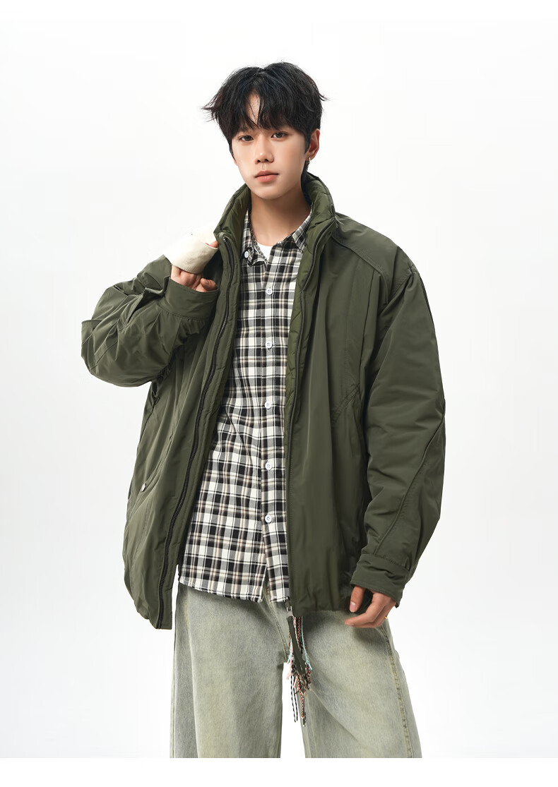 NEW OR MODE美式拼接双面穿立领棉服男女冬季新款保暖宽松休闲情侣夹克外套男 灰色 M 【建议90-110斤】