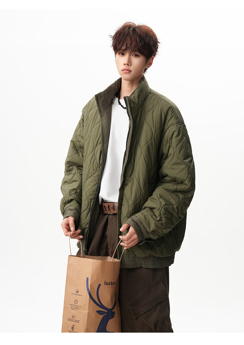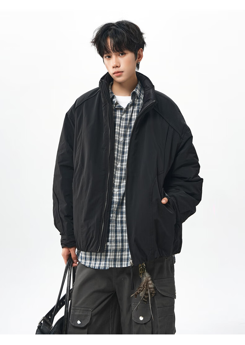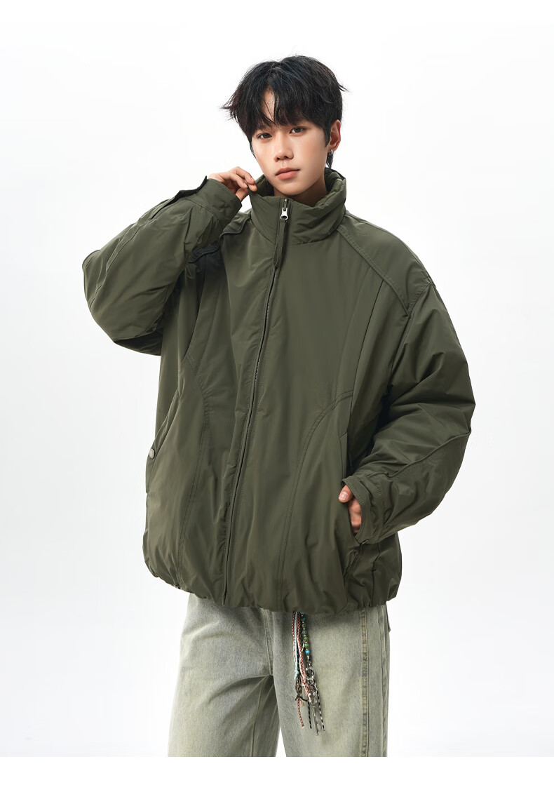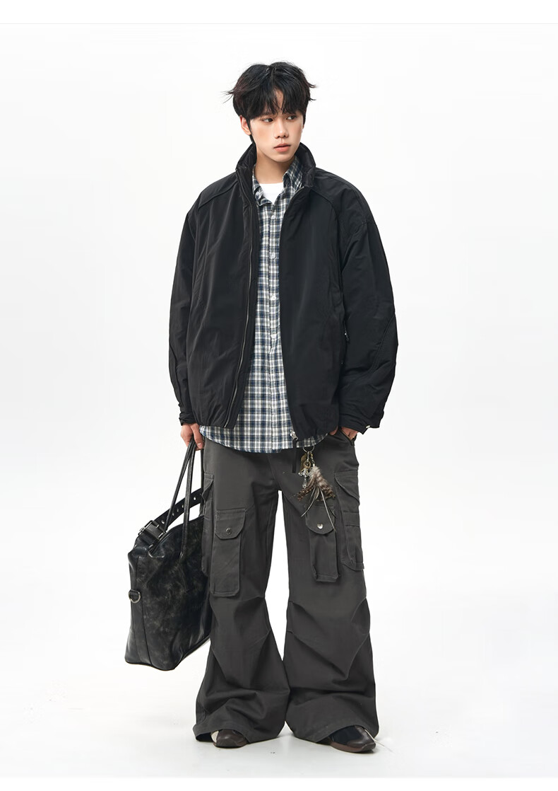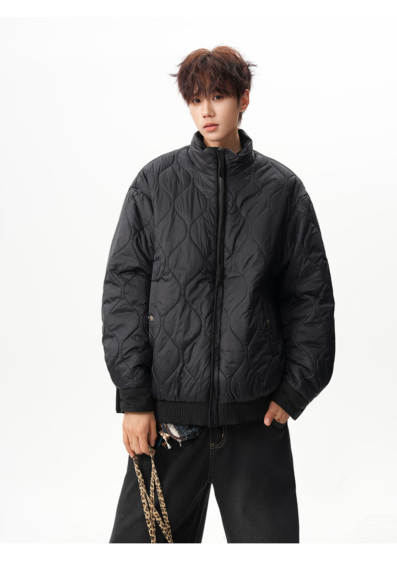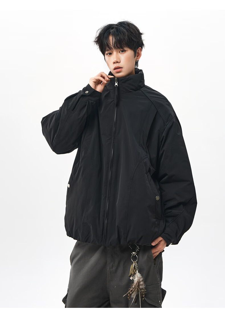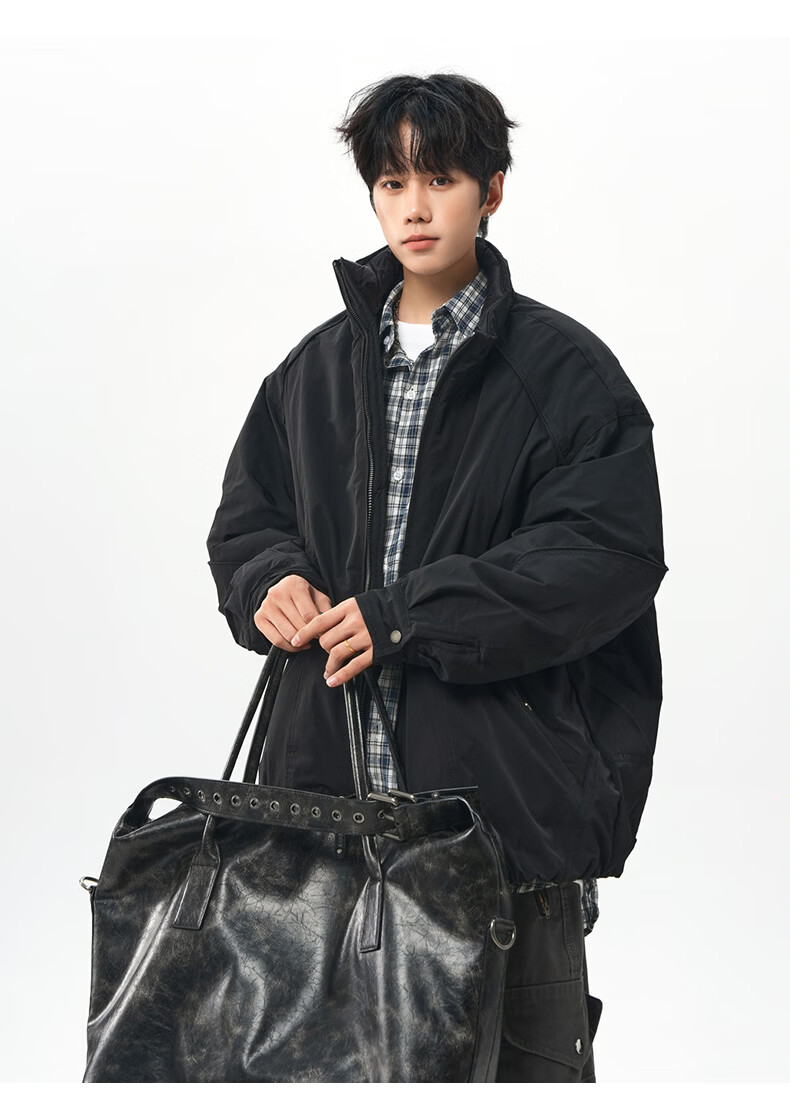 NEW OR MODE美式拼接双面穿立领棉服男女冬季新款保暖宽松休闲情侣夹克外套男 灰色 M 【建议90-110斤】
