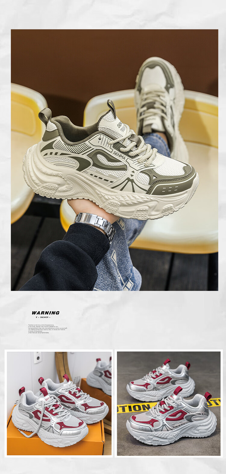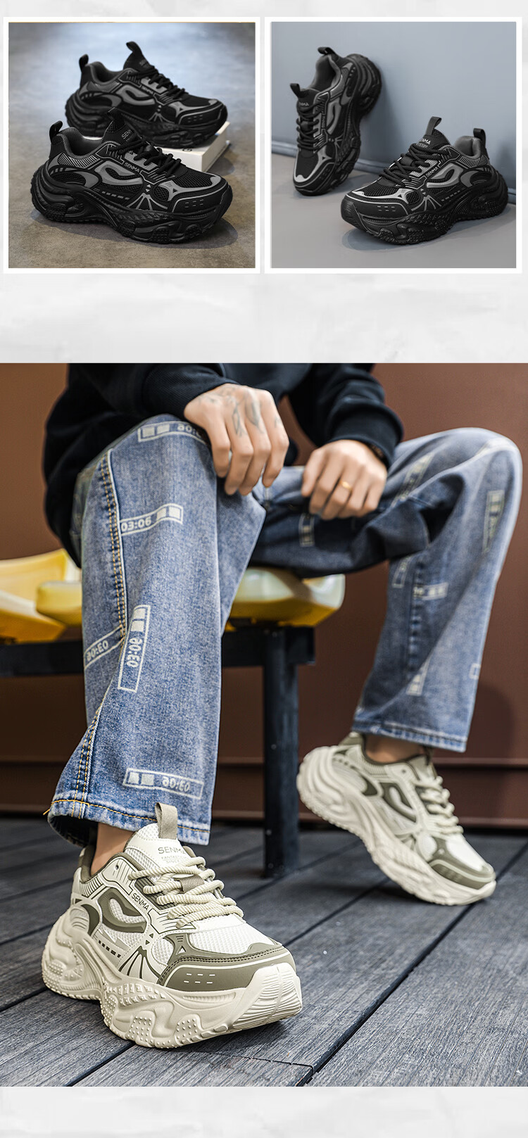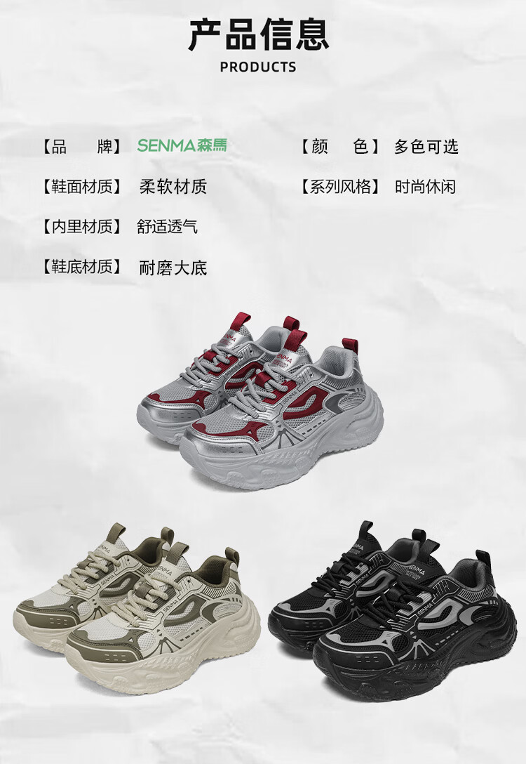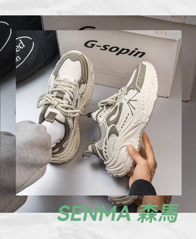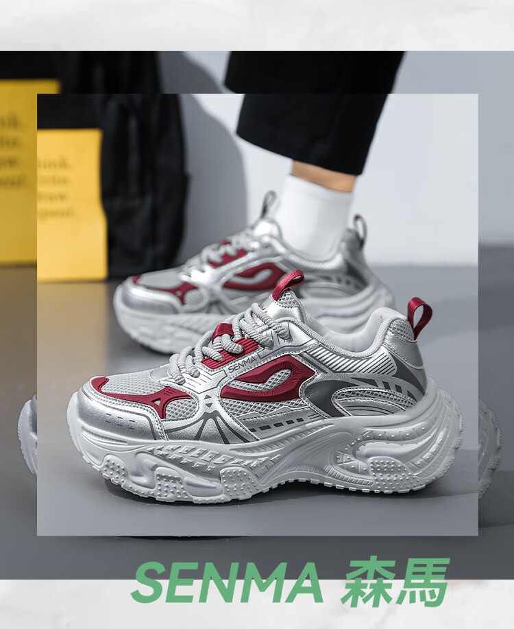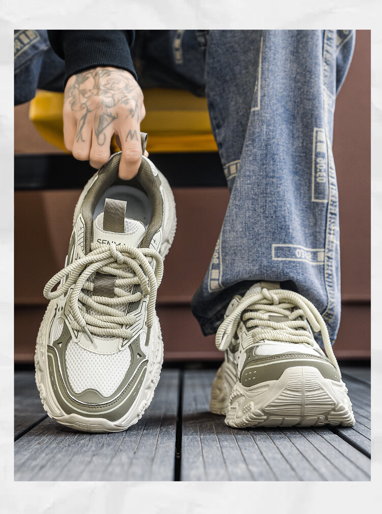 森馬男鞋2026新款春季高级感百搭休闲运动鞋男士厚底增高防滑老爹潮鞋 黑色【基础款】 39 标准码数/现货秒发