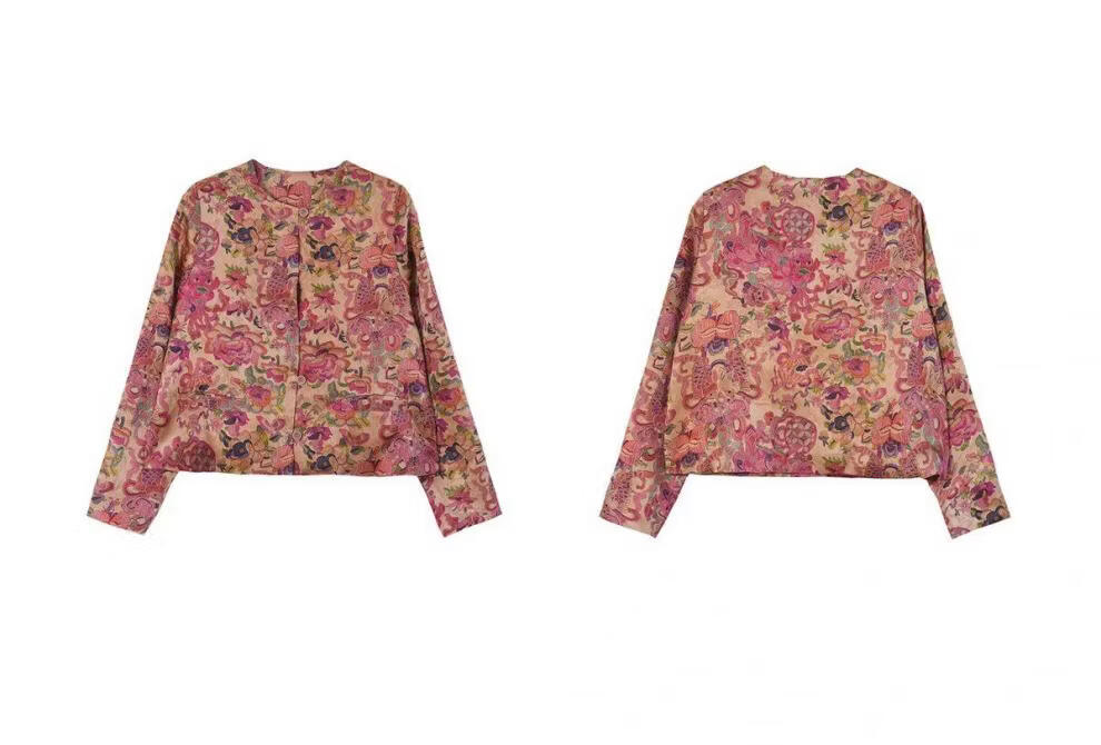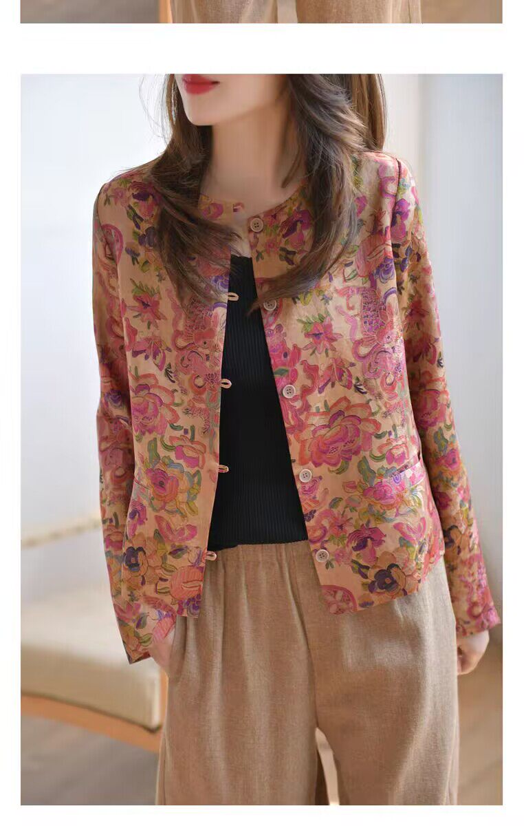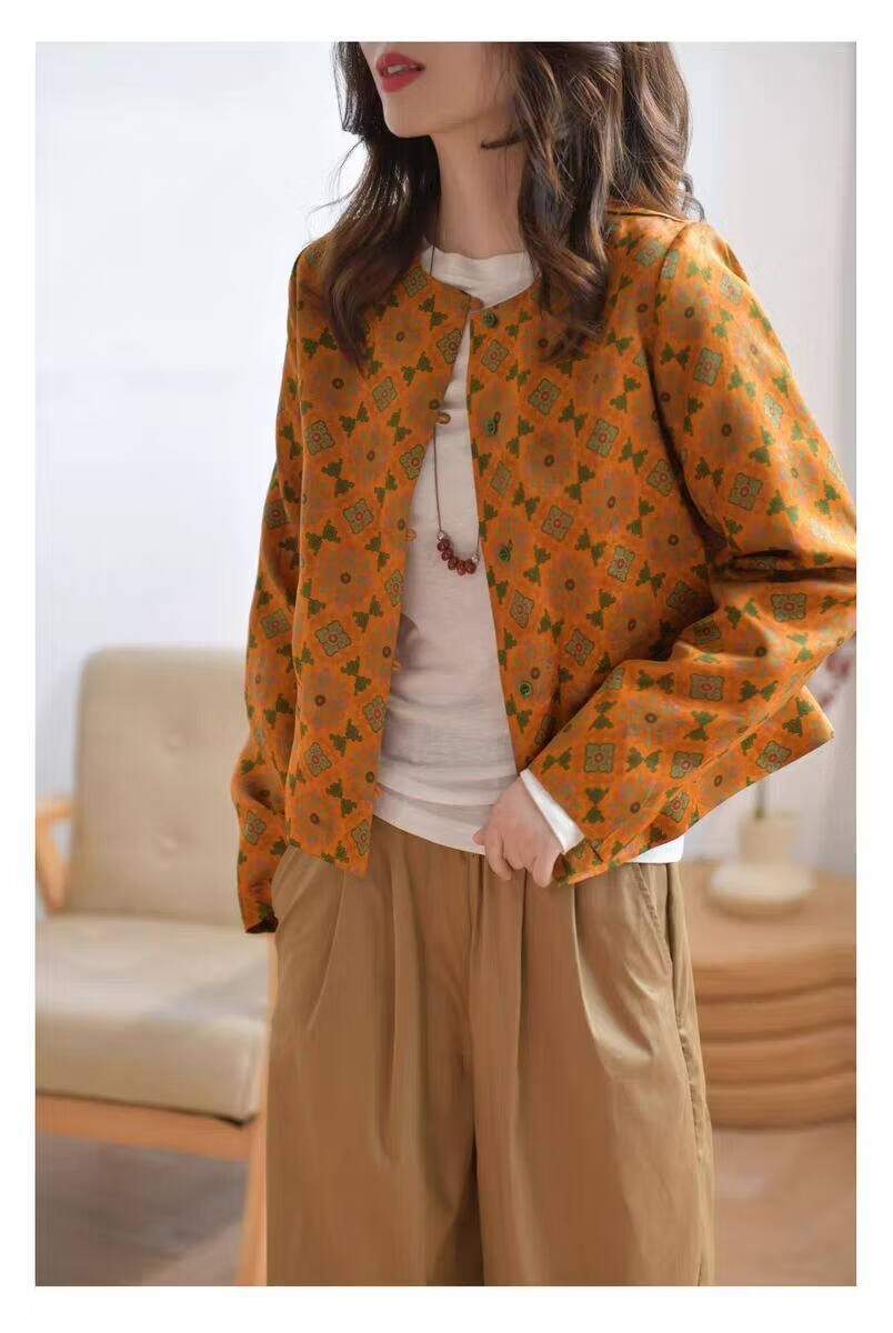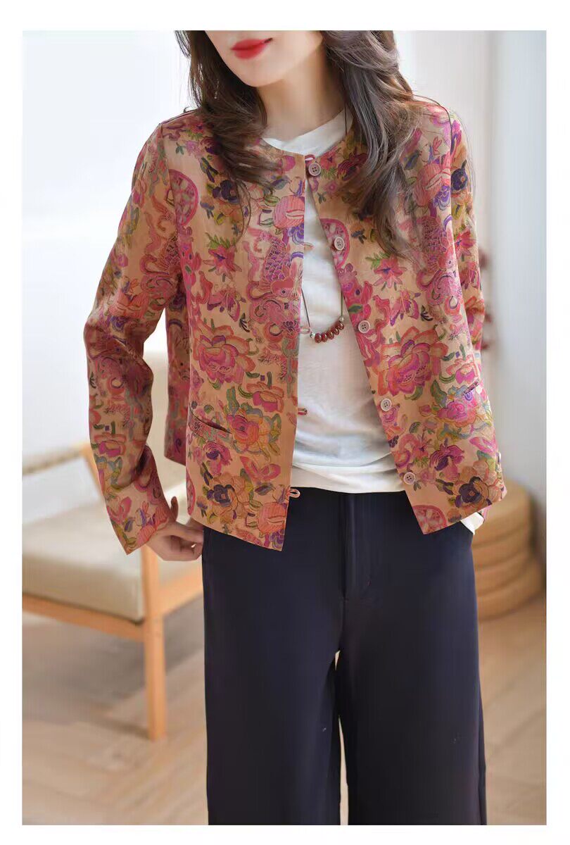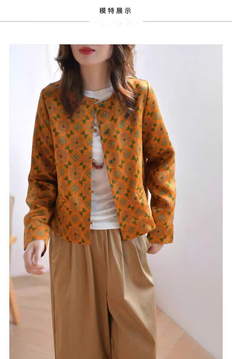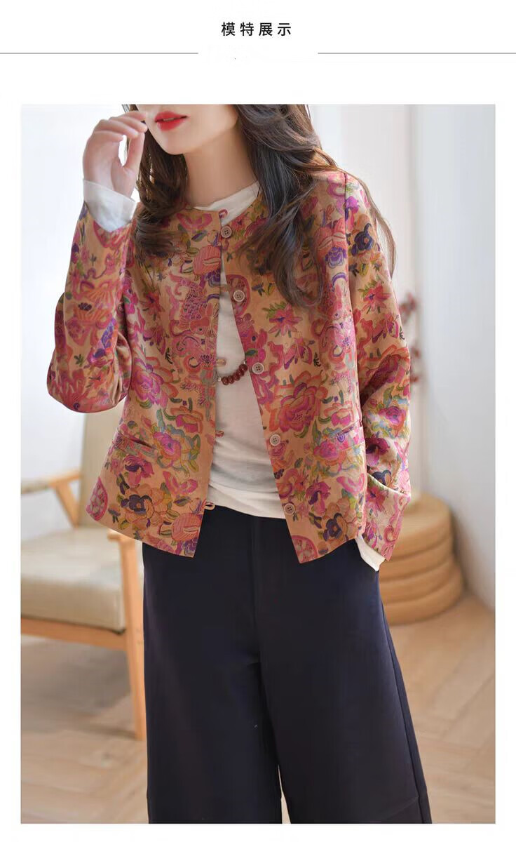MODX轻奢感国风印花短款外套女秋季新款气质宽松减龄外搭开衫上衣 花色 M 【建议100斤以内】