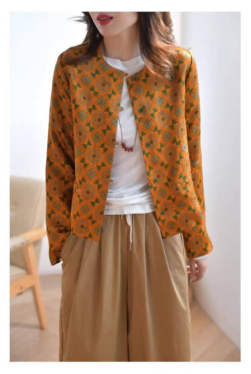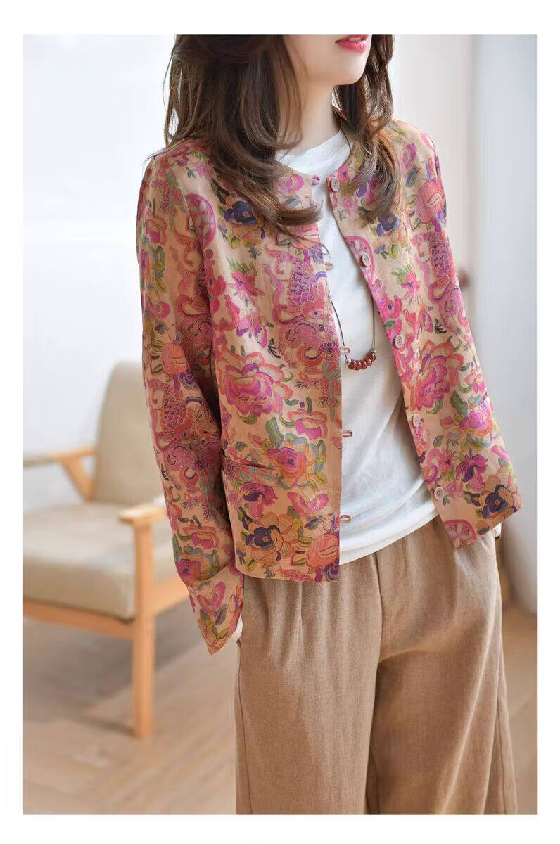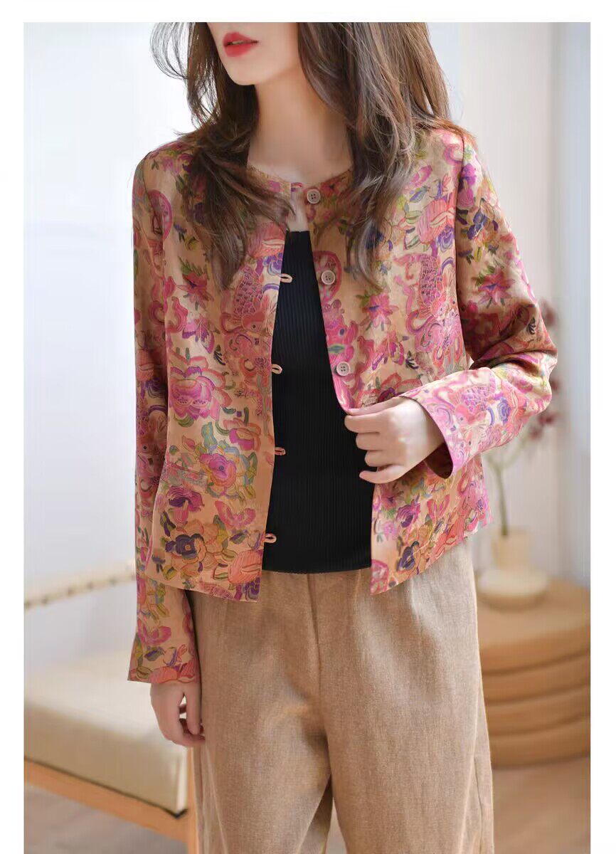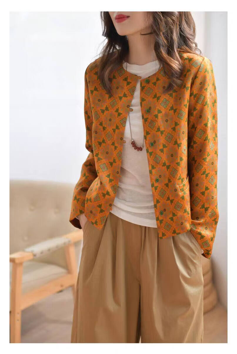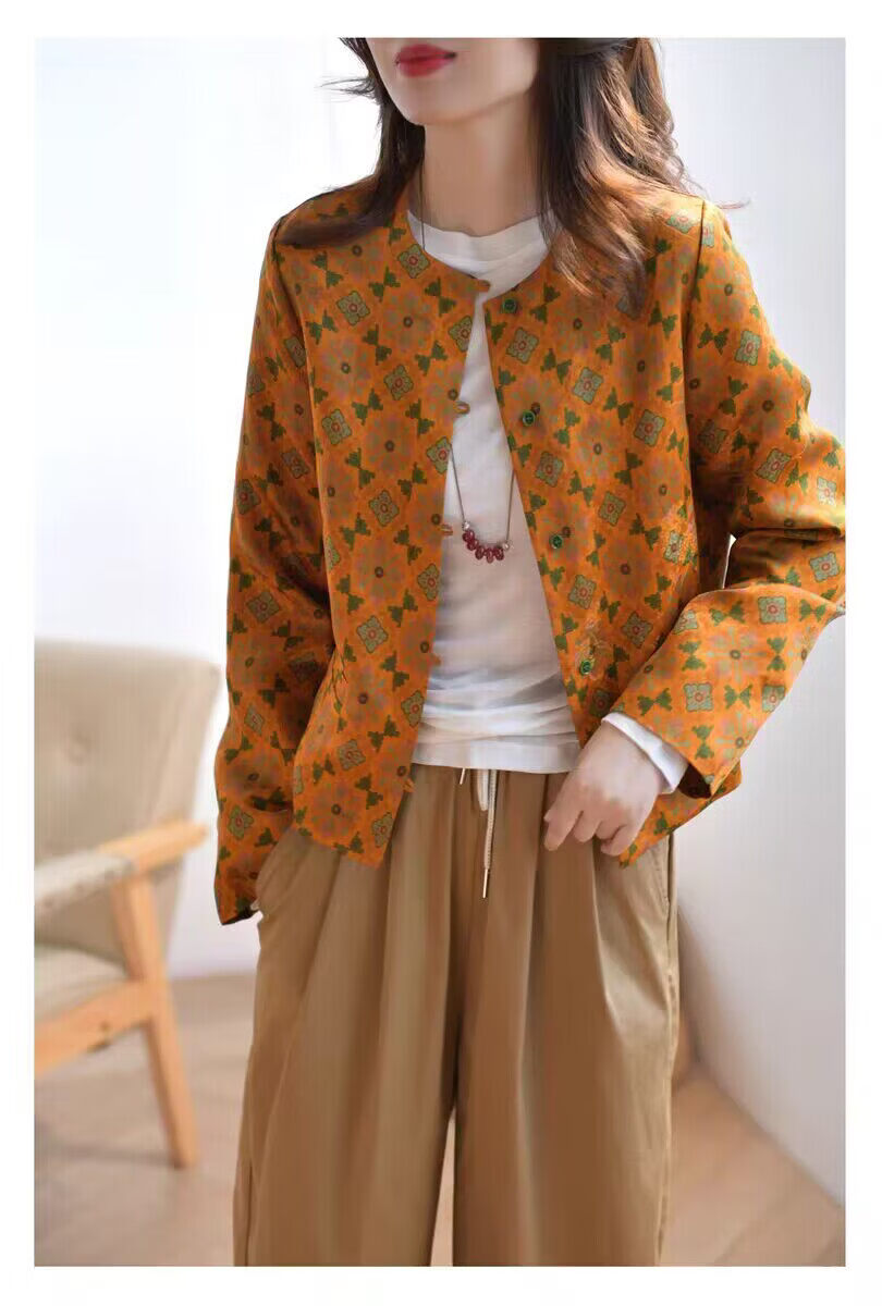 MODX轻奢感国风印花短款外套女秋季新款气质宽松减龄外搭开衫上衣 花色 M 【建议100斤以内】