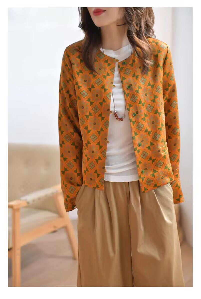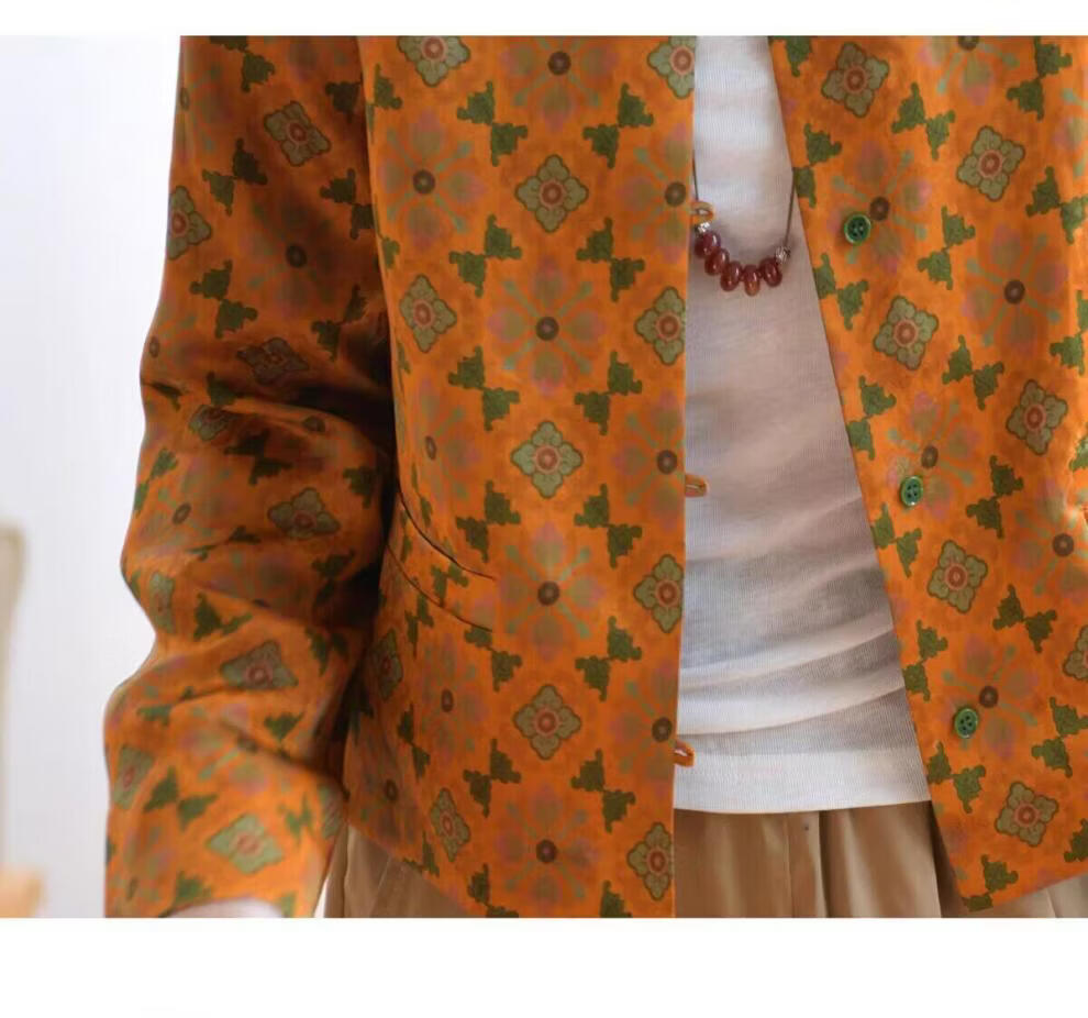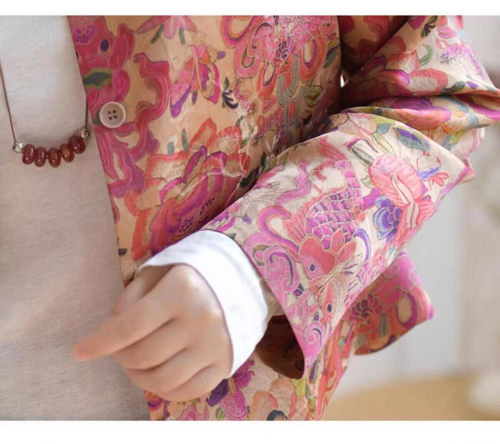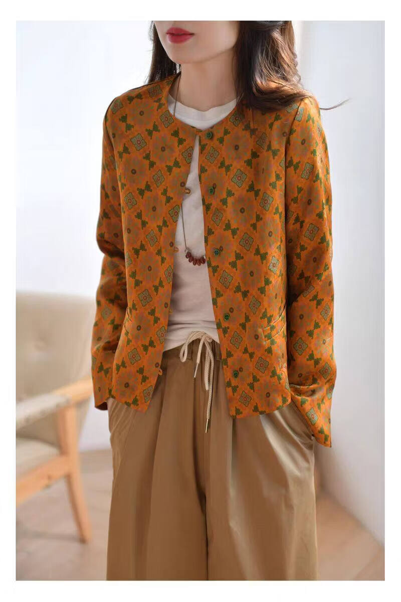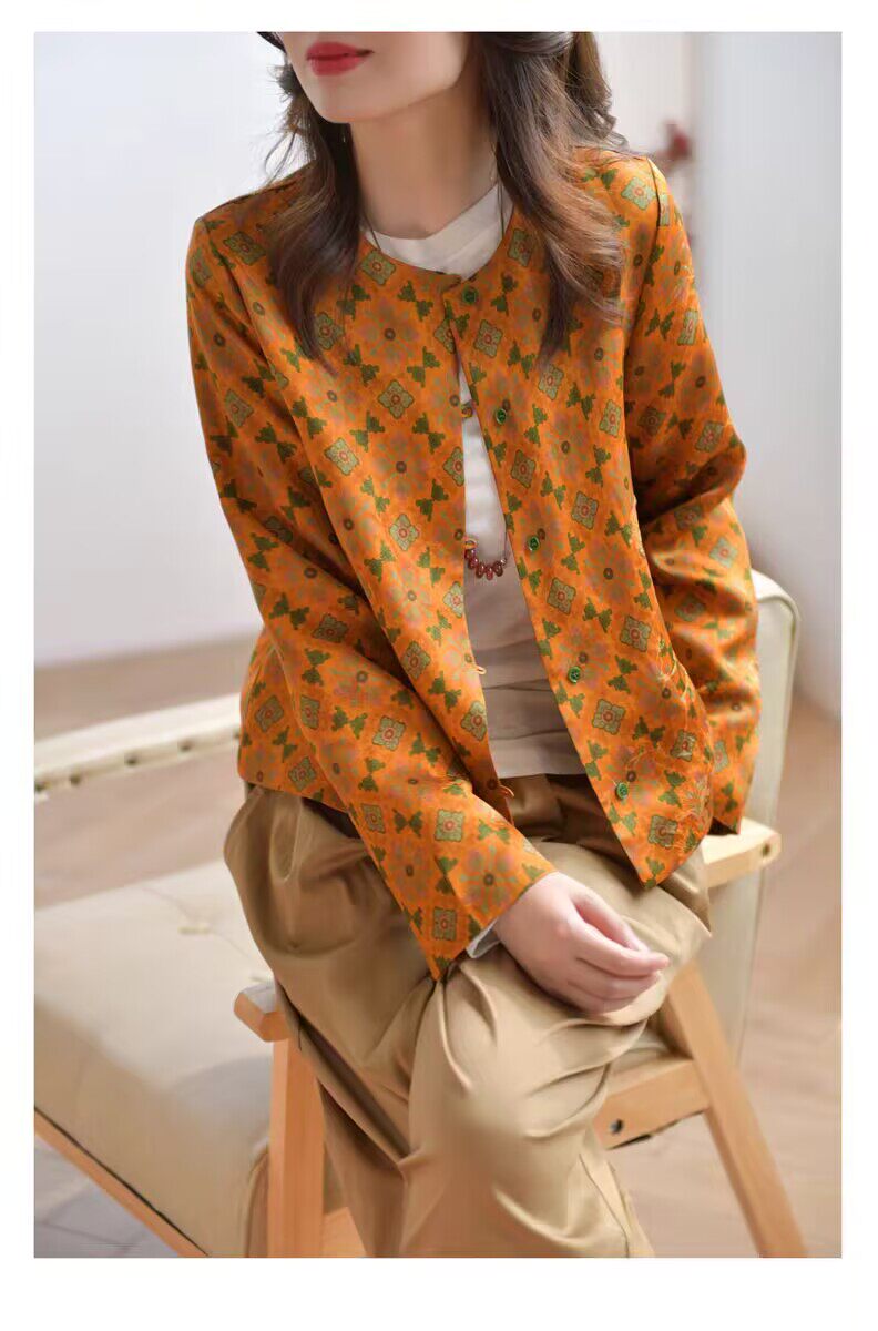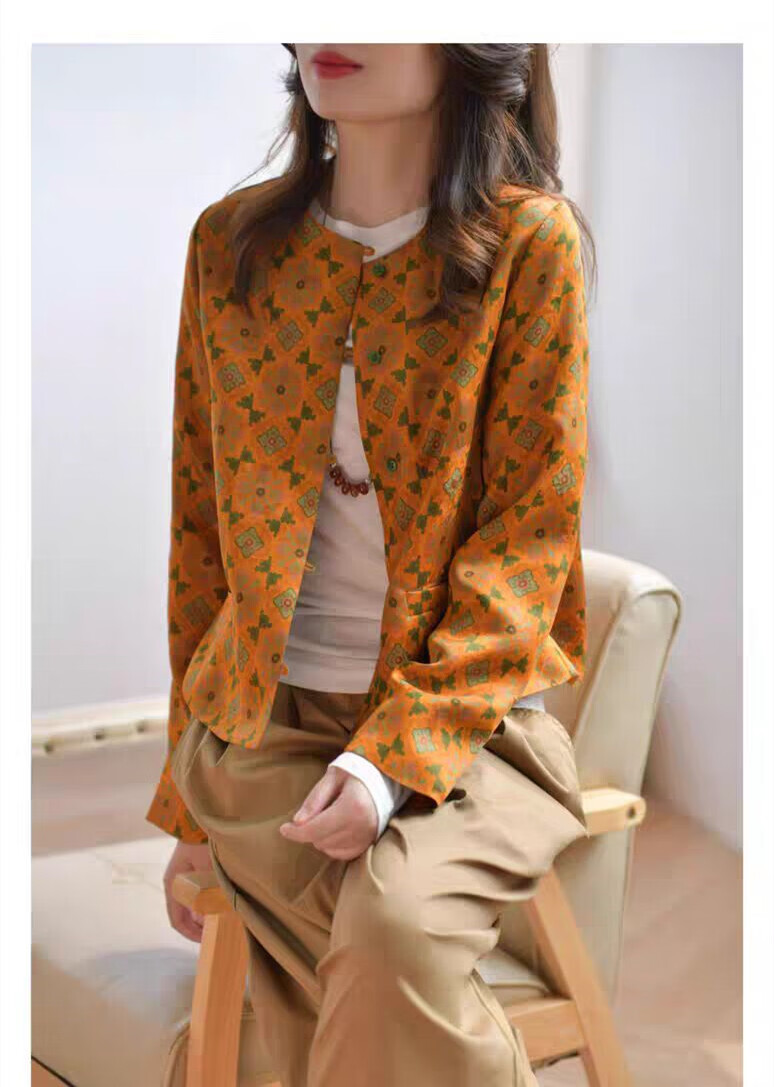 MODX轻奢感国风印花短款外套女秋季新款气质宽松减龄外搭开衫上衣 花色 M 【建议100斤以内】