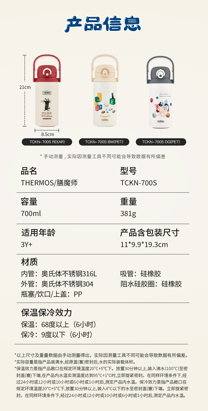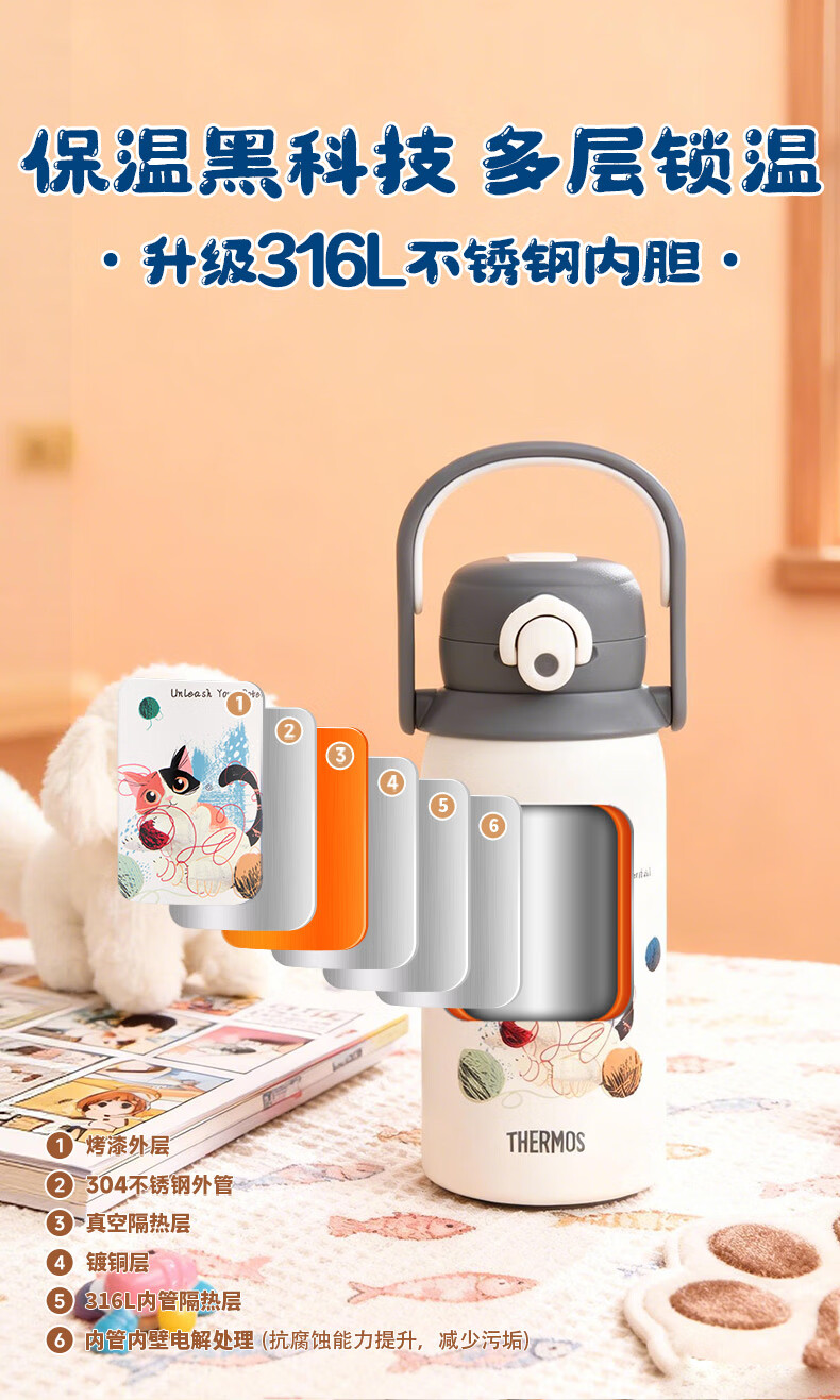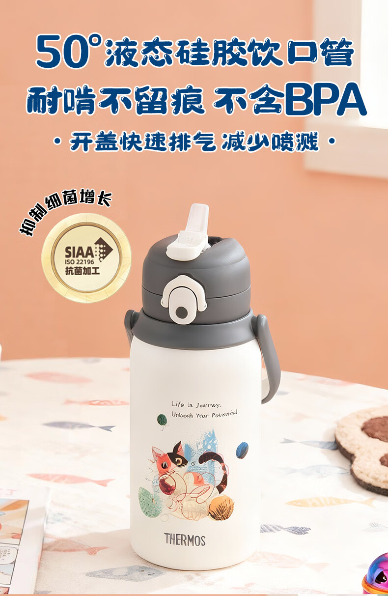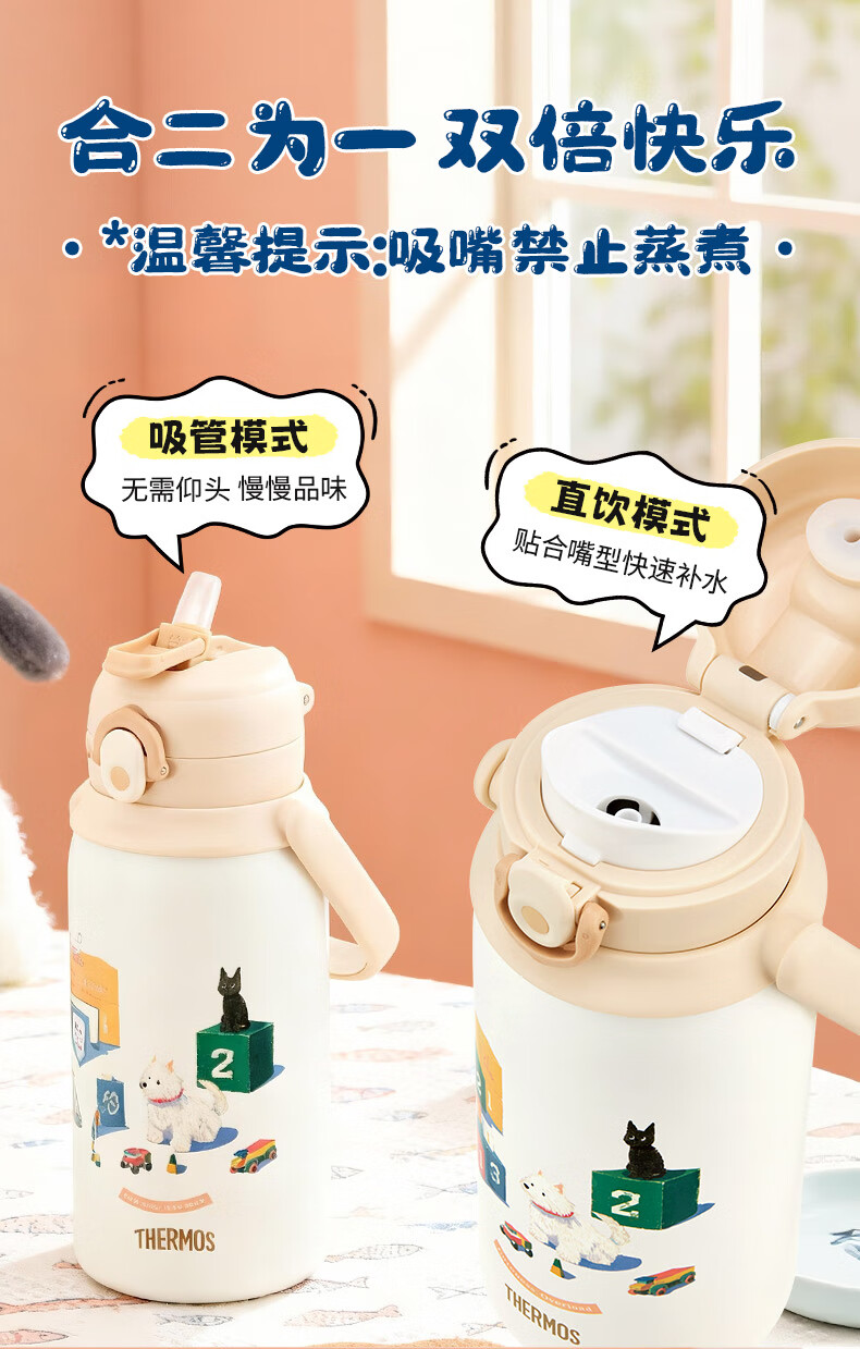 膳魔师(THERMOS)儿童保温杯学生双饮杯吸管直饮弹盖两用便携大容量水壶TCKN