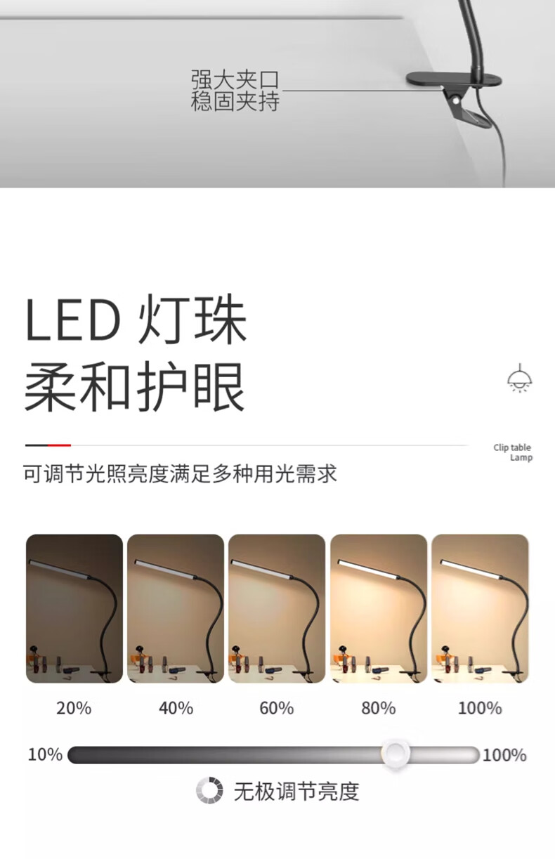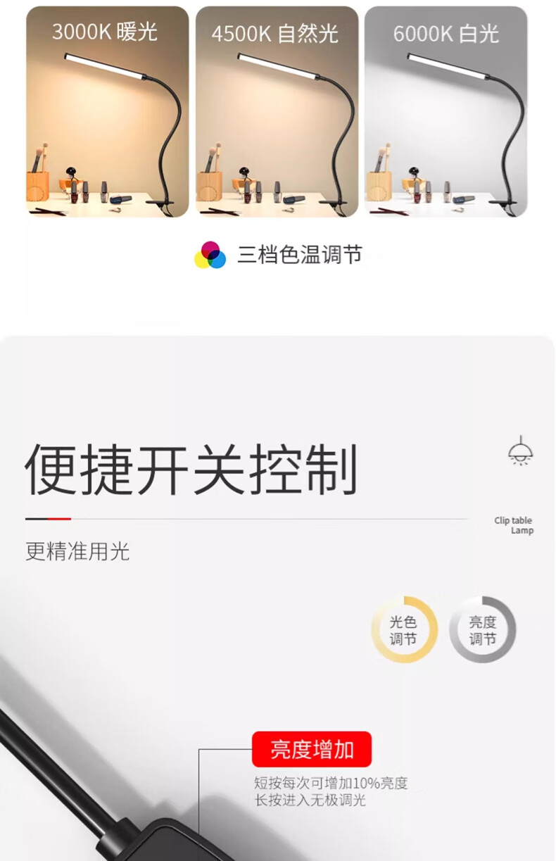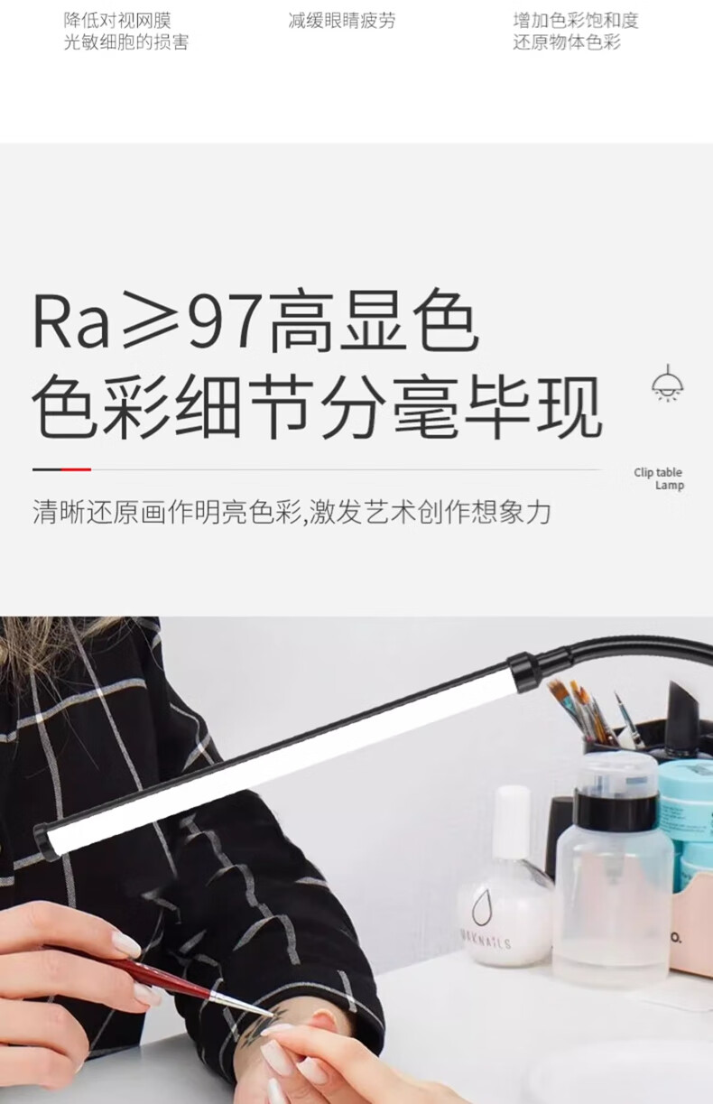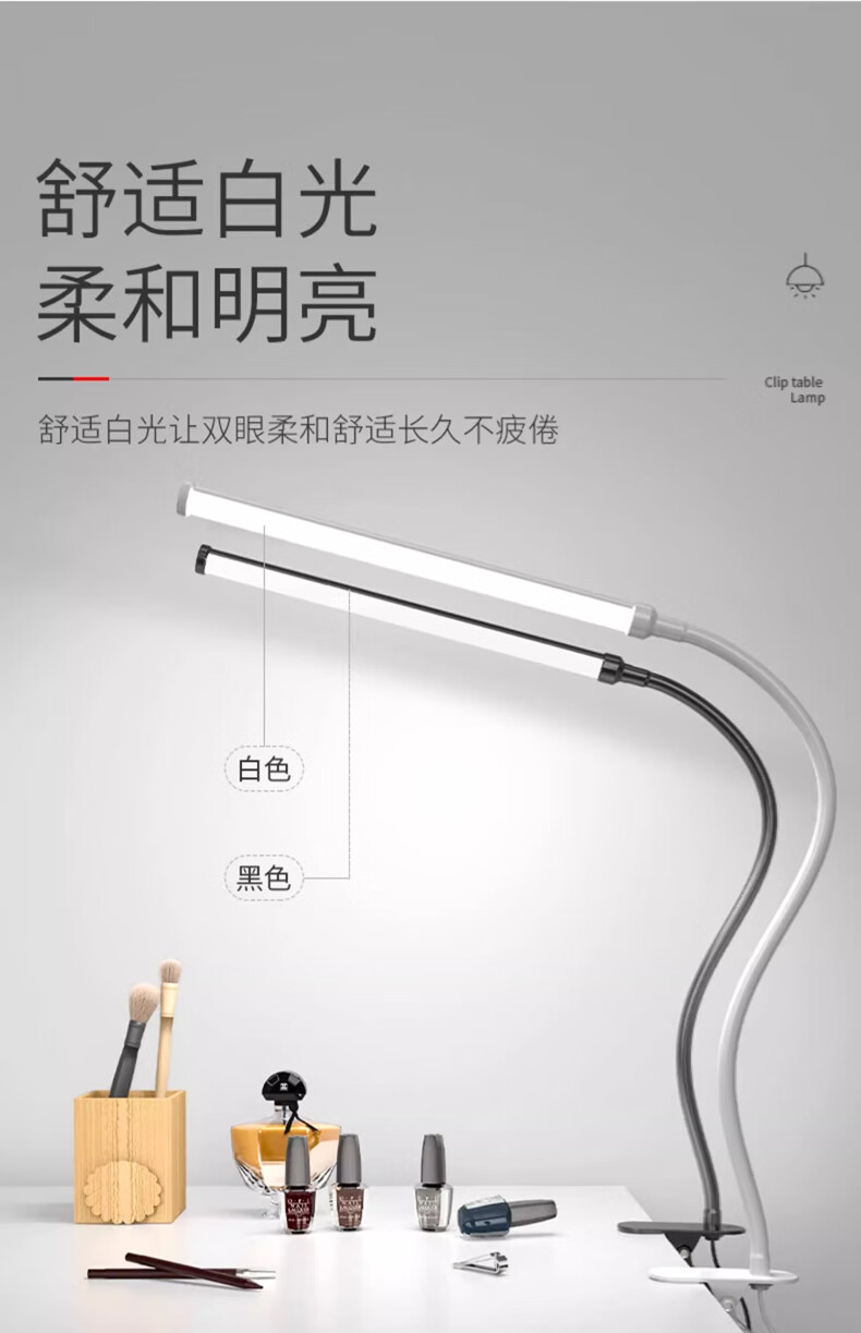 拉伯塔LED夹式小台灯美容美甲纹绣纹眉儿童学习阅读写字护眼书桌夹子灯 星夜黑*全光谱【28cm-12W】 常规标准款【无极调光】