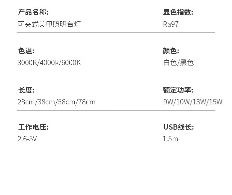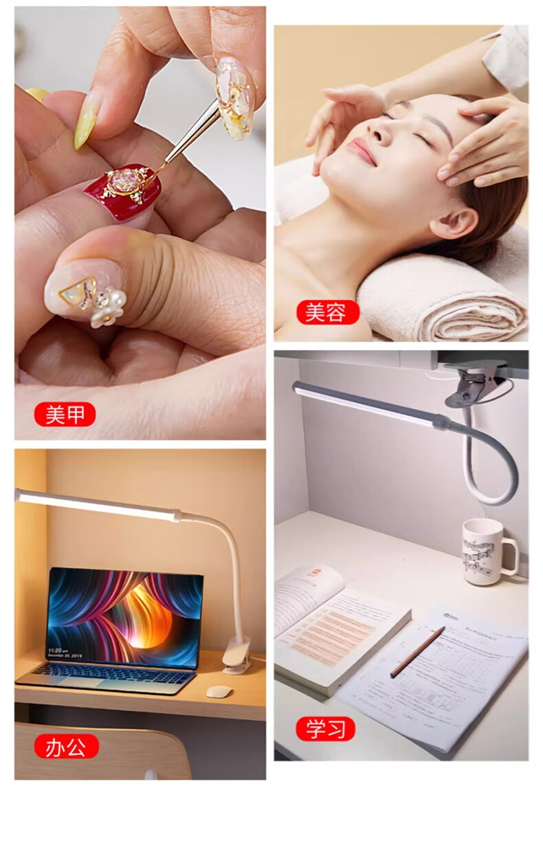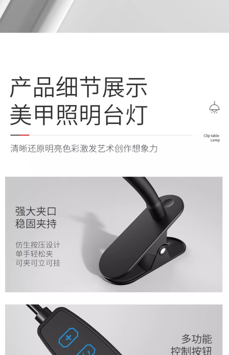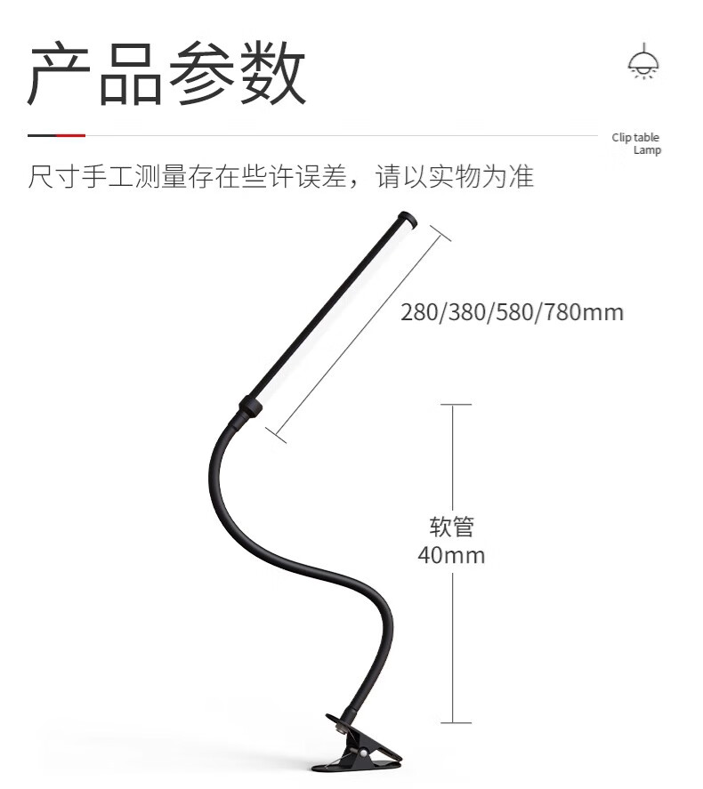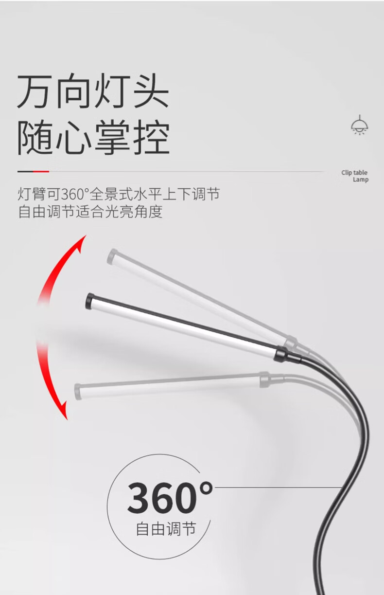 拉伯塔LED夹式小台灯美容美甲纹绣纹眉儿童学习阅读写字护眼书桌夹子灯 星夜黑*全光谱【28cm-12W】 常规标准款【无极调光】