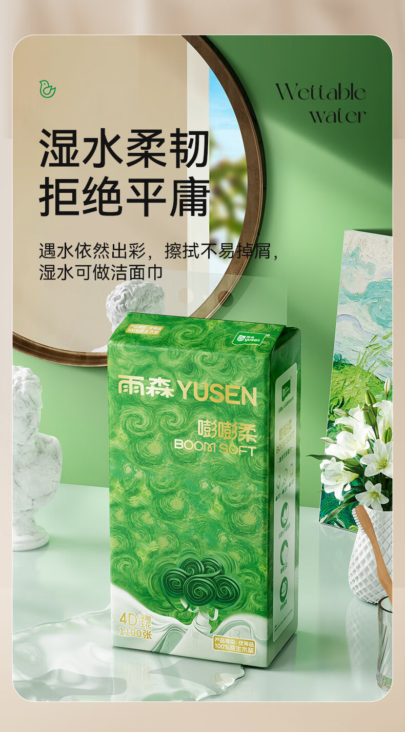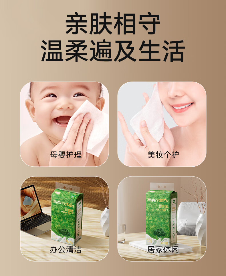 雨森纸抽纸妇婴系列4层100抽卫生纸家用手纸巾学生宿舍面巾纸餐巾纸 4层 400张*12包 【超值装】