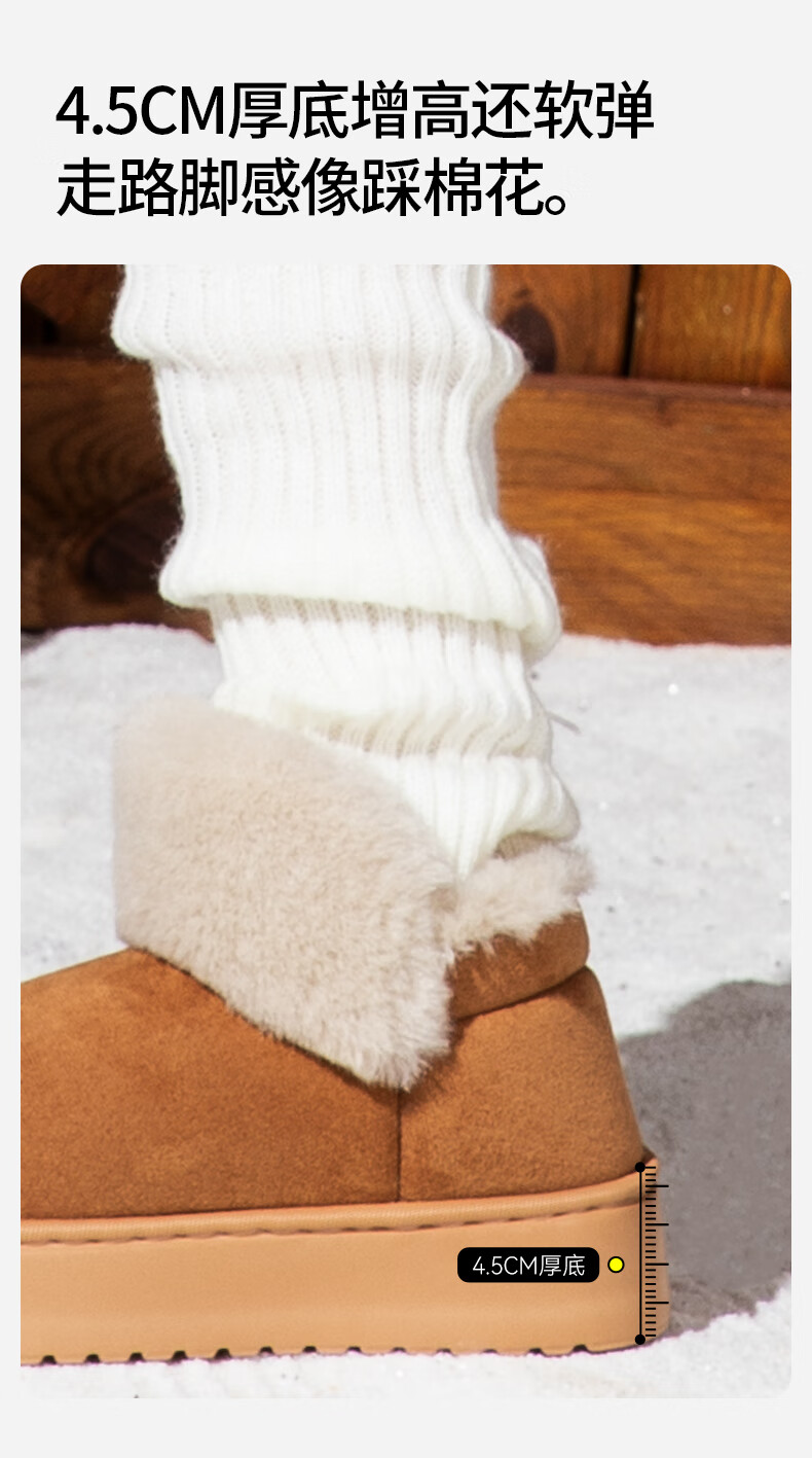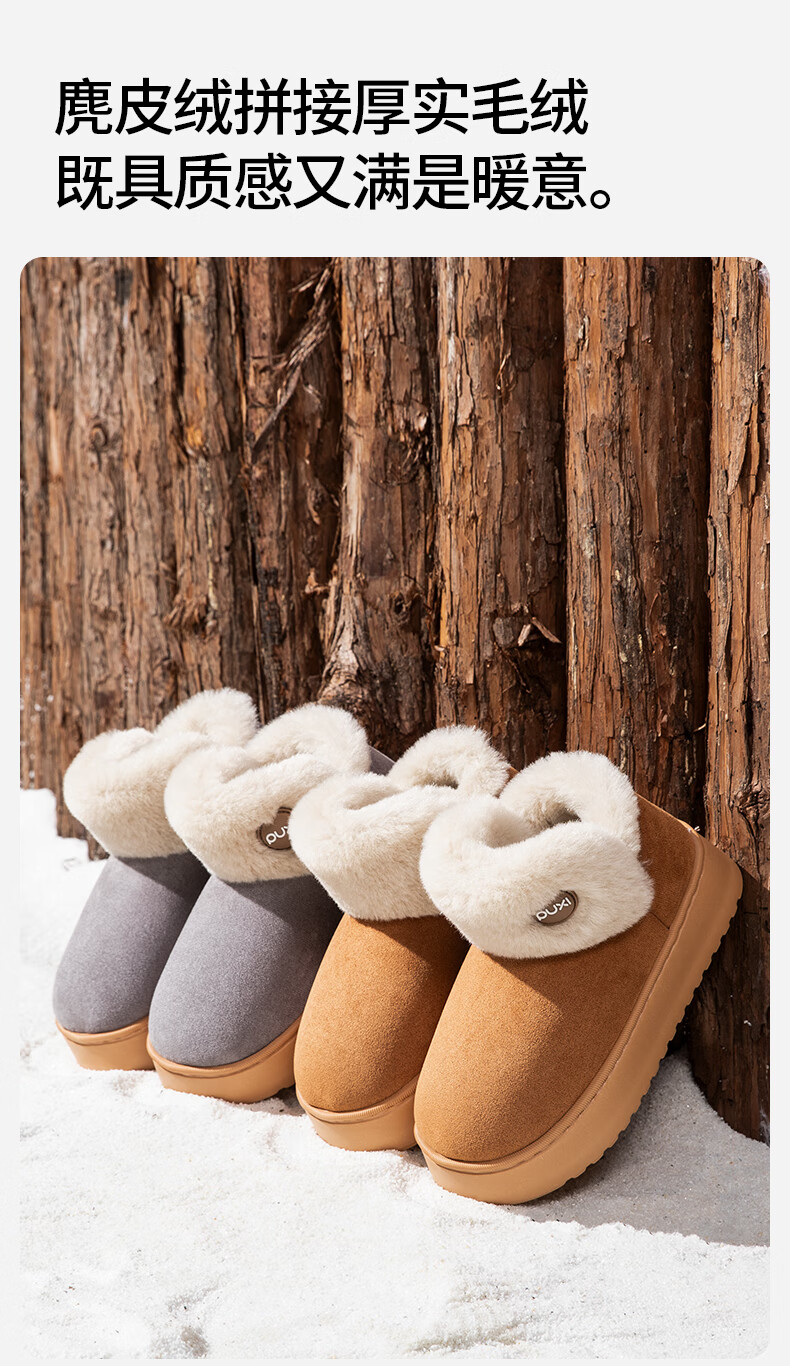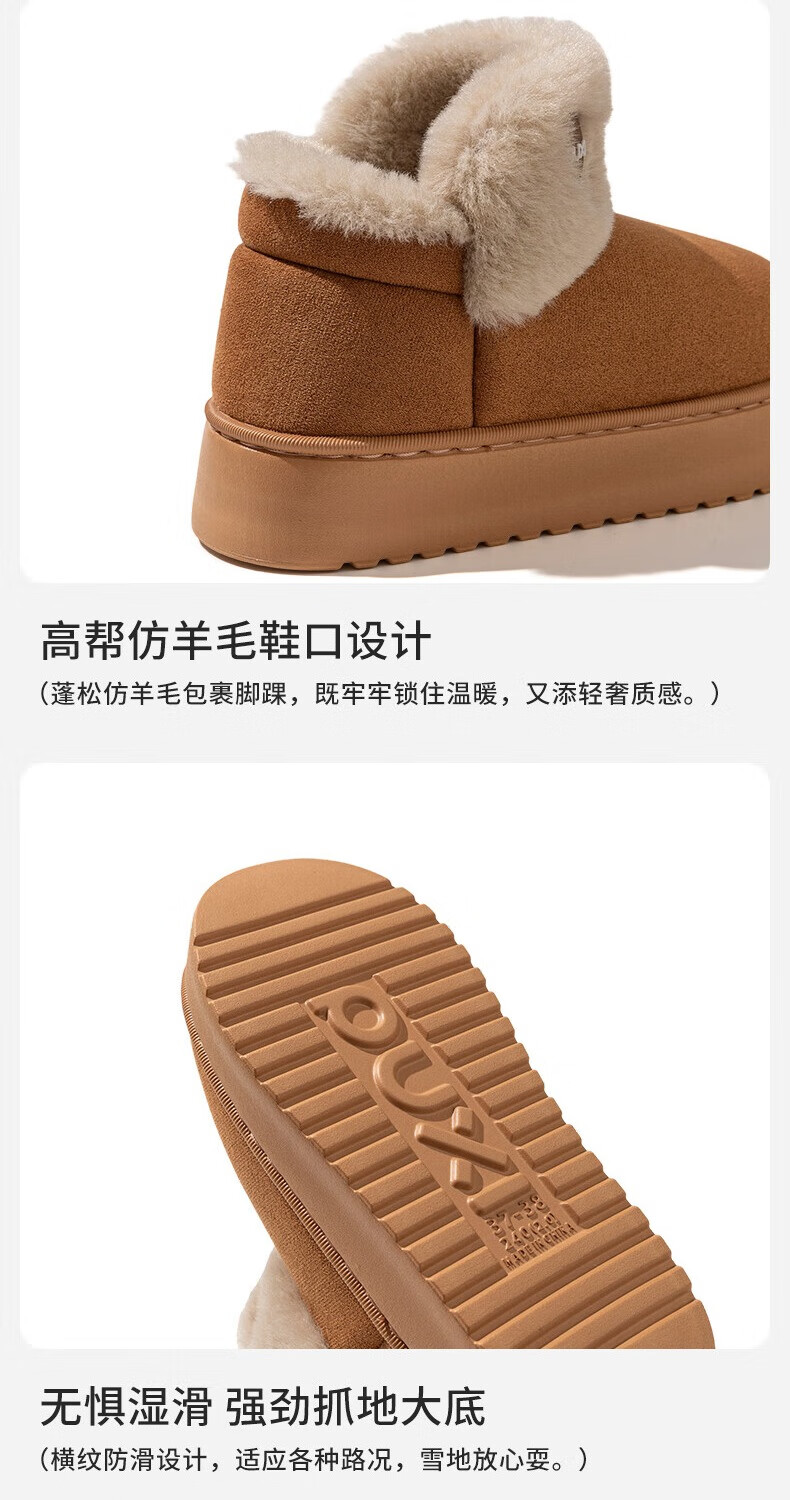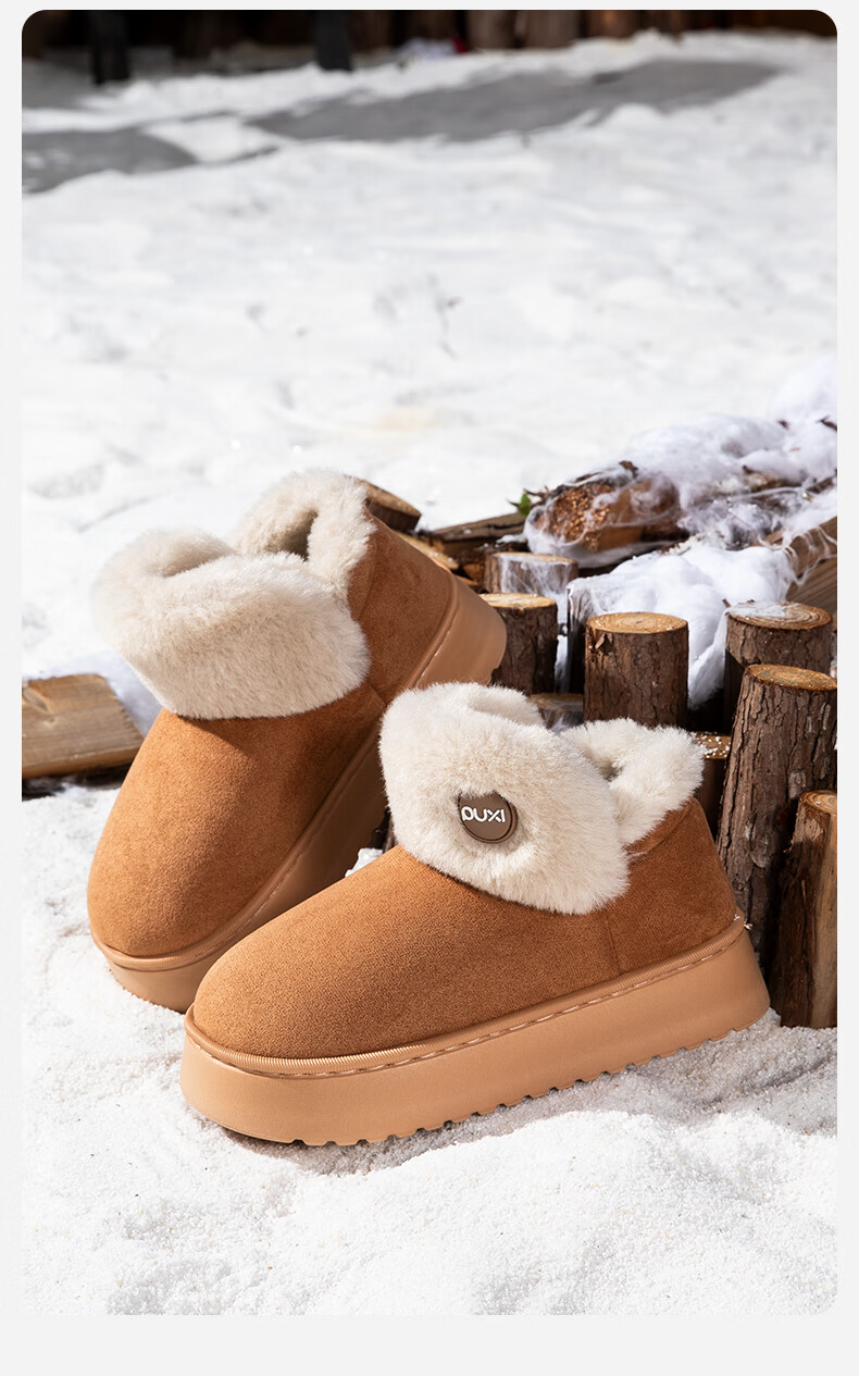 朴西雪地靴女外穿保暖增高厚底加厚棉靴防水防滑包根毛绒棉鞋冬天 驼色 37-38 【商超同款*朴西品牌】