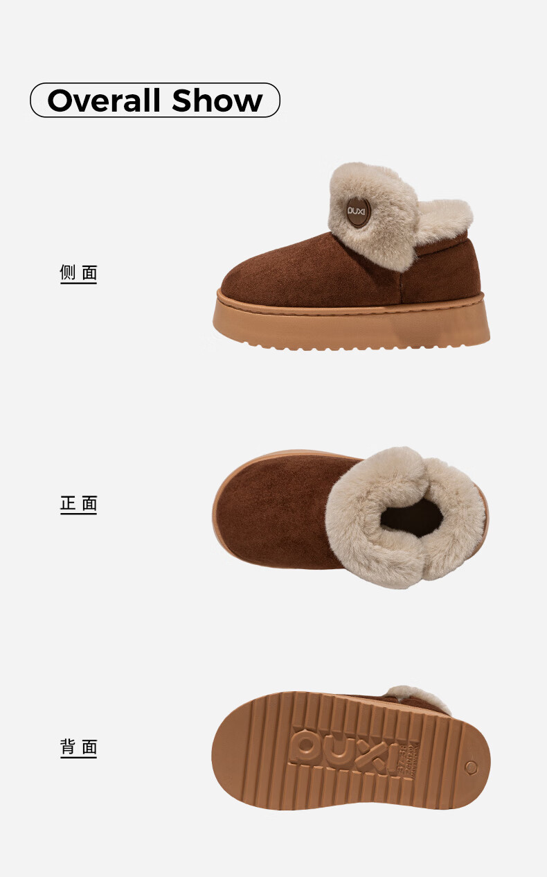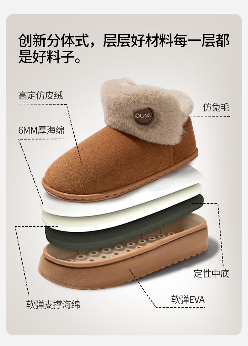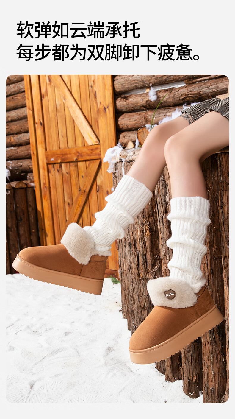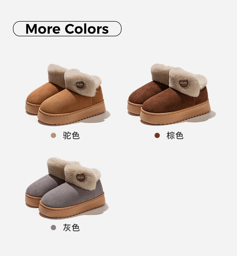朴西雪地靴女外穿保暖增高厚底加厚棉靴防水防滑包根毛绒棉鞋冬天 驼色 37-38 【商超同款*朴西品牌】
