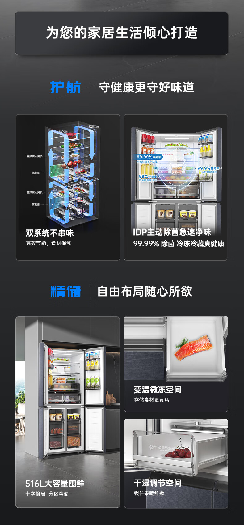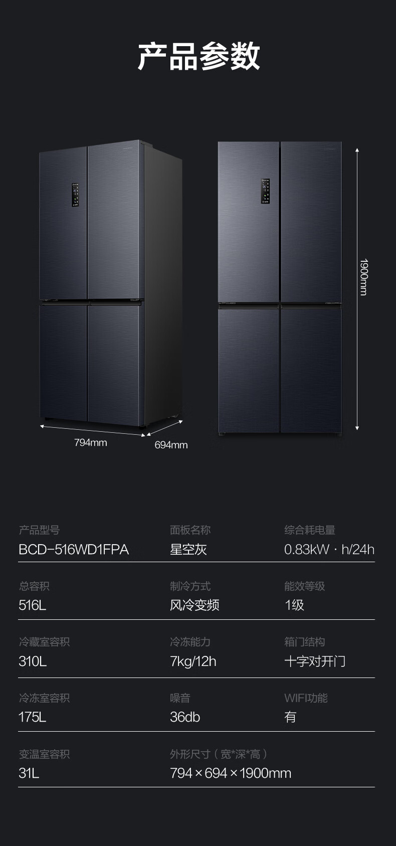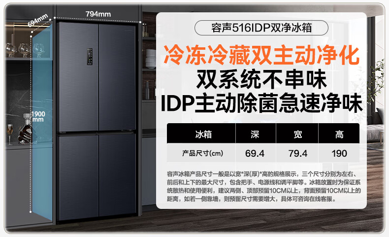 容声双净516L十字门冰箱双系统双循环一级能效风冷无霜变频以旧换新大容量灰BCD-516WD1FPA国家补贴