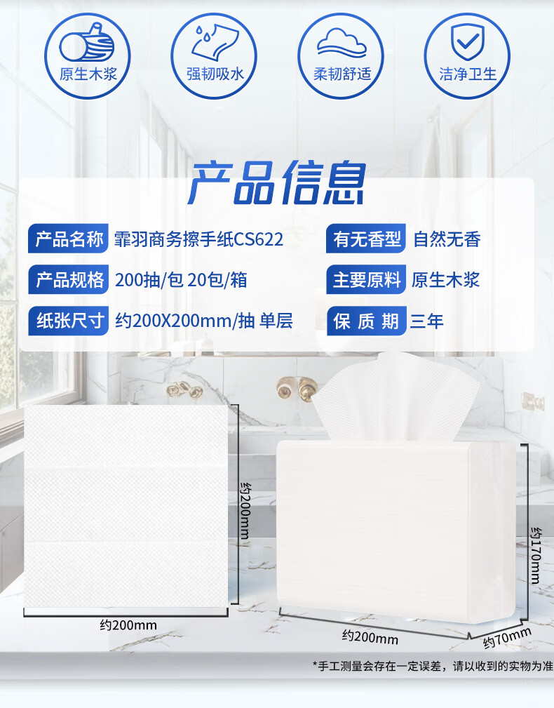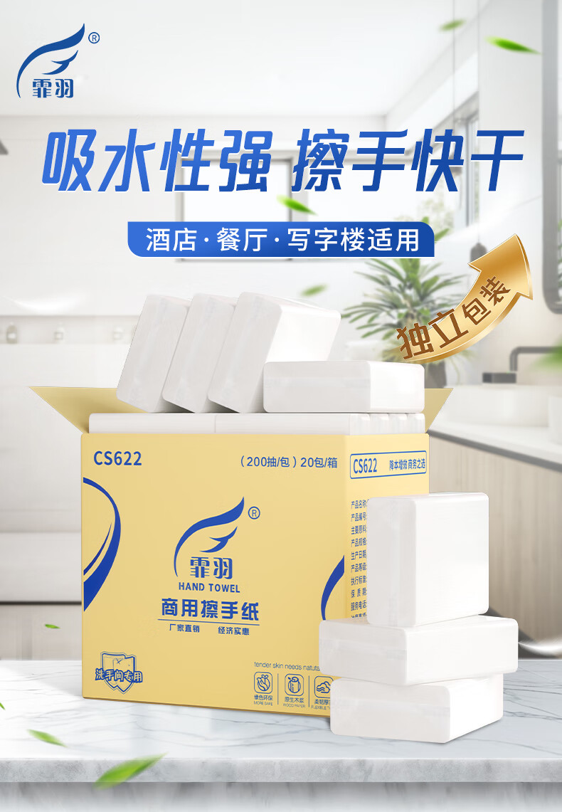 霏羽擦手纸商用1层200抽*20包 酒店卫生间干手纸厨房用纸整箱CS622