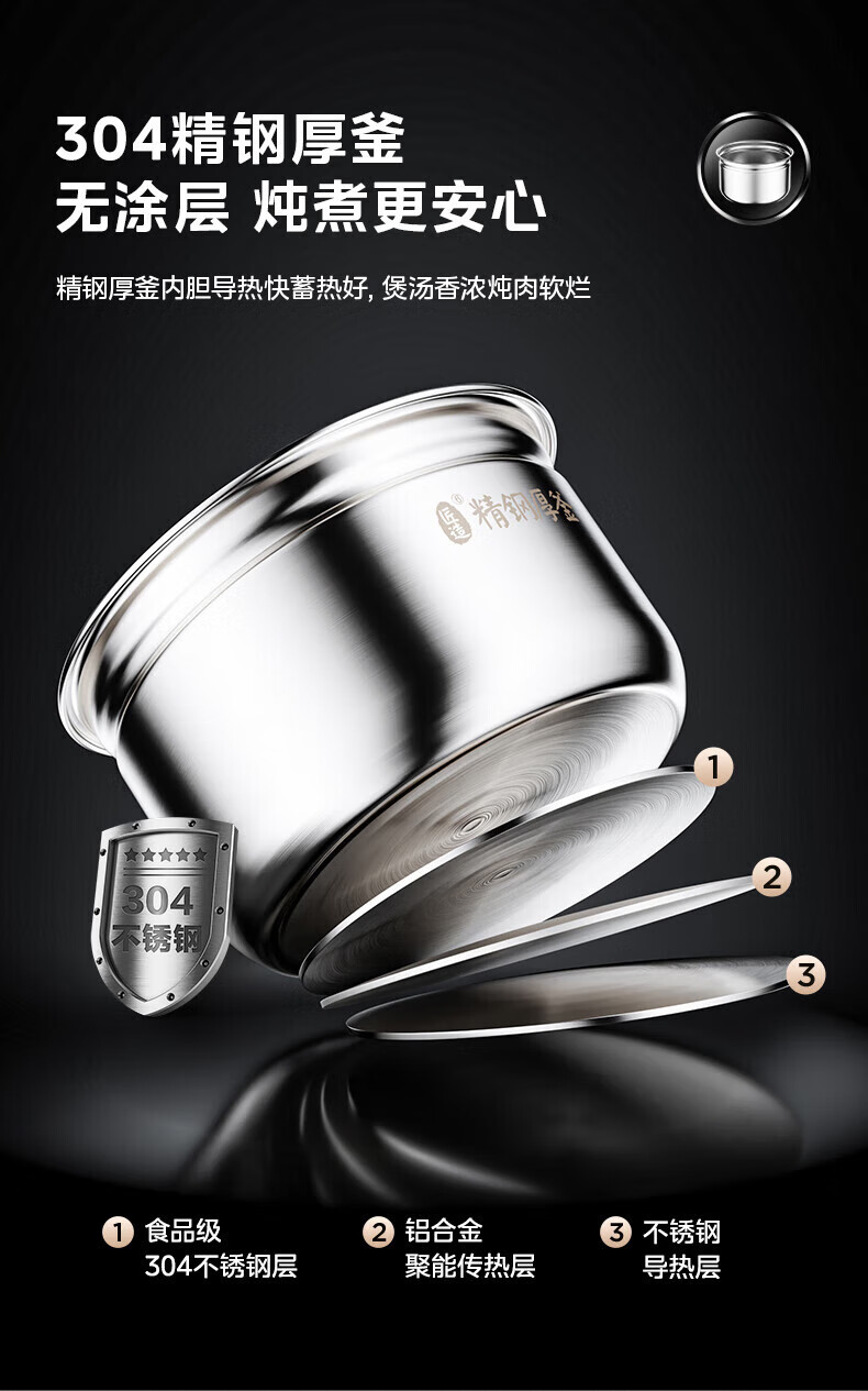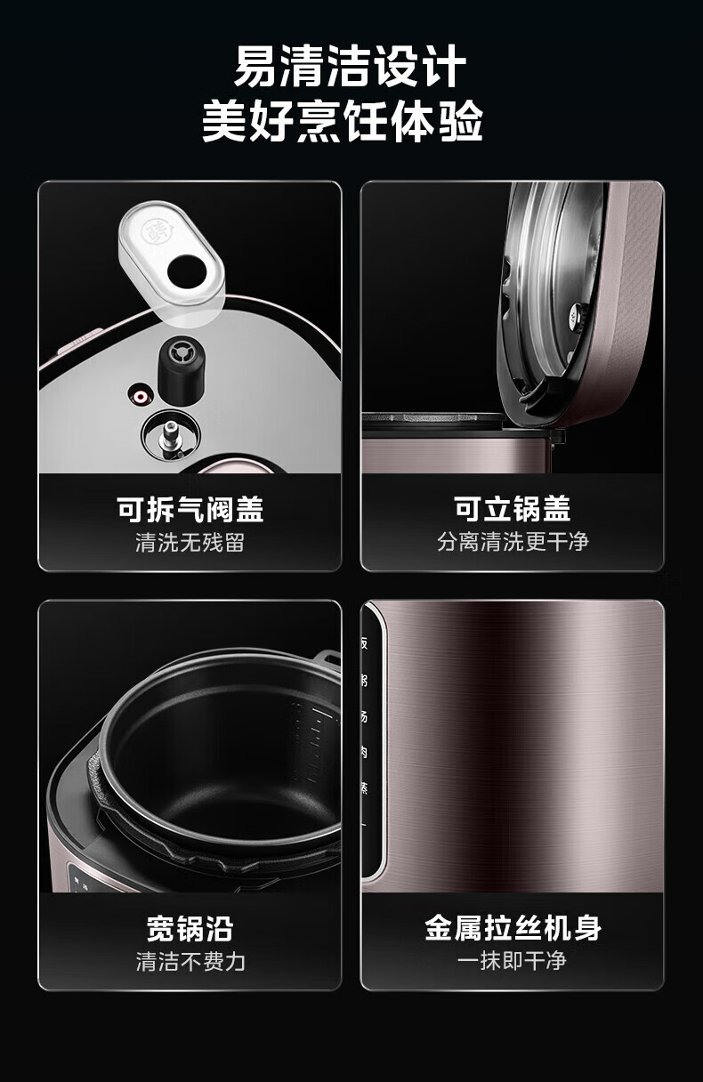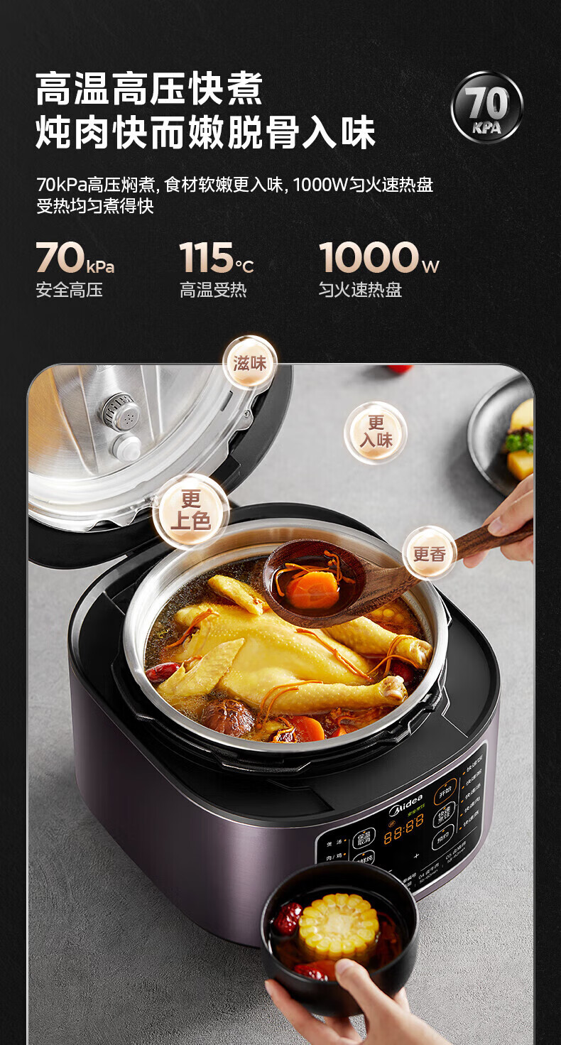美的(Midea)智能电压力锅家用 5L多功能锅 不粘双胆开盖收汁匀火速热 高压锅(4-6人食用) 0涂层内胆 MY-C540G 【方煲系列】0涂层 钢厚釜 5L