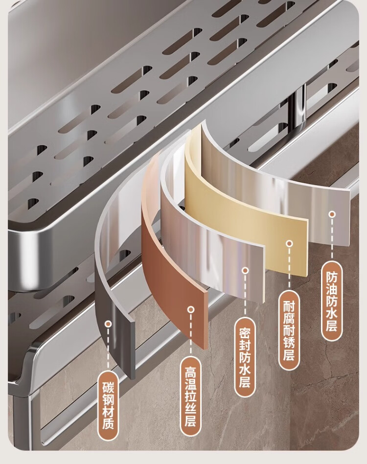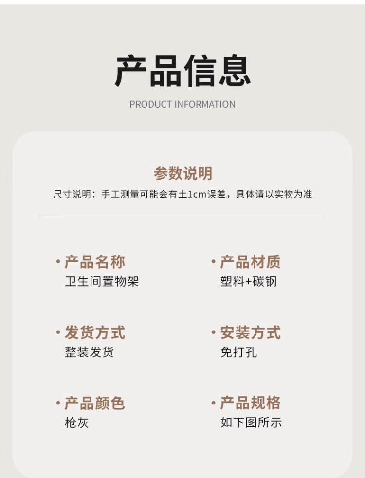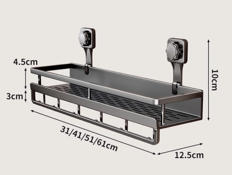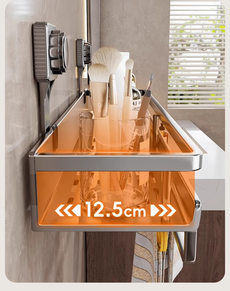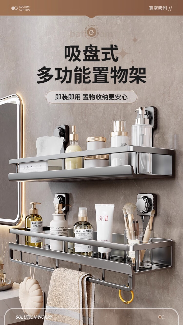尔思家卫生间浴室置物架免打孔壁挂式厕所毛巾挂架沐浴露架多功能收纳架 60cm单层【带杆带钩】