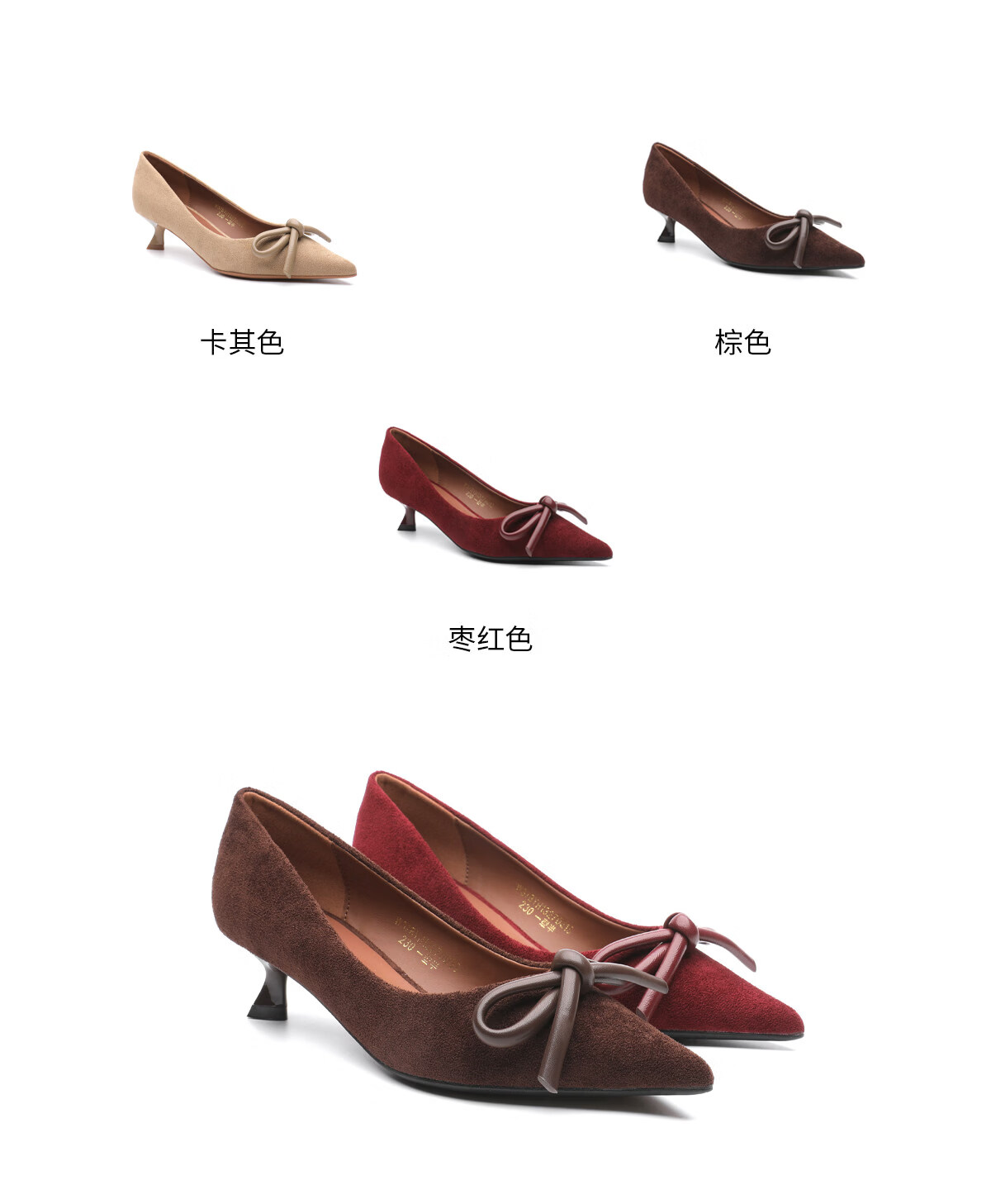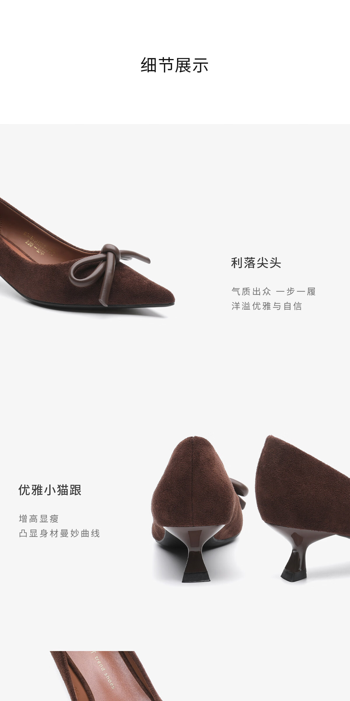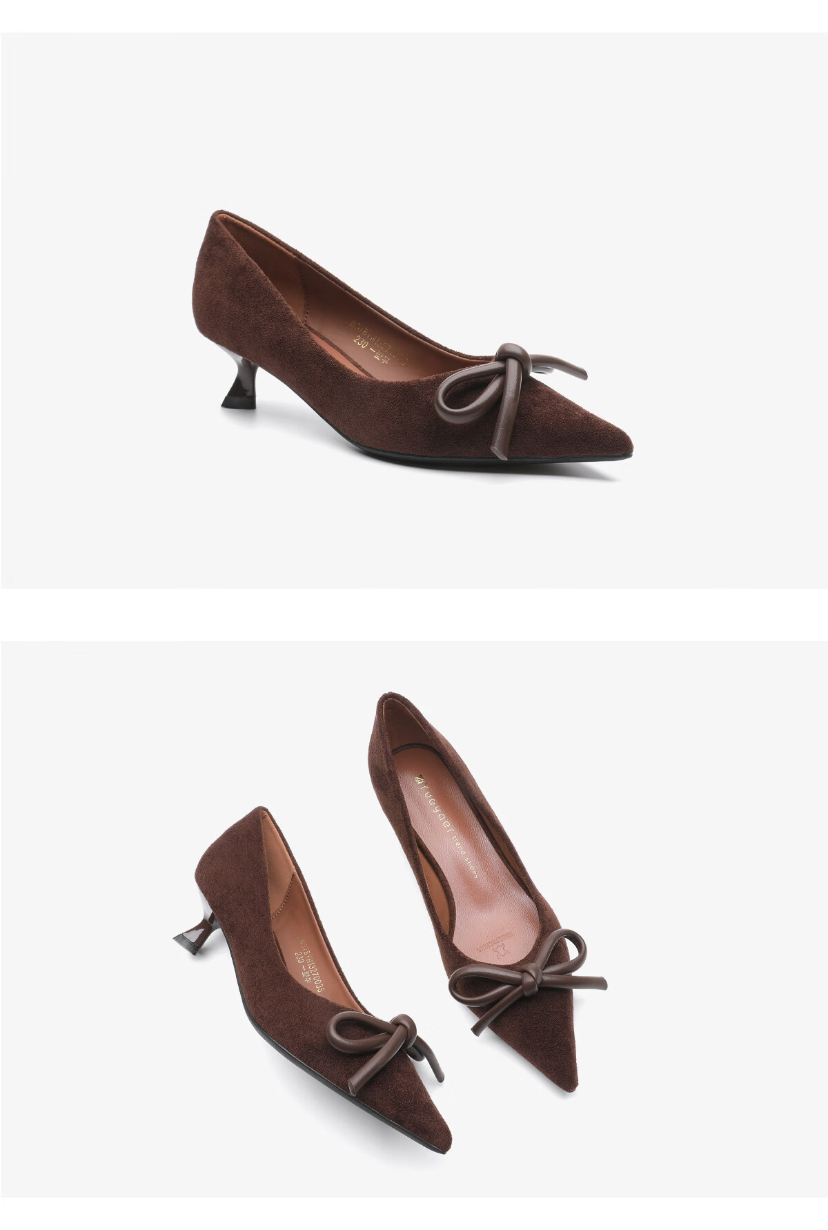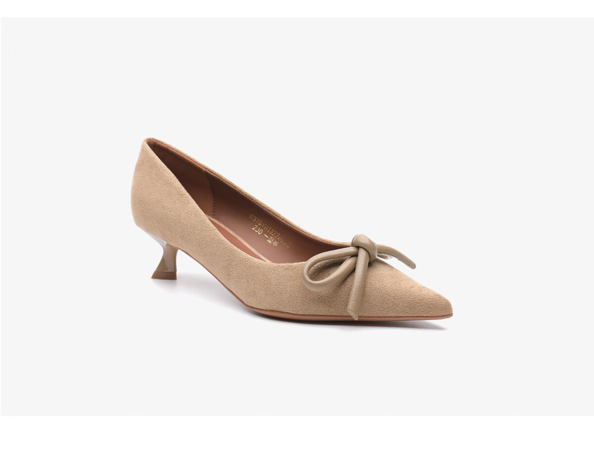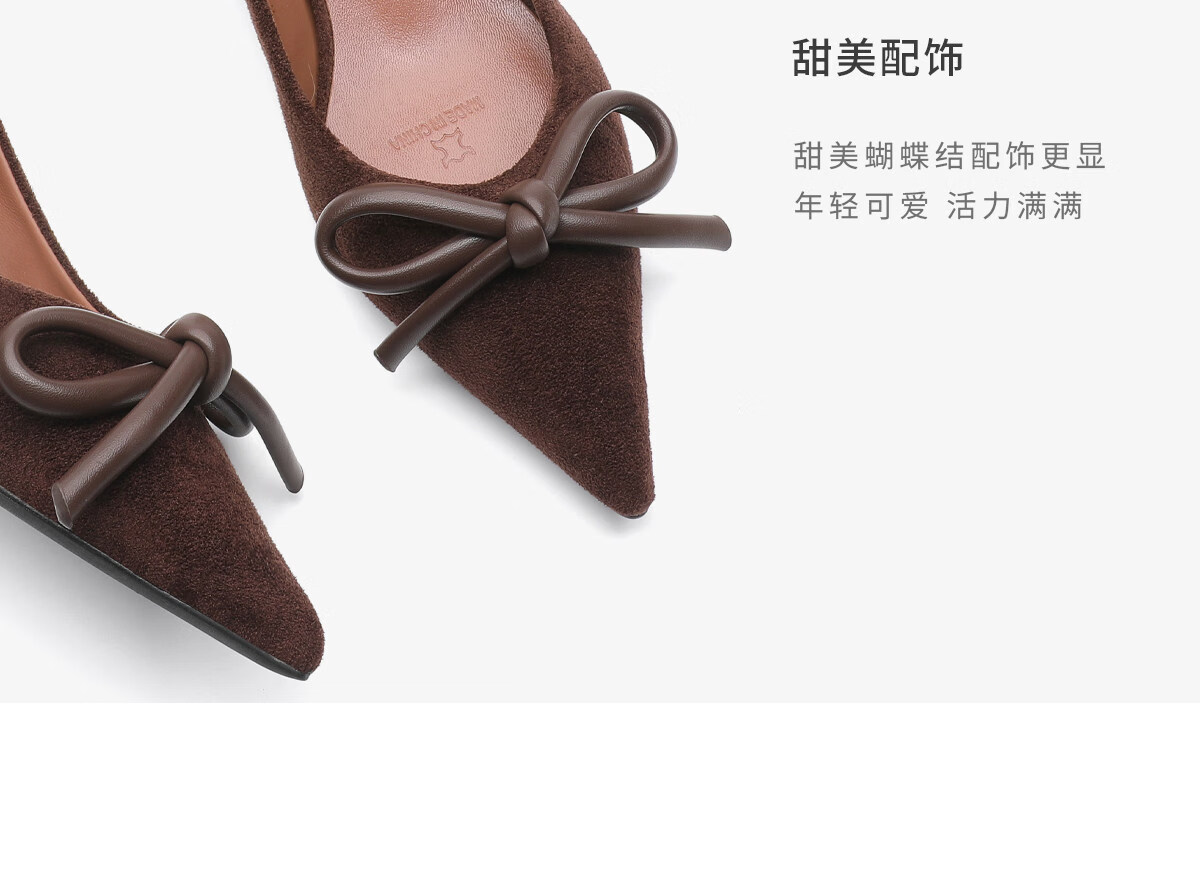 月芽儿复古风蝴蝶结尖头浅口单鞋女百搭气质高跟鞋 棕色03S 34