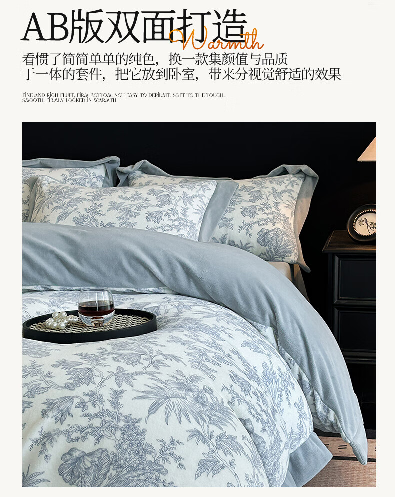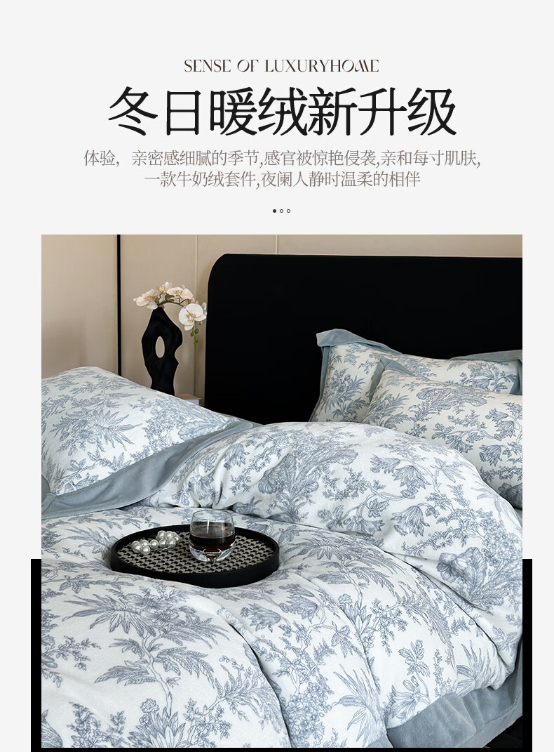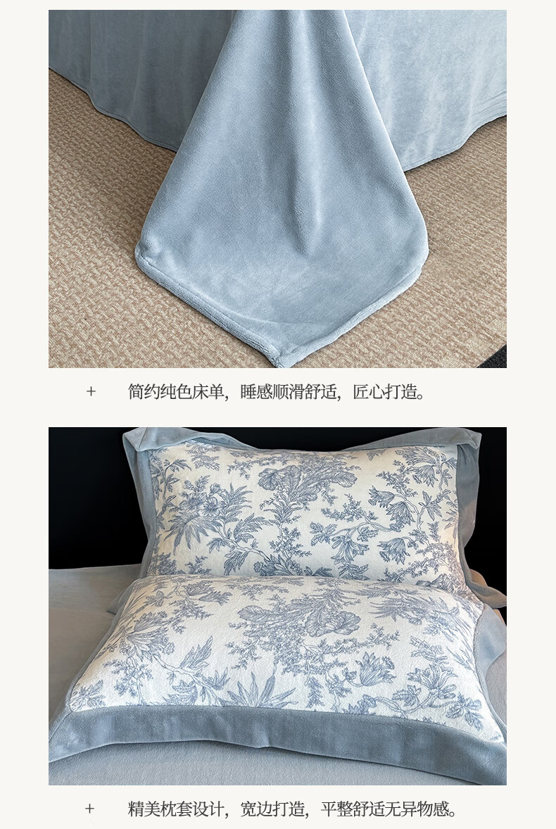 VJE冬季加厚牛奶绒床上四件套2026新款双面加绒珊瑚绒床单被套三件套 初羽 三件套1.2m 床单款 -被套150*200cm