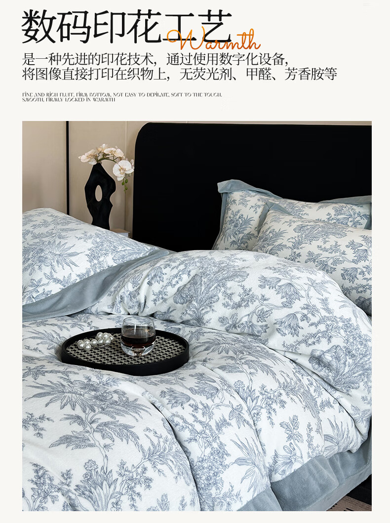 软贝小清新牛奶绒床上四件套保暖毛绒床单被套学生宿舍秋冬款三件套 绿意盎然 床单款 1.2m 被套150*200cm 三件套
