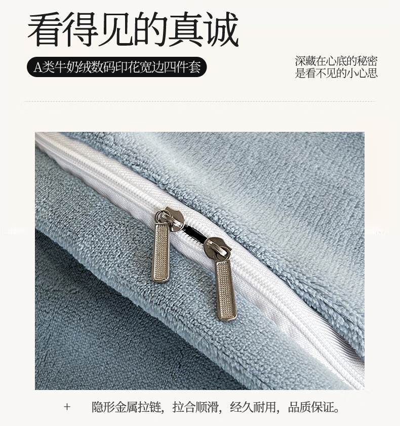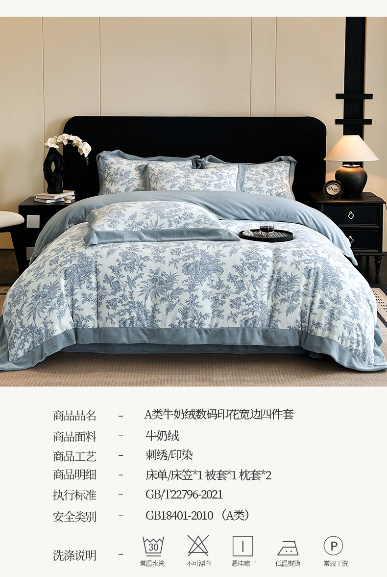 富安娜(FUANNA) 全涤磨毛四件套/静谧蓝 标准
