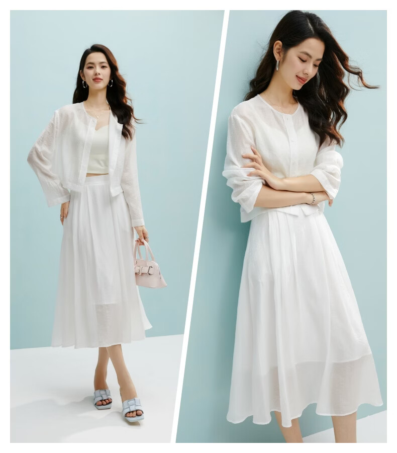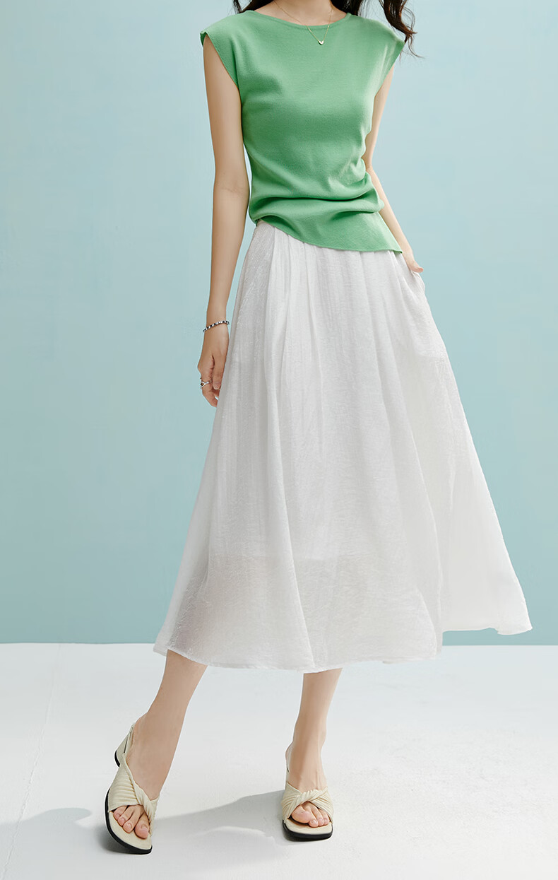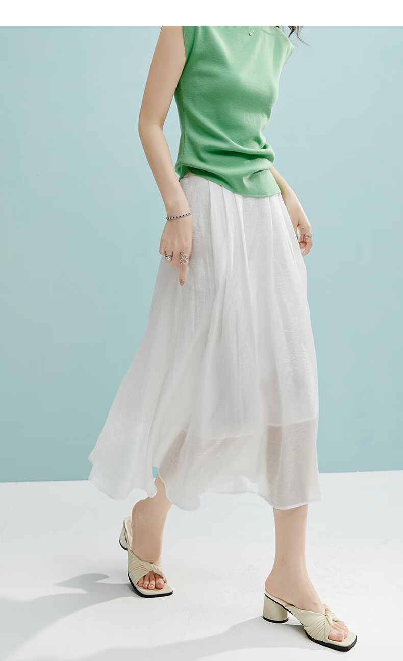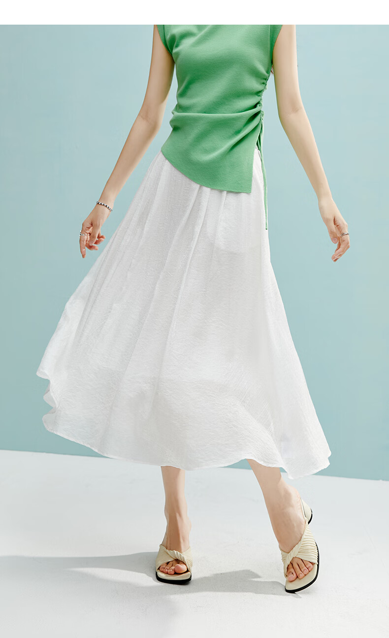 晚白【新品】2026年春款时尚白色半裙亲肤莱赛尔大摆A字半身裙 白色 L