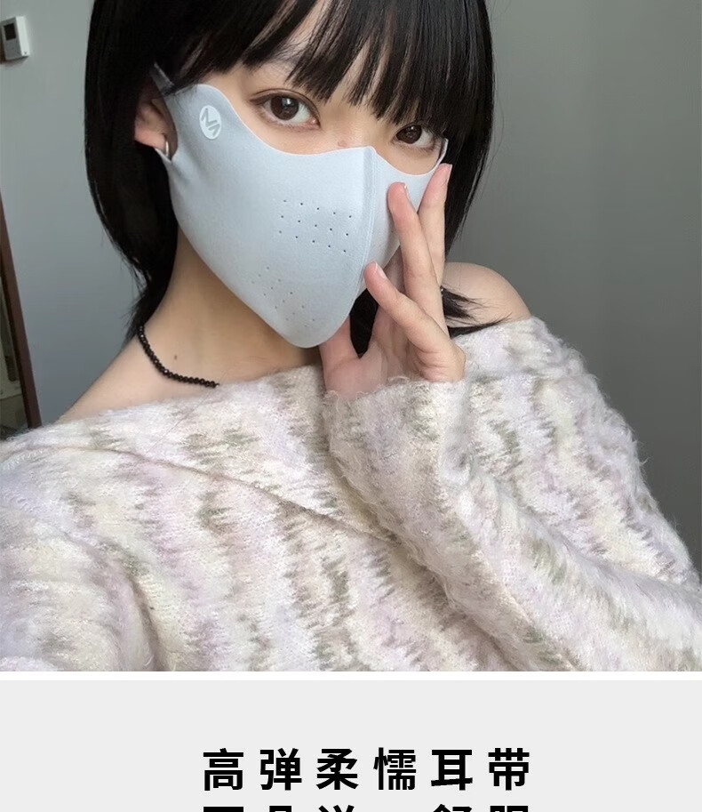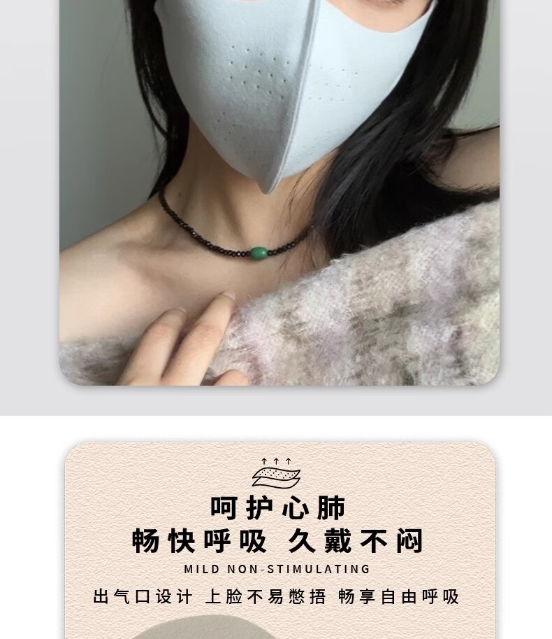 新款高颜值保暖口罩防风无痕修饰脸型可水洗护眼角双面暖绒不花妆 深灰