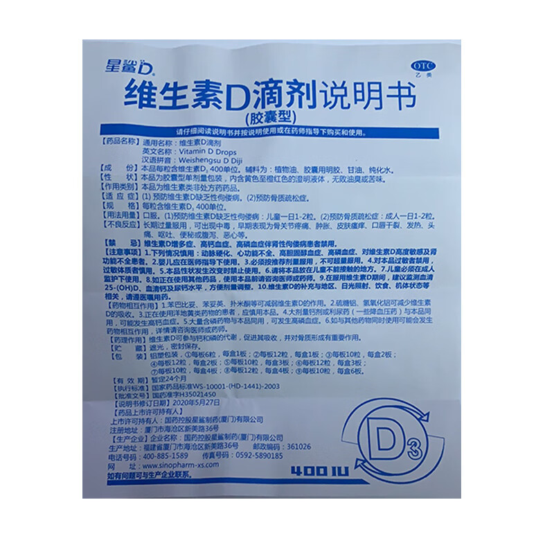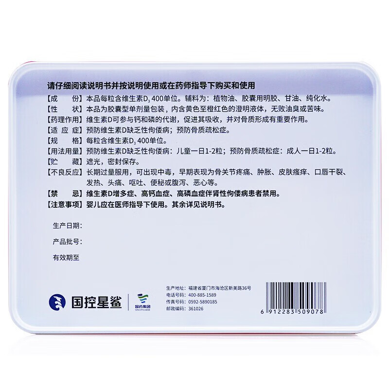 星鲨维生素D滴剂60粒 婴幼儿儿童孕妇补充维生素D促钙吸收补钙小腿抽筋