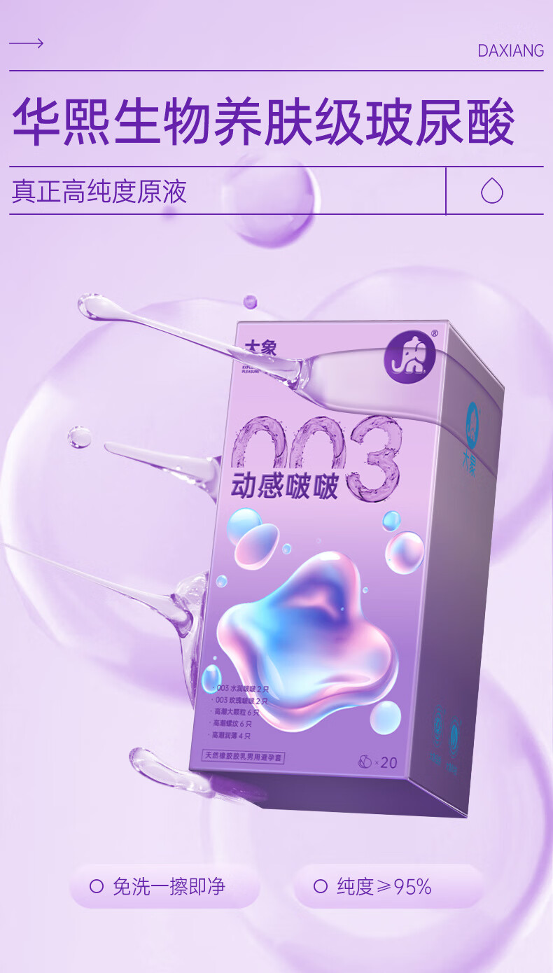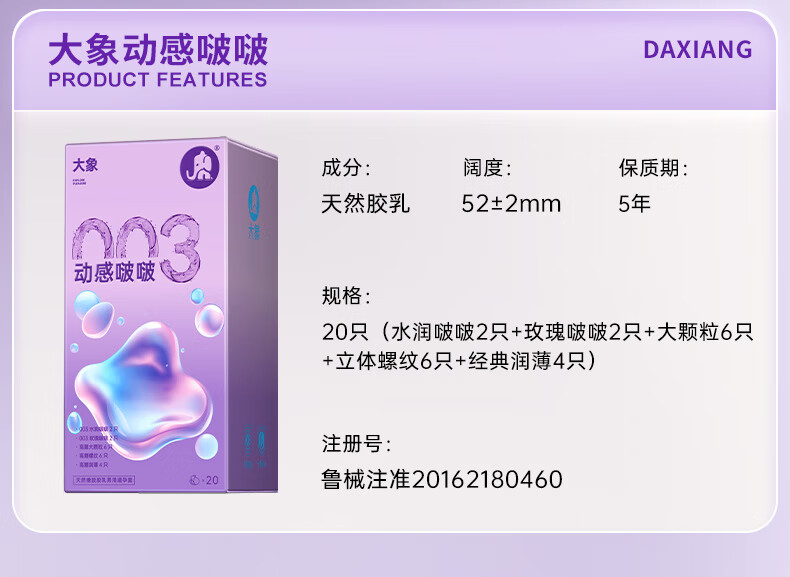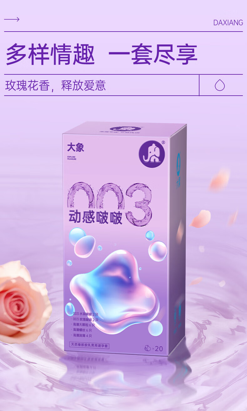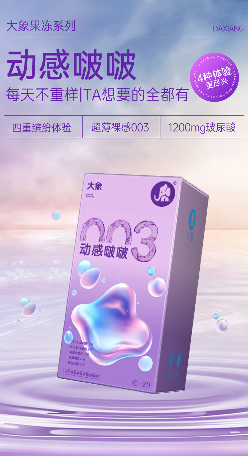 大象003超薄避孕套 动感啵啵20只 男女用果冻玻尿酸快潮安全套 byt