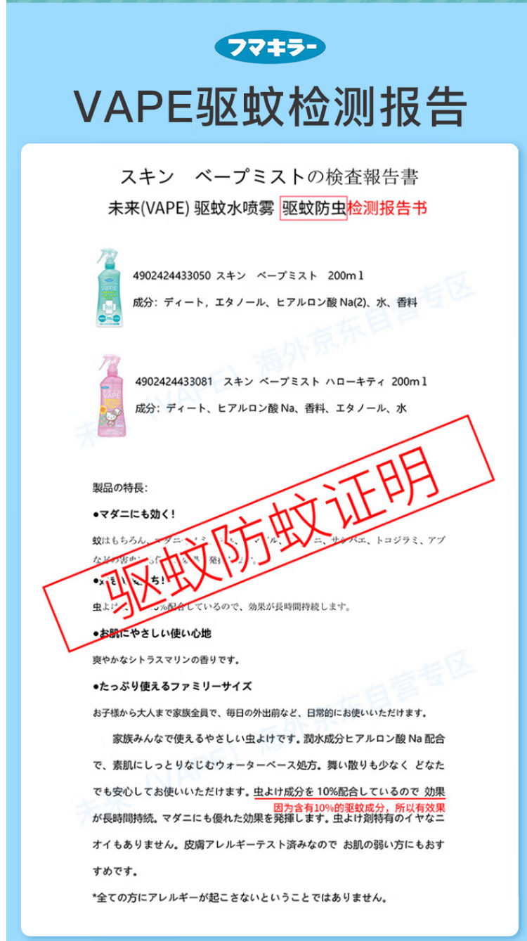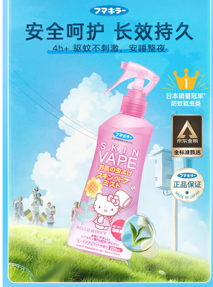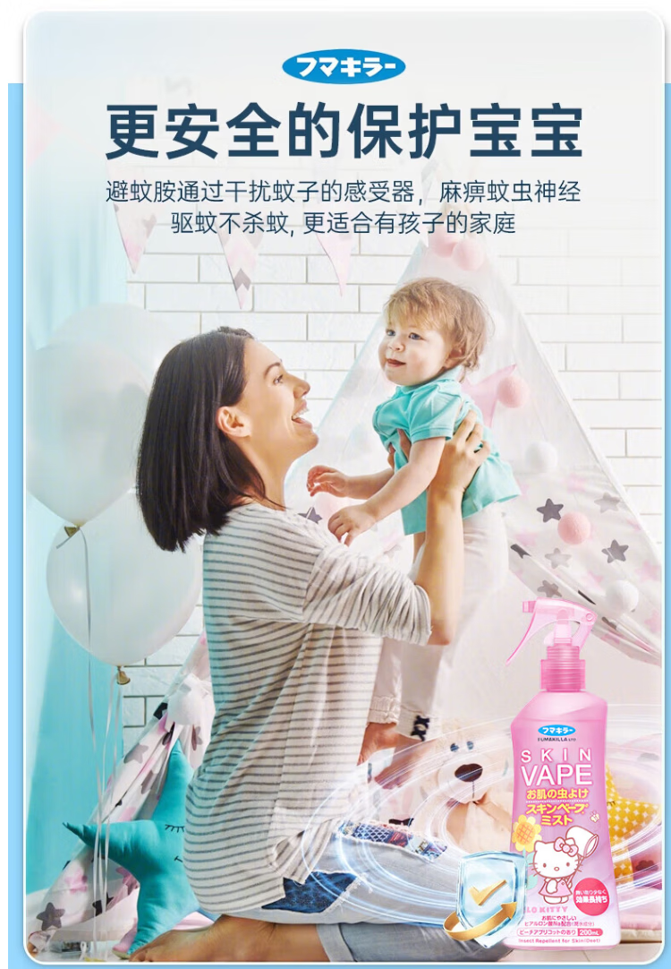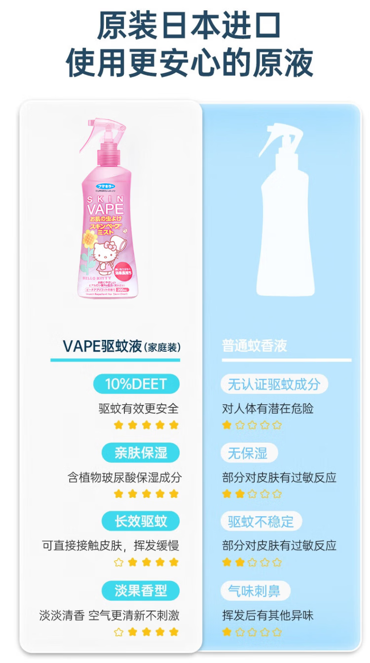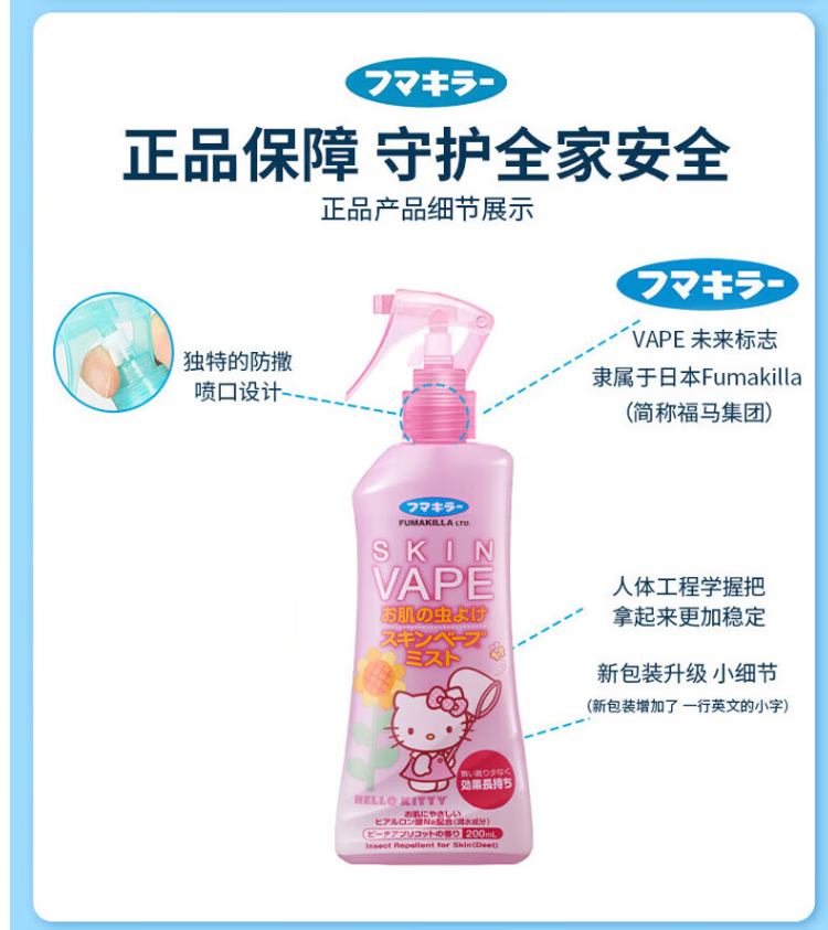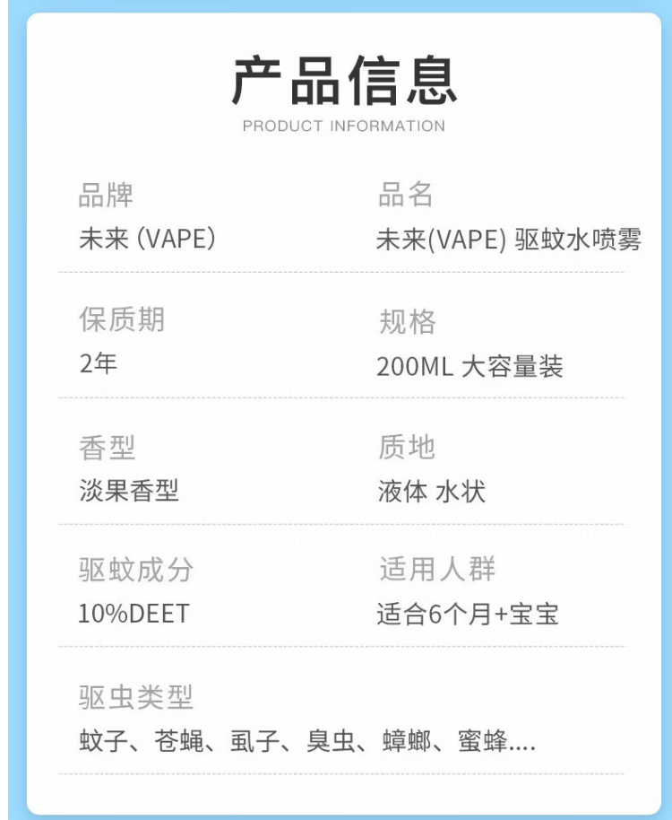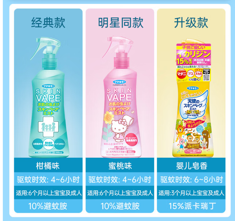 VAPE未来驱蚊液蚊虫叮咬止痒夏季旅行儿童成人 蜜桃味200ml*2瓶