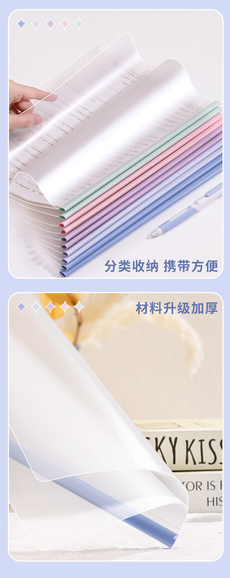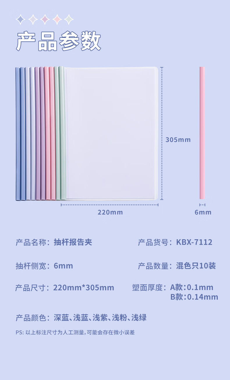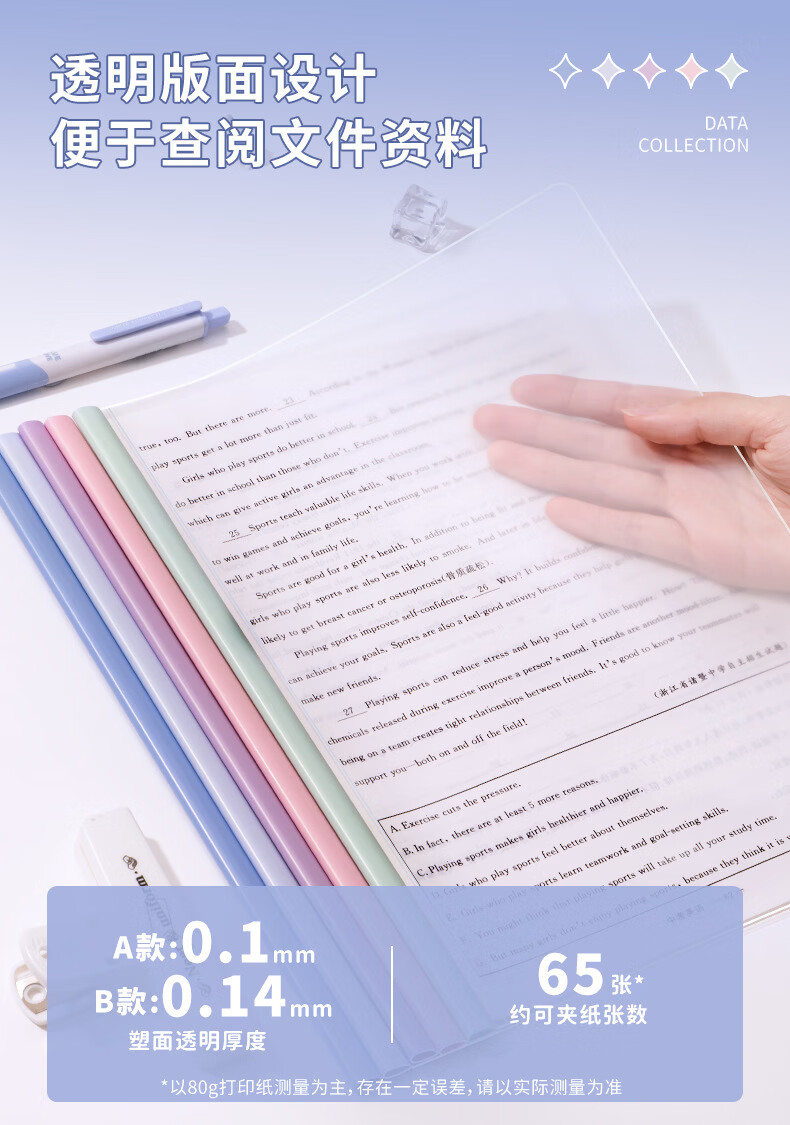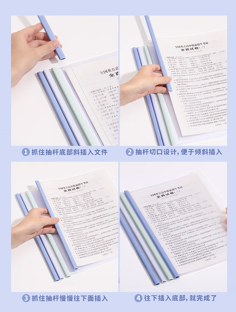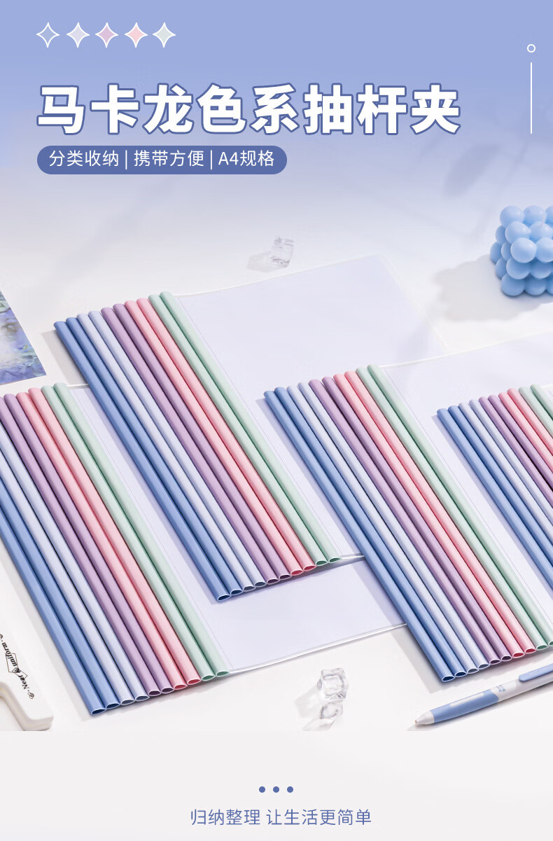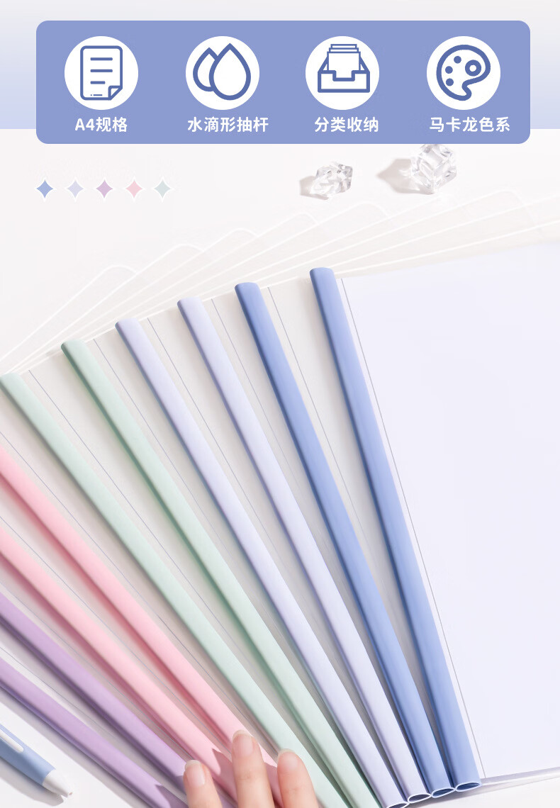 恬舒渐变透明抽杆夹a4水滴文件夹学生用活页书本夹试卷收纳夹整理神器 水滴杆抽杆夹经济款-10c(10个/包)