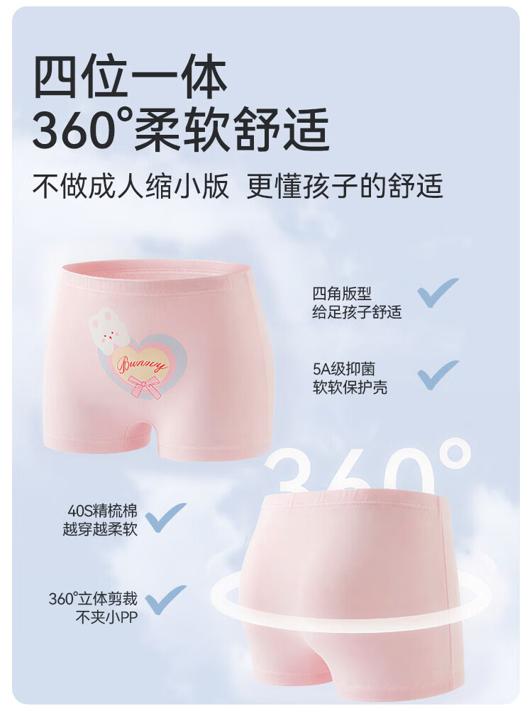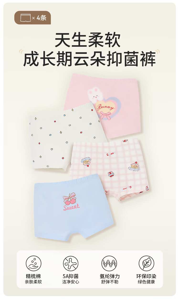 尼多熊儿童内裤女童纯棉宝宝四角裤平角短裤全棉中大童100%女孩不夹屁屁 彩虹小马 【纯棉低裆】 4条 120 (M) 【建议体重25-34斤】