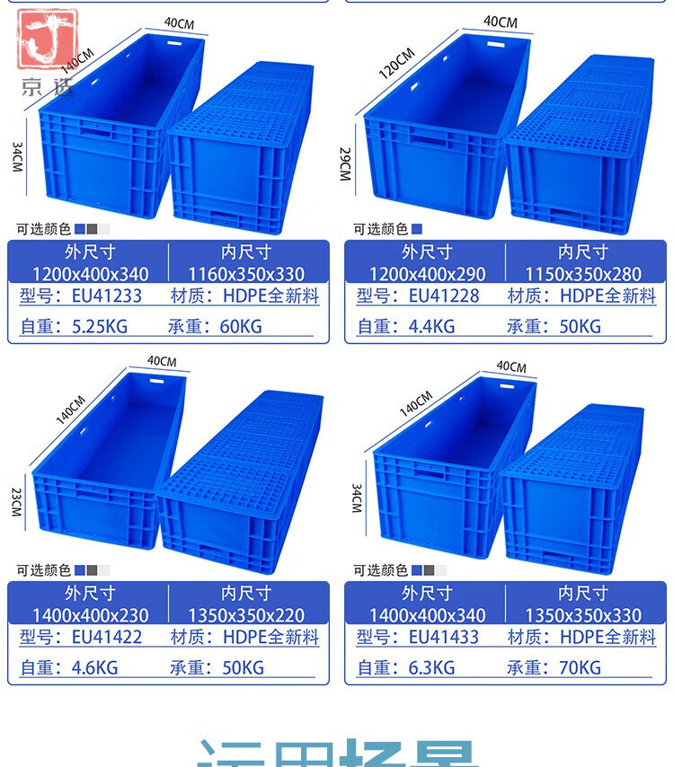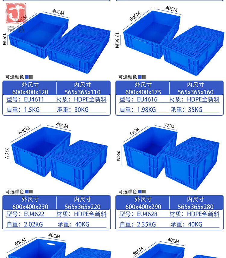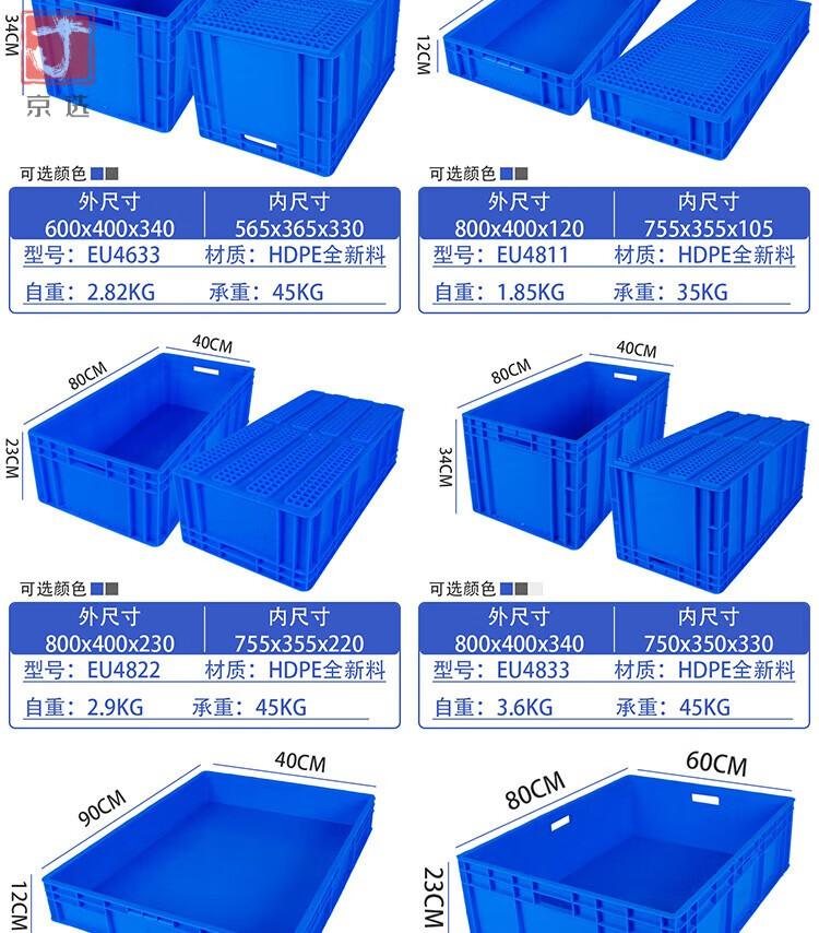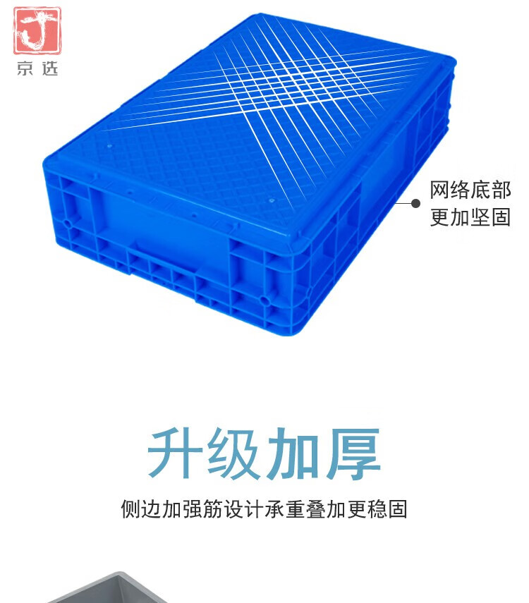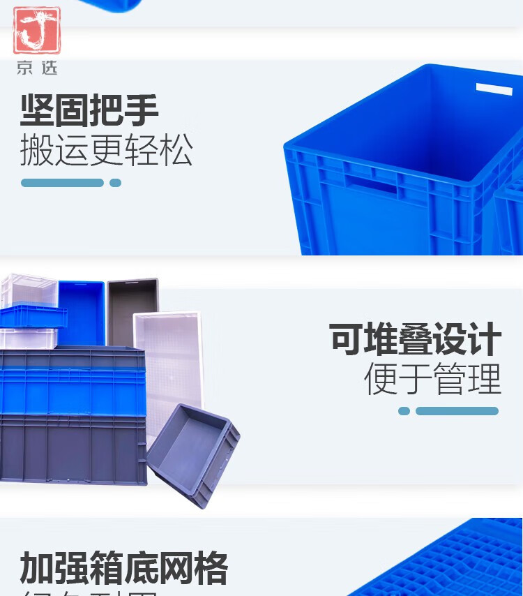 EU箱长方形特大周转箱物流箱加厚带盖工具收纳箱塑料盒工业物料盒 蓝色无盖(需要加盖请联系客服) 长60*宽40*高23CM-4622号(新料加强
