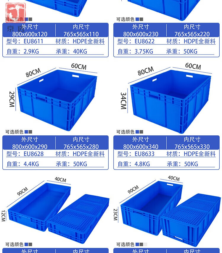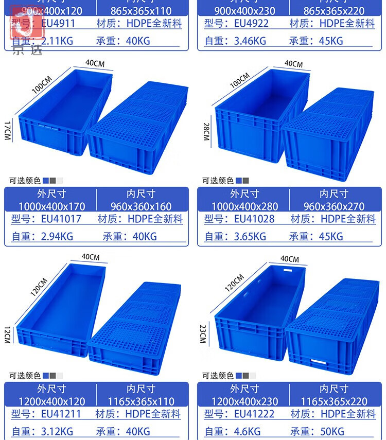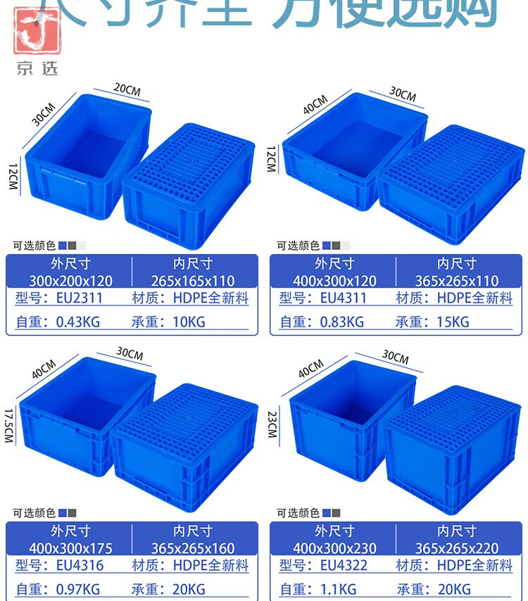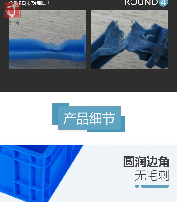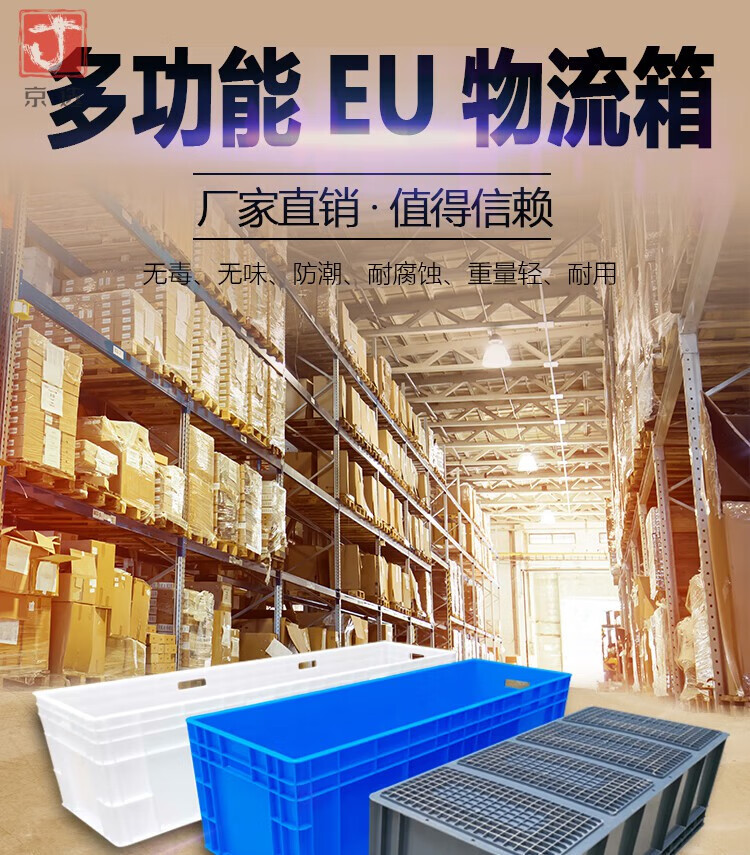 EU箱长方形特大周转箱物流箱加厚带盖工具收纳箱塑料盒工业物料盒 蓝色无盖(需要加盖请联系客服) 长60*宽40*高23CM-4622号(新料加强