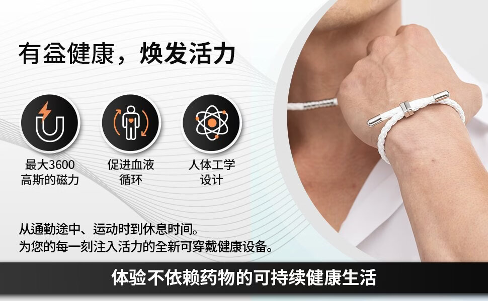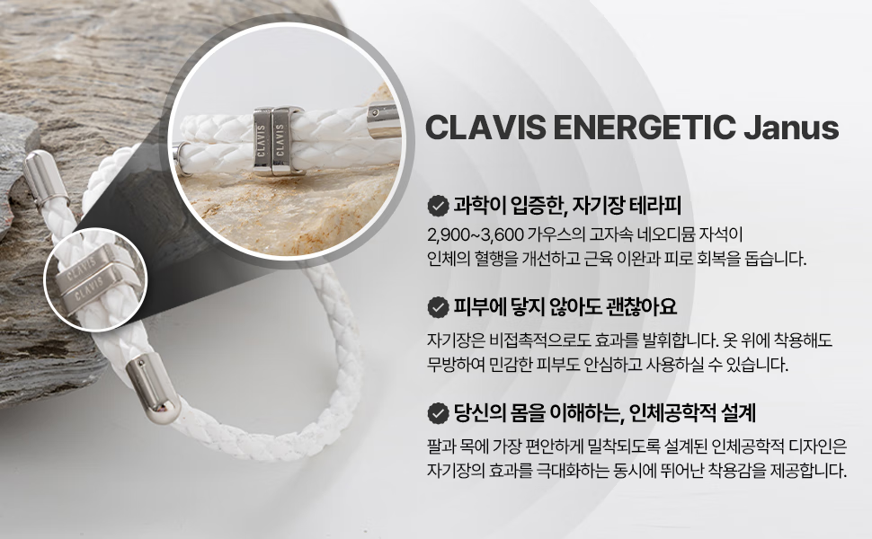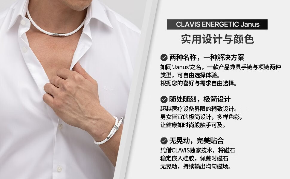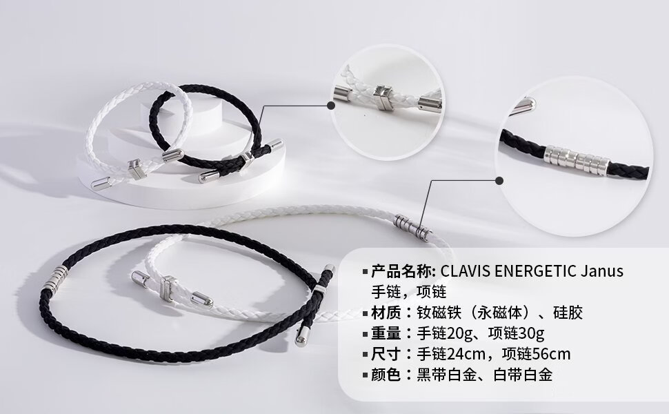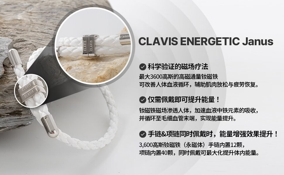 Clavis韩国进口磁力保健手环舒缓关节酸痛改善血液循环日常养护佩戴手环 Clavis雅努斯玫瑰金白色套装