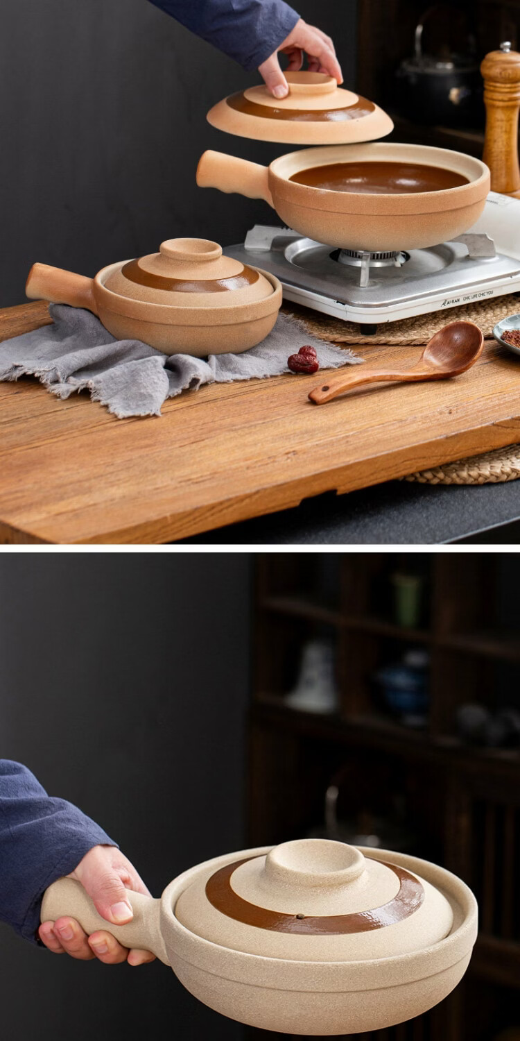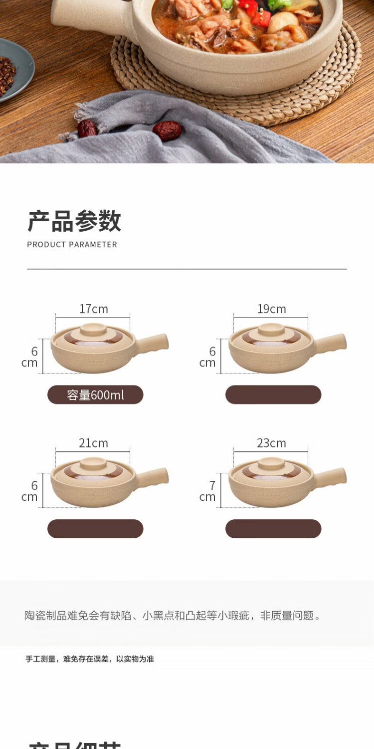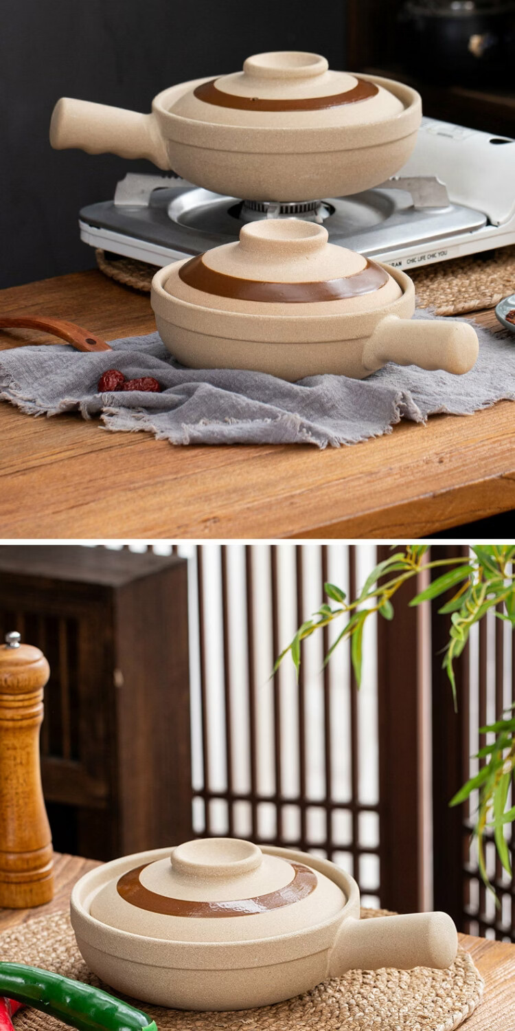 炎礼广式煲仔饭砂锅啫啫煲单柄土砂锅明火电陶炉商用浅锅土锅沙锅 23#1300ml-锤纹单柄啫煲 明火电陶炉双用23ml 1300ml