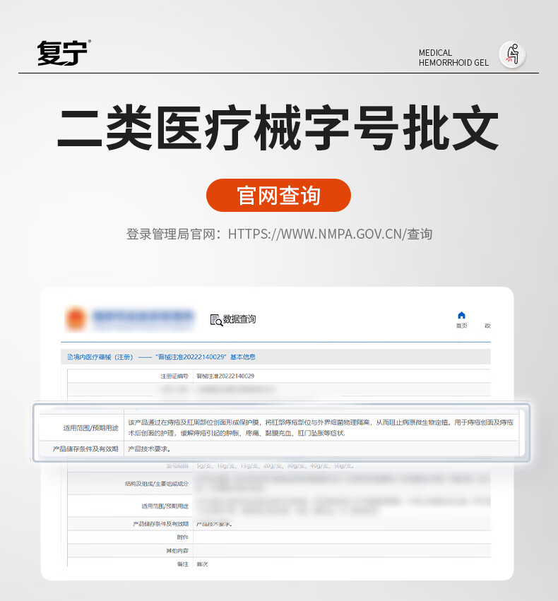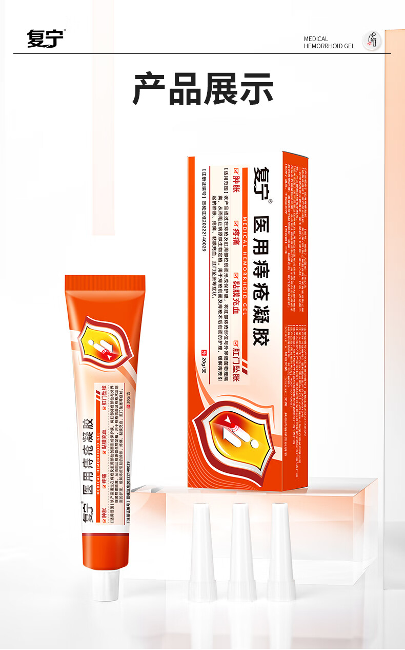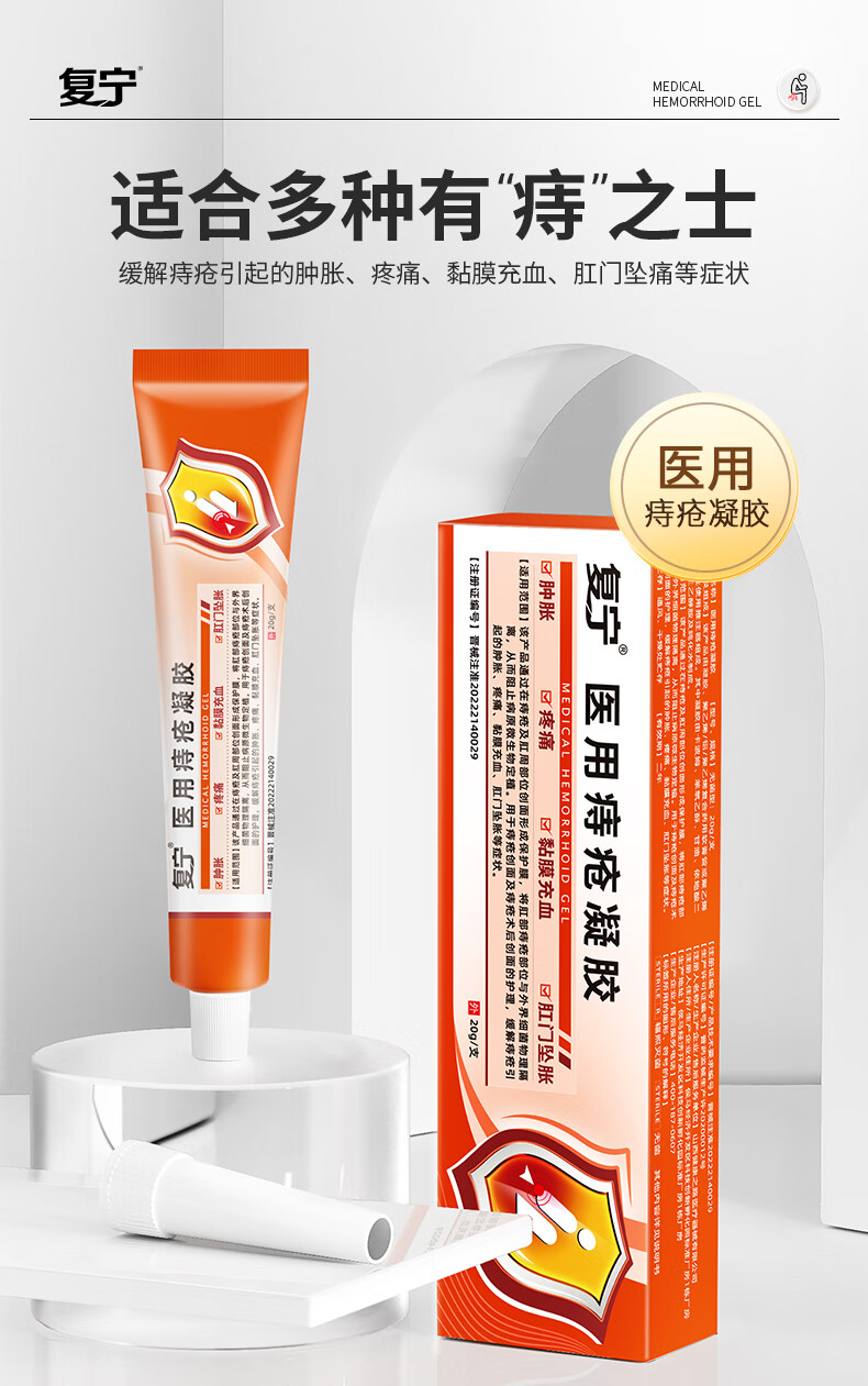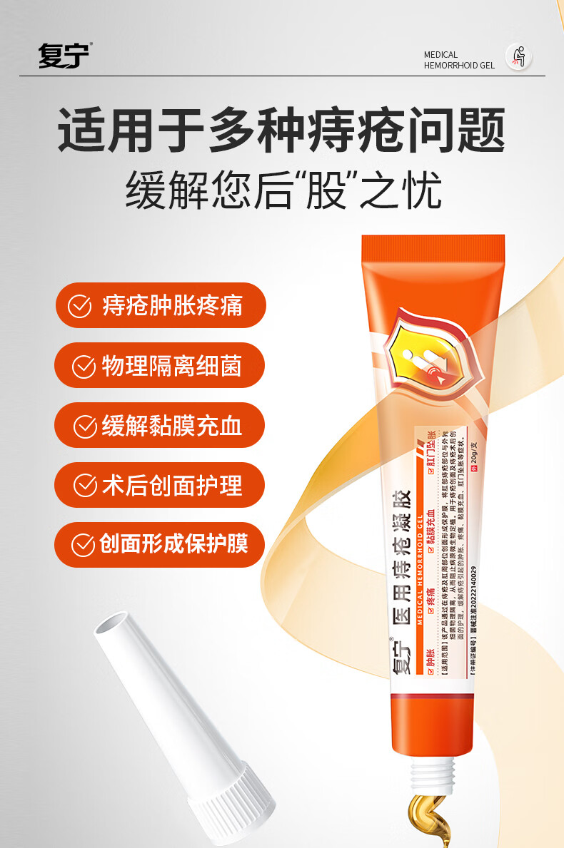 复宁医用痔疮凝胶械字号内外混合痔专用术后修复敷料便血肛裂瘙痒20g 5支【巩固装】长效巩固不反复