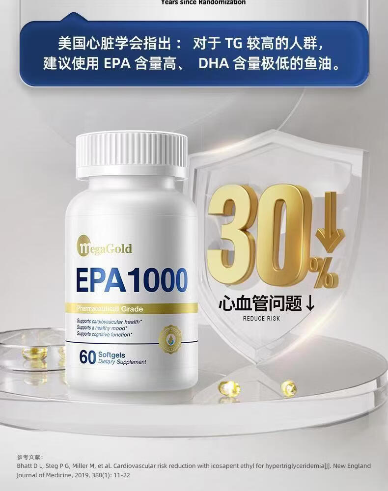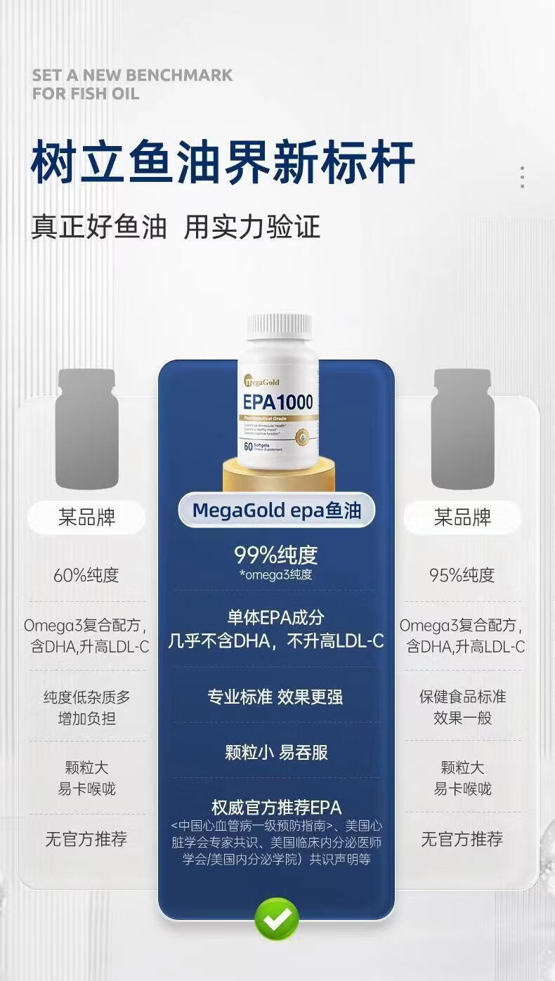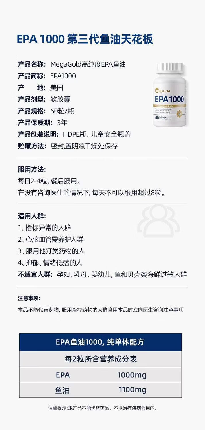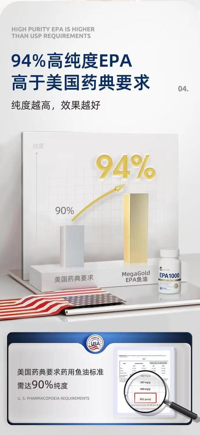 HE&MEMegaGold深海鱼油软胶囊高浓纯度60粒/瓶美国进口浓缩EPA1000鱼油 60粒*1瓶