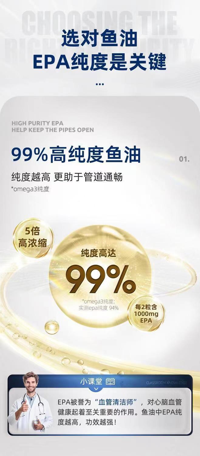 GNC健安喜97%高纯度epa深海鱼油omega3非鱼肝油鱼油成年人dha60粒/盒