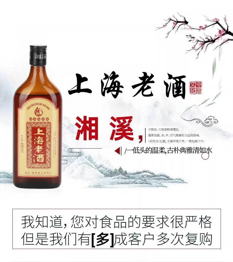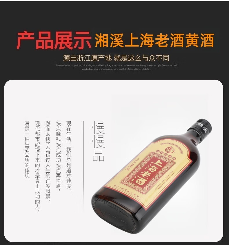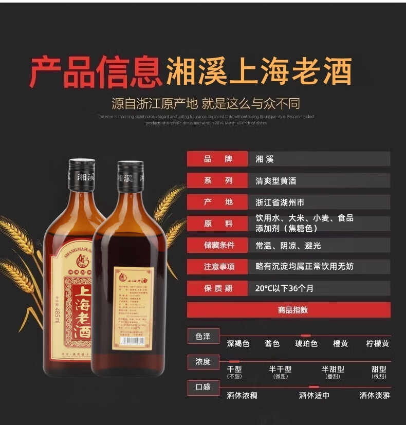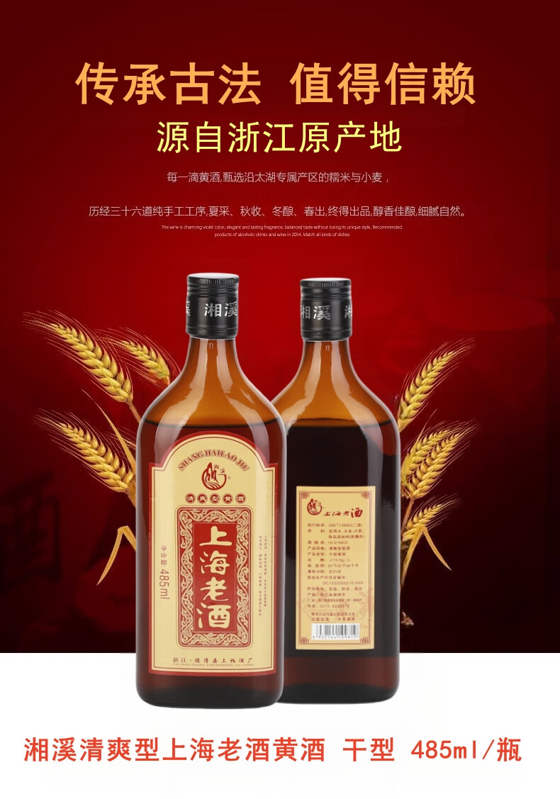 湘溪上海老酒干型清爽型黄酒 六瓶