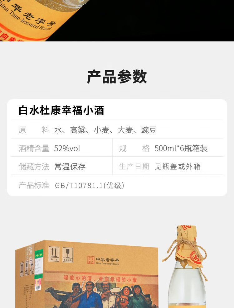 白水杜康【6万+人已加购】幸福小酒浓香型白酒52度500ml*6瓶整箱纯粮食酒 幸福小酒整箱6瓶